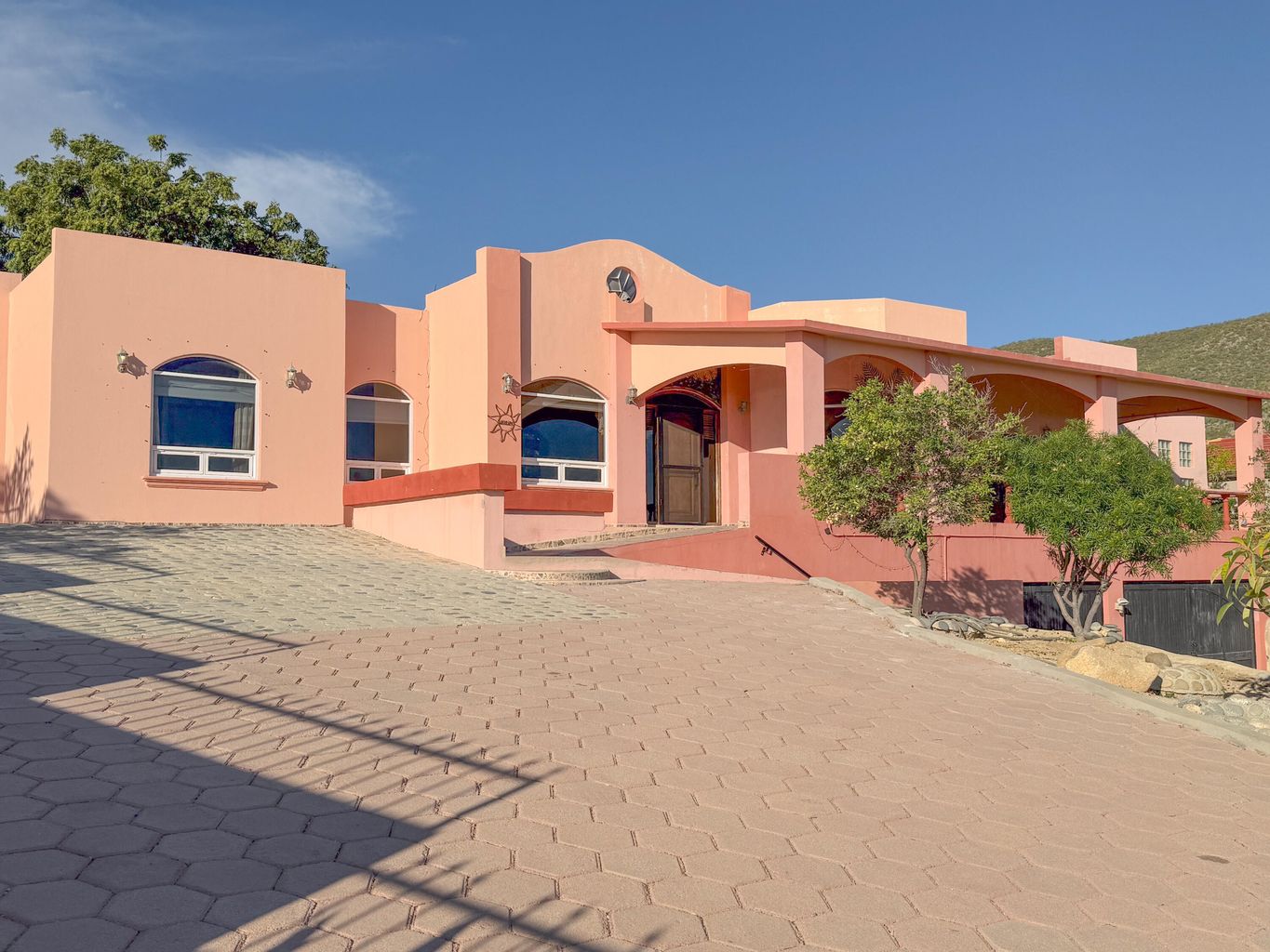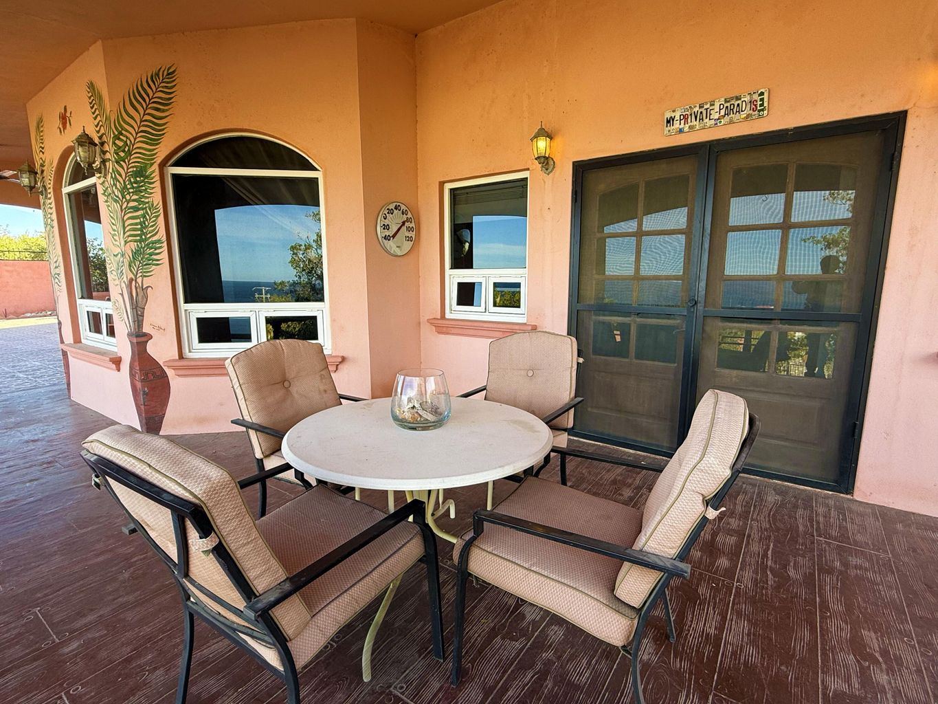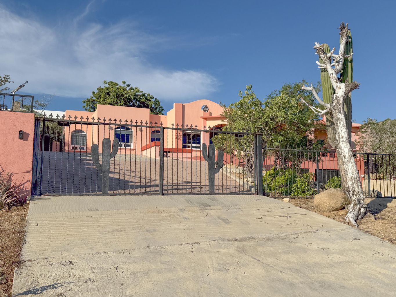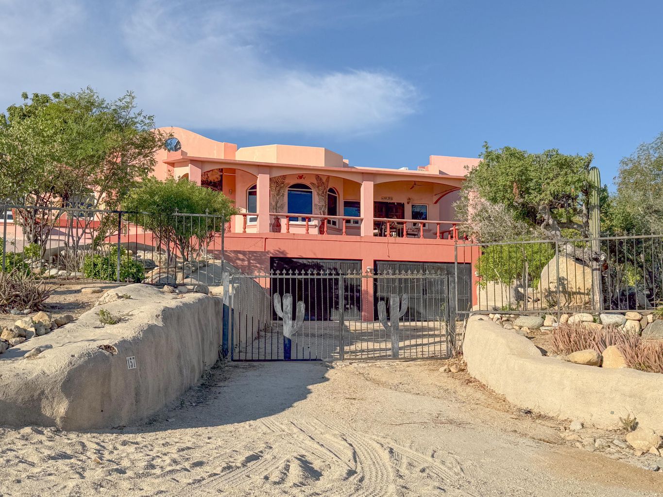 Welcome to Casa Rosemary, located close to the beach with breathtaking views and safe and supportive neighborhood. This is a ''gotta see'' and won't last long; not many come available in this area! Entertain from the patio roof with full 180 degree views of the Sea of Cortez and Sierra de la Lagunas Mountains to the south, or sitting on the fantastic porch below. Electric and solar remote gate entry allows easy access up the beautiful tiled driveway, right up to the front door! Gate 2 opens a drive to your 14 ft tall triple fabulous steel garage doors to park your boat, quad, and RV. Gate 3 is for side and back yard access. Inside, as you enter the tall ceilings throughout, attention was given to detail in the open concept living room.
