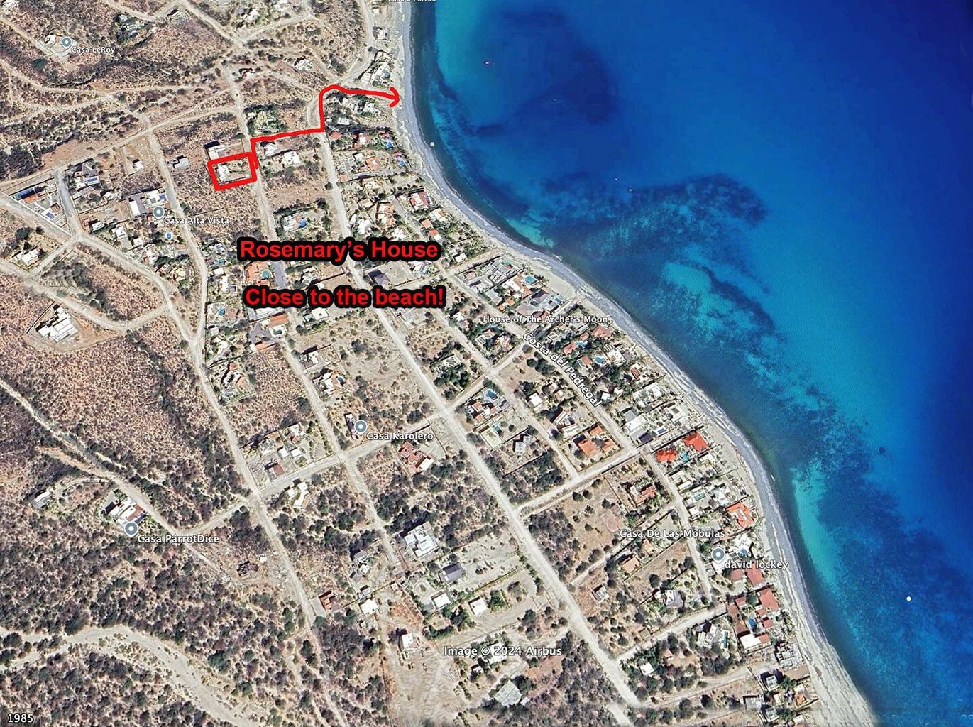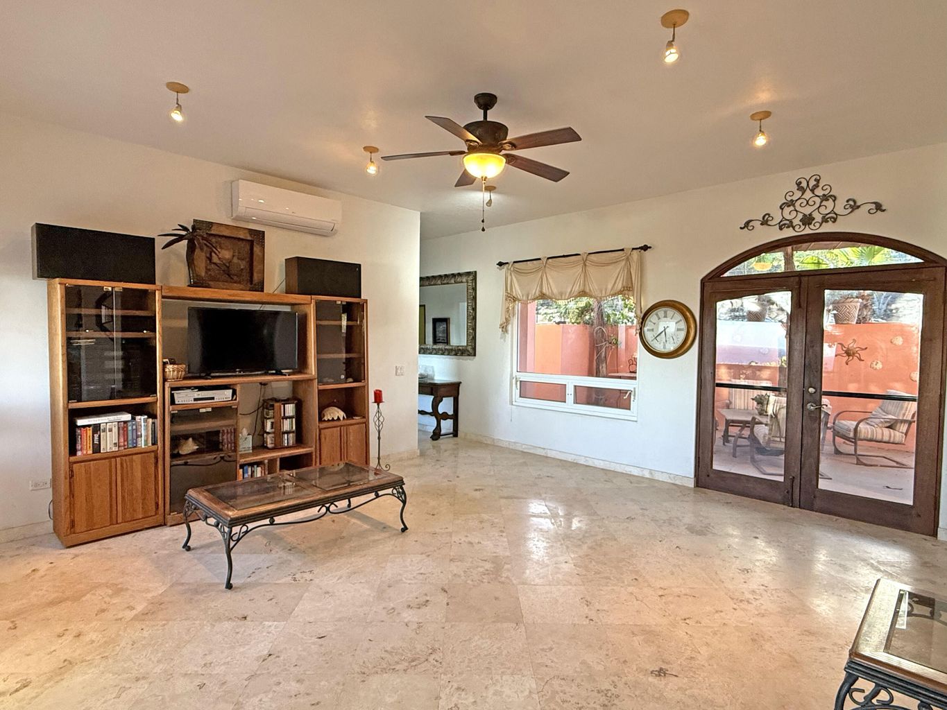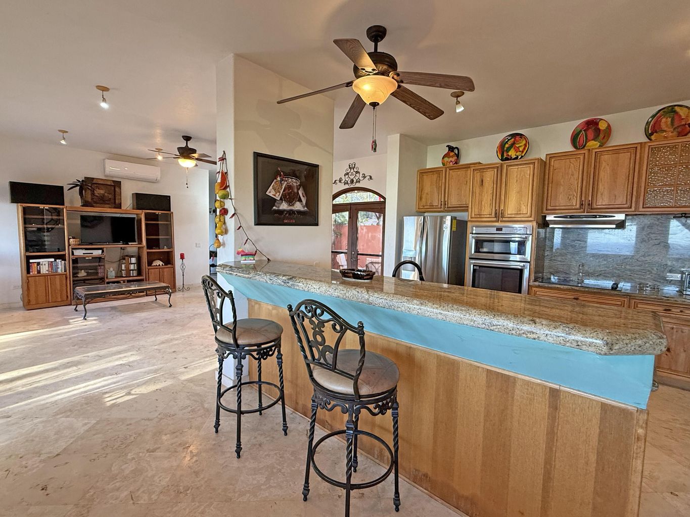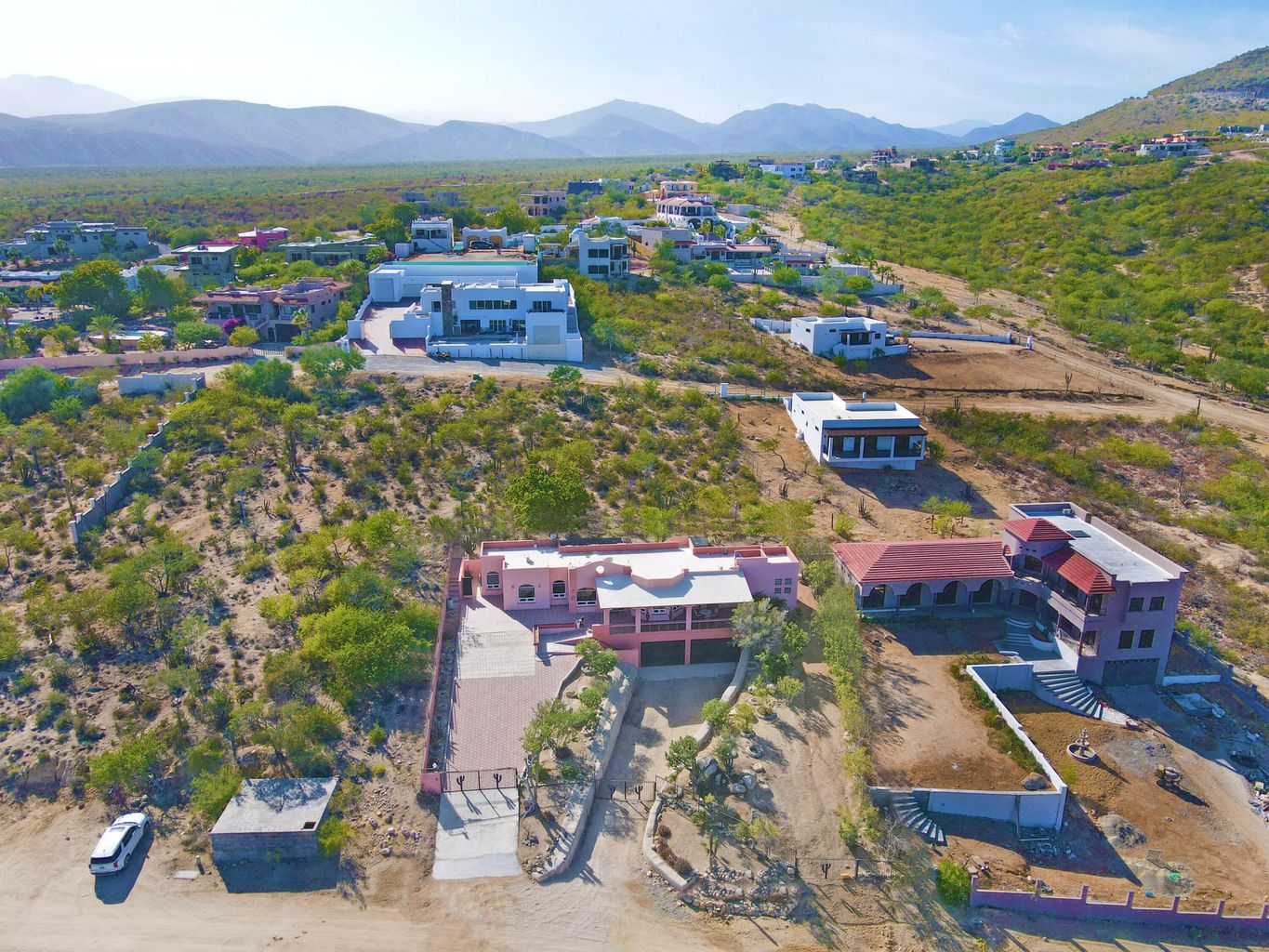 Welcome to Casa Rosemary, located close to the beach with breathtaking views and safe and supportive neighborhood. This is a ''gotta see'' and won't last long; not many come available in this area! Entertain from the patio roof with full 180 degree views of the Sea of Cortez and Sierra de la Lagunas Mountains to the south, or sitting on the fantastic porch below. Electric and solar remote gate entry allows easy access up the beautiful tiled driveway, right up to the front door! Gate 2 opens a drive to your 14 ft tall triple fabulous steel garage doors to park your boat, quad, and RV. Gate 3 is for side and back yard access. Inside, as you enter the tall ceilings throughout, attention was given to detail in the open concept living room.