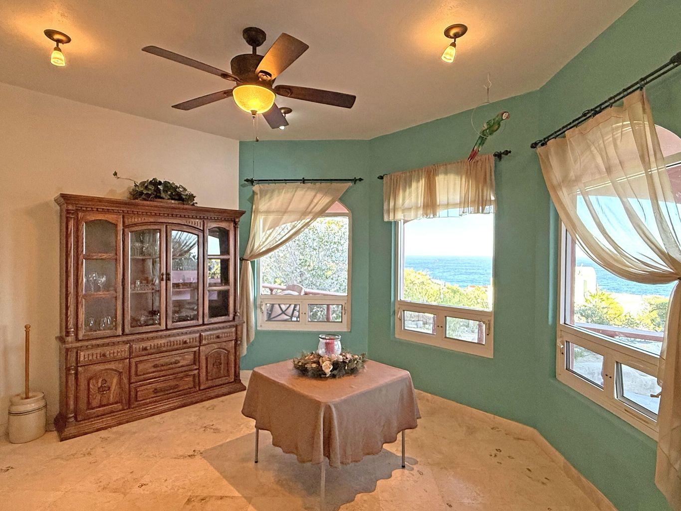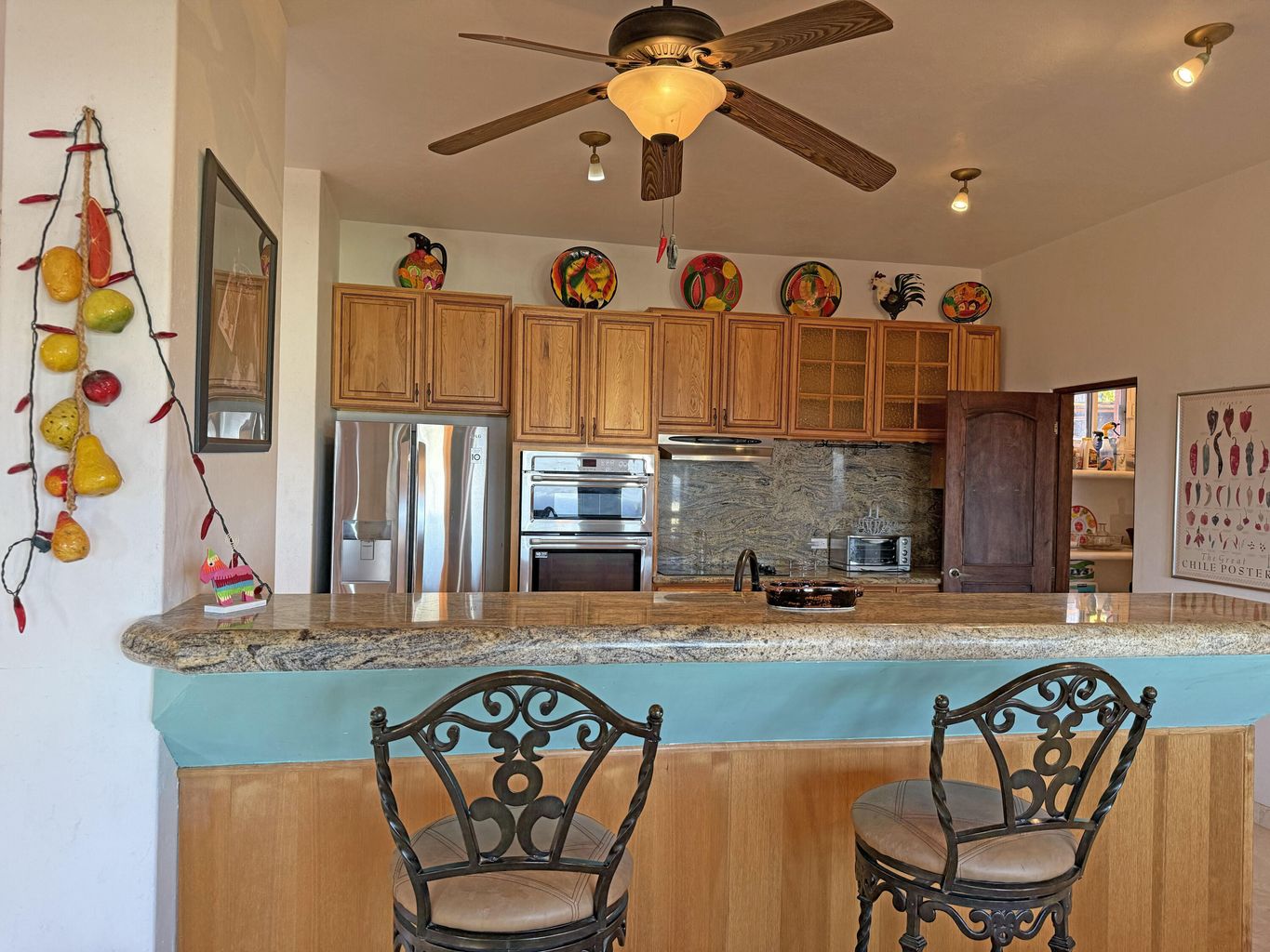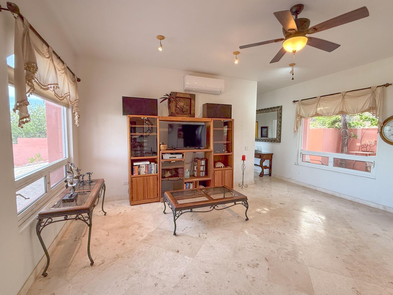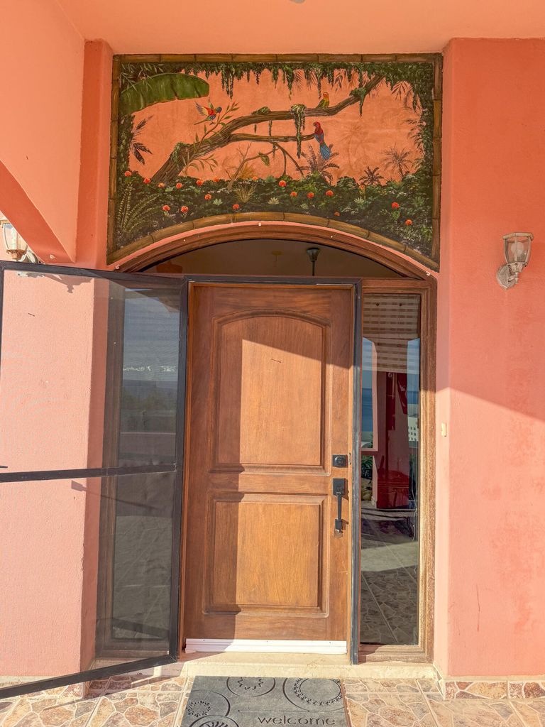 Welcome to Casa Rosemary, located close to the beach with breathtaking views and safe and supportive neighborhood. This is a ''gotta see'' and won't last long; not many come available in this area! Entertain from the patio roof with full 180 degree views of the Sea of Cortez and Sierra de la Lagunas Mountains to the south, or sitting on the fantastic porch below. Electric and solar remote gate entry allows easy access up the beautiful tiled driveway, right up to the front door! Gate 2 opens a drive to your 14 ft tall triple fabulous steel garage doors to park your boat, quad, and RV. Gate 3 is for side and back yard access. Inside, as you enter the tall ceilings throughout, attention was given to detail in the open concept living room.