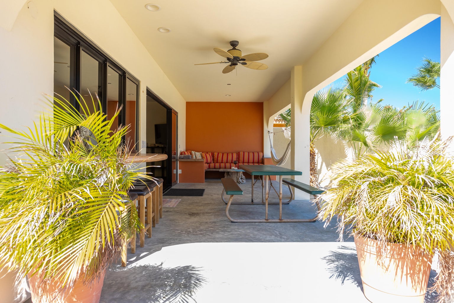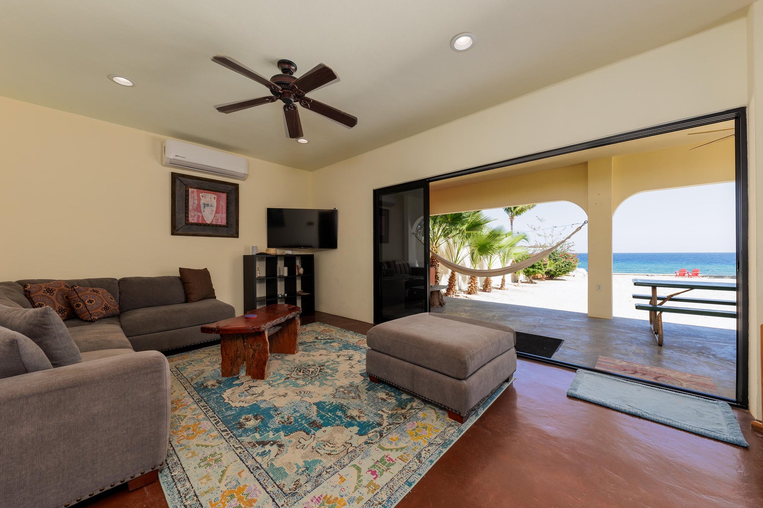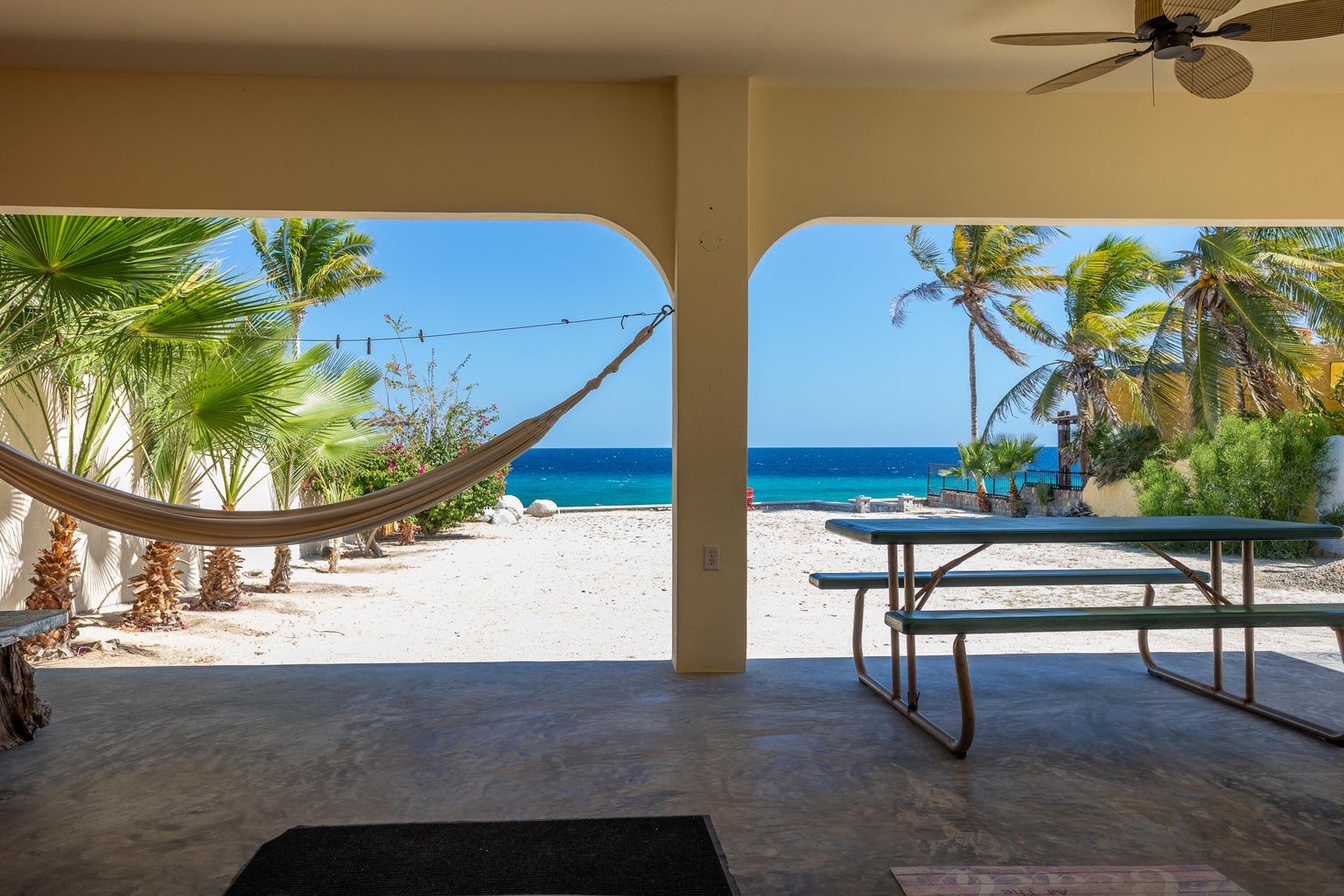 This bungalow is a one bedroom one bathroom, kitchen, living room. 2 car garage, beautiful outdoor seating area facing the Sea of Cortez.
