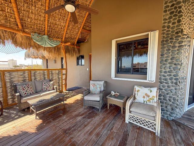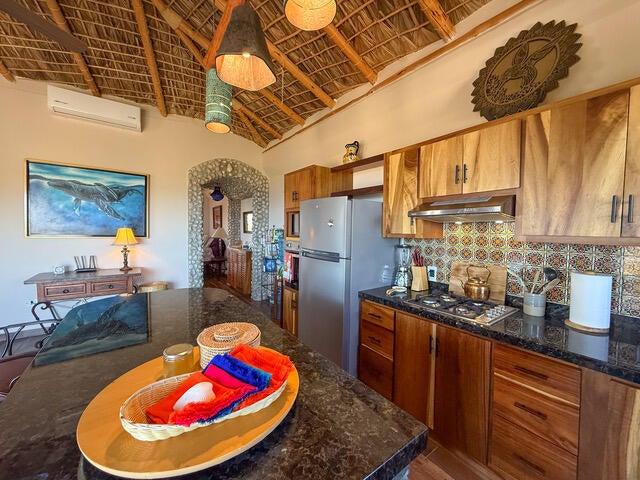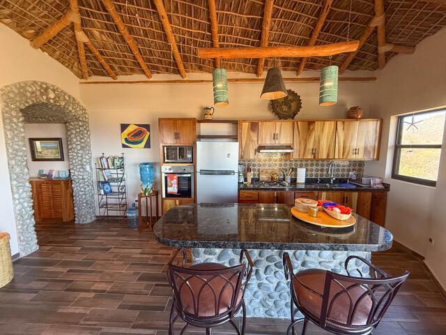 This Baja sanctuary is nestled in Spa Buena Vista, offering breathtaking ocean and mountain views and truly good vibes. You'll enjoy ultimate privacy at the end of a peaceful cul-de-sac. The home is just steps from beautiful sandy beaches and your landscaping is creates a natural bird sanctuary. It features a dedicated, shaded space perfect for yoga or exercise, and is conveniently close to scenic hiking and biking trails. The versatile layout of this home is ideal for embracing a relaxed and cool Baja lifestyle.