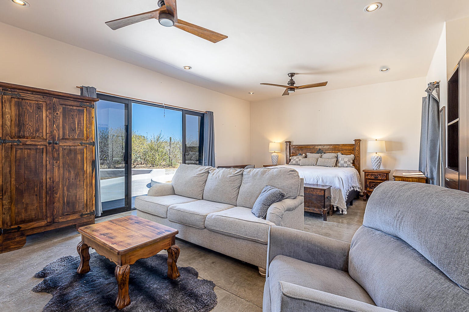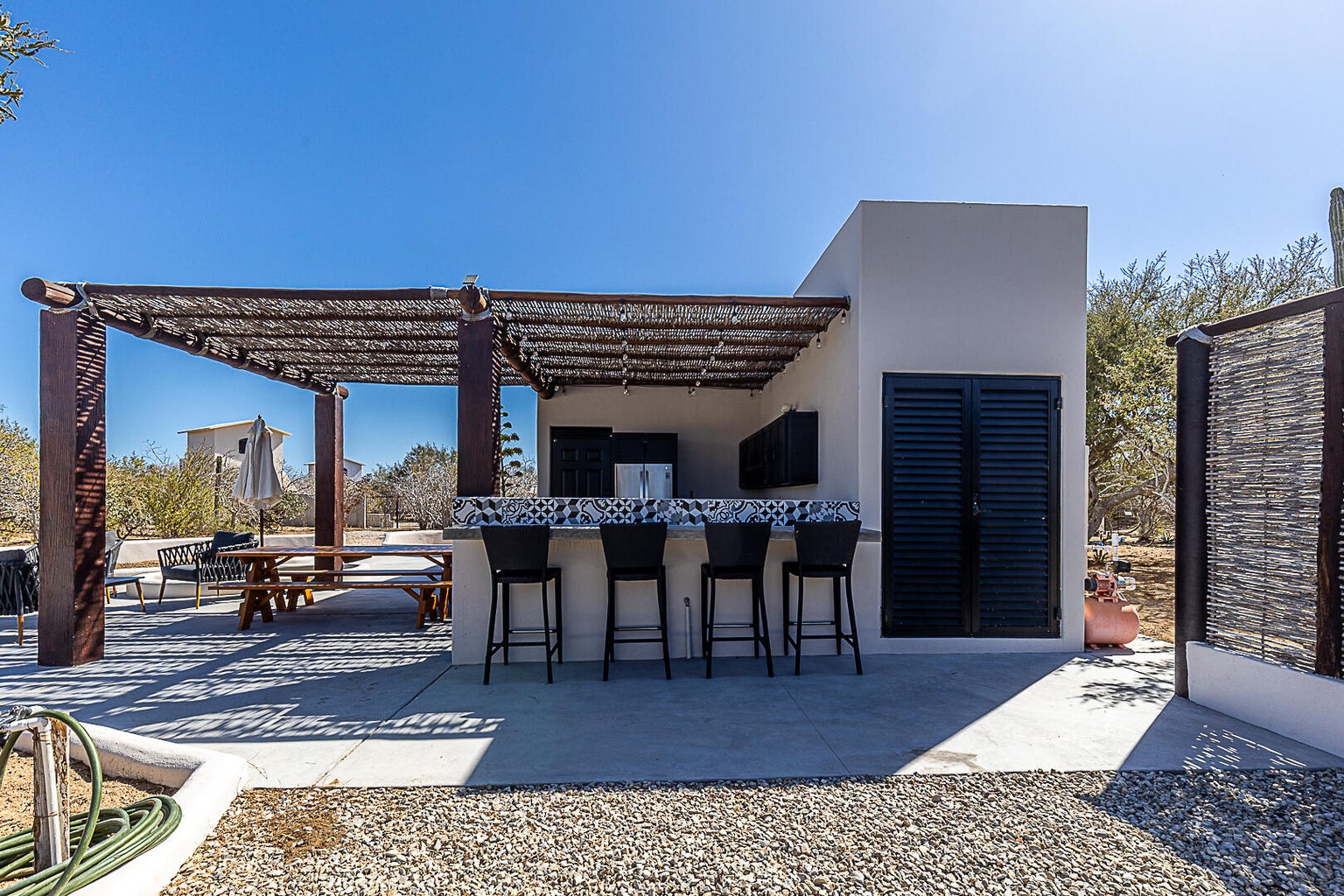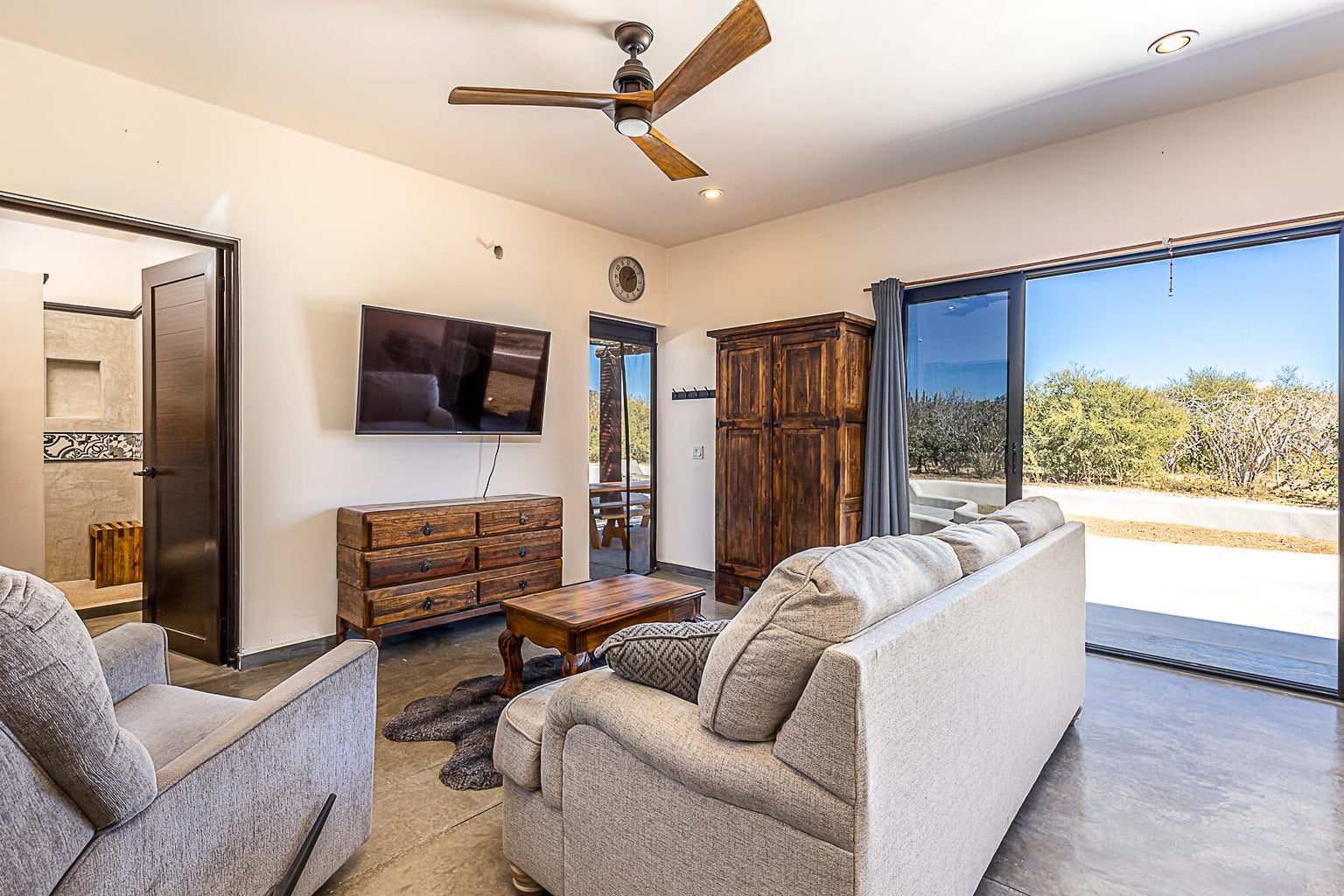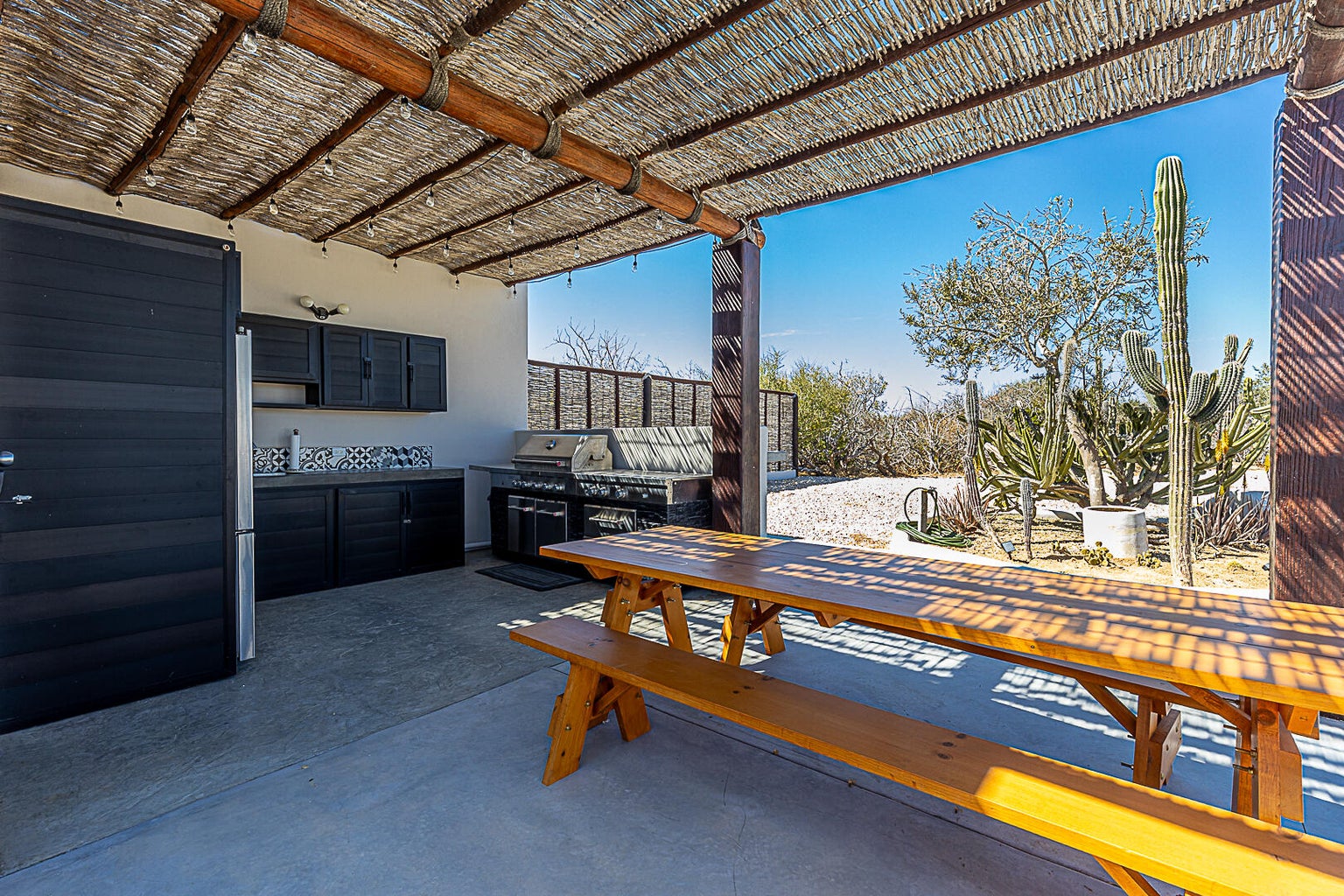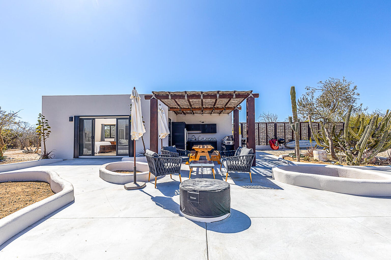 Welcome to Rancho Poco Mas! This cute and cozy fully equipped studio has everything you need for a relaxing stay in Zacatitos. The spacious living area has all you need for maximum comfort. Enjoy the large 1.25 acre lot for privacy, birdwatching, stunning sunrises, fabulous sunsets, and walks to the beach. The outdoor kitchen has stainless steel appliances and room for entertaining. The state-of-the-art solar system will supply all the power you need. Outdoor patio with firepit tops it off. It's the perfect private cozy home with everything you need.