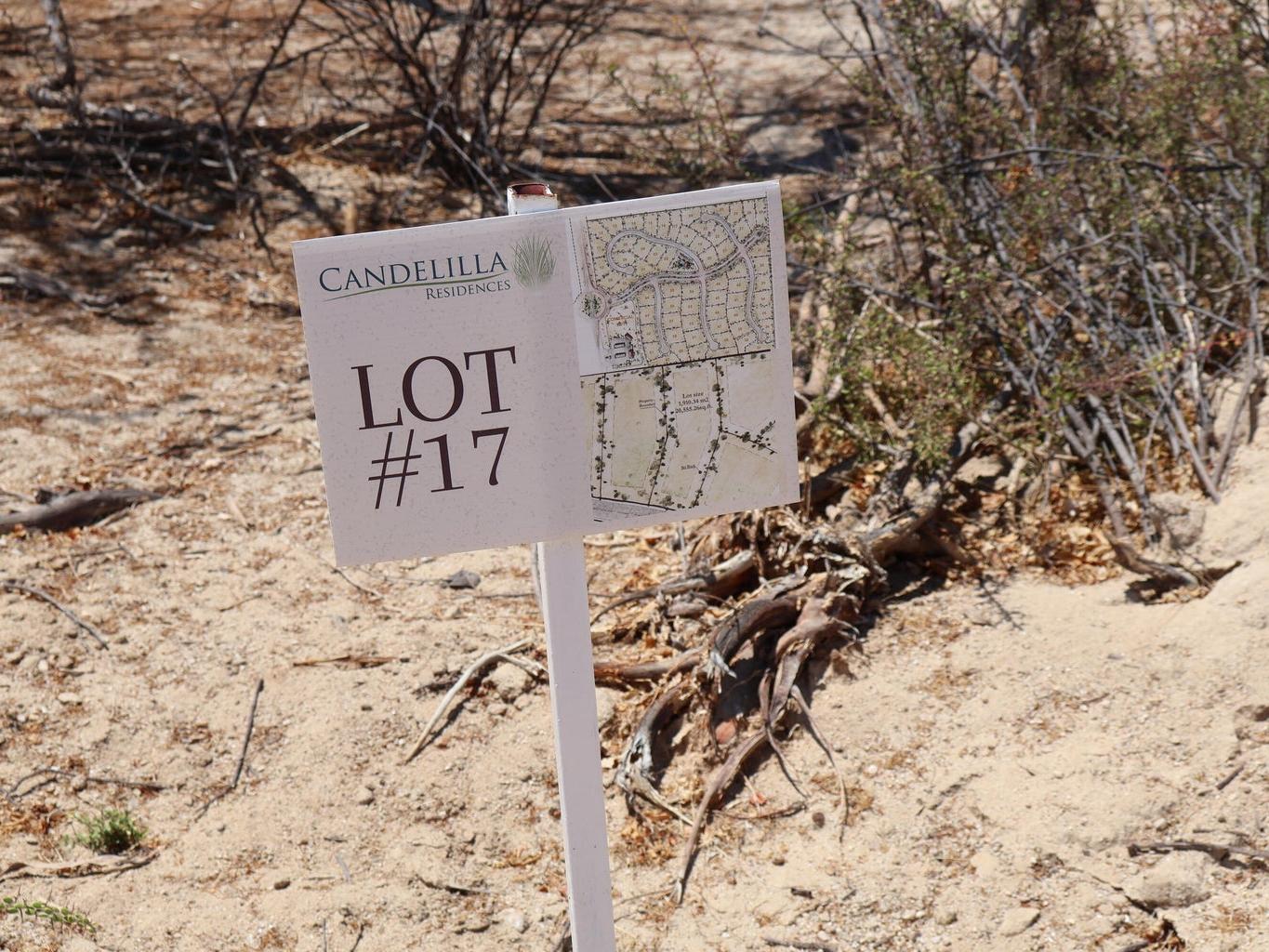 Lot 17 offers an expansive 1993.38 square meters (approximately 0.49 acres), providing ample room for a grand custom home in the First Phase of Candelilla. Situated as an inner lot on a peaceful cul-de-sac, this desirable location combines the tranquility of the desert with the allure of the sea, all within a luxury community with established infrastructure.