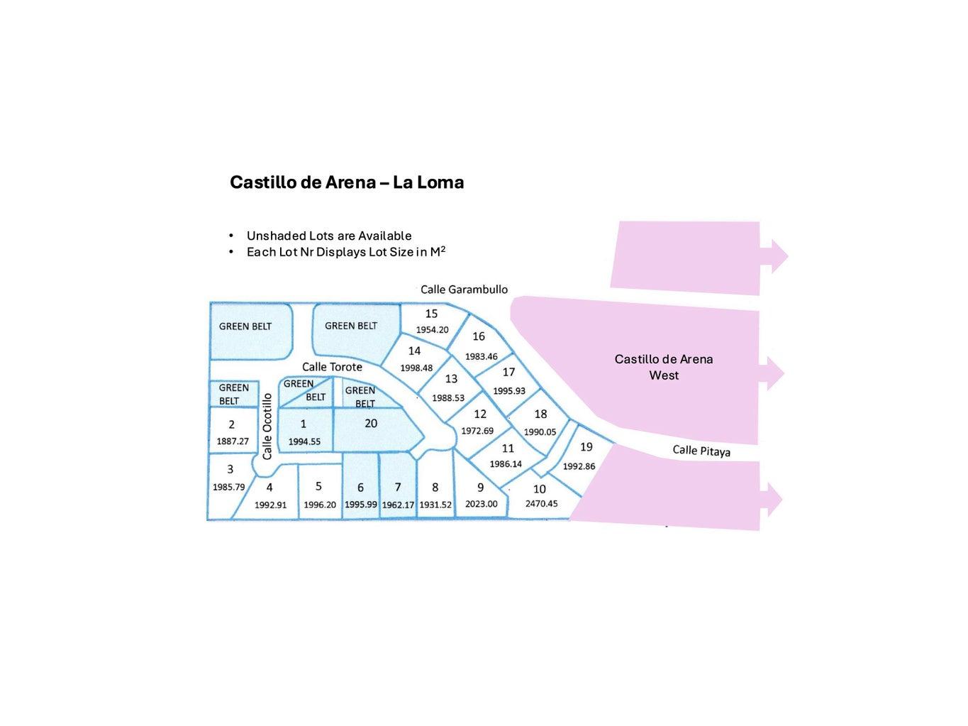 La Loma is an exclusive development within the secure community of Castillo de Arena and all lots have excellent ocean and mountain views. The community is well established and has a community center with pickleball, bocce ball and a pottery studio for residents use. Each lot has water service and views are protected by strong HOA rules.