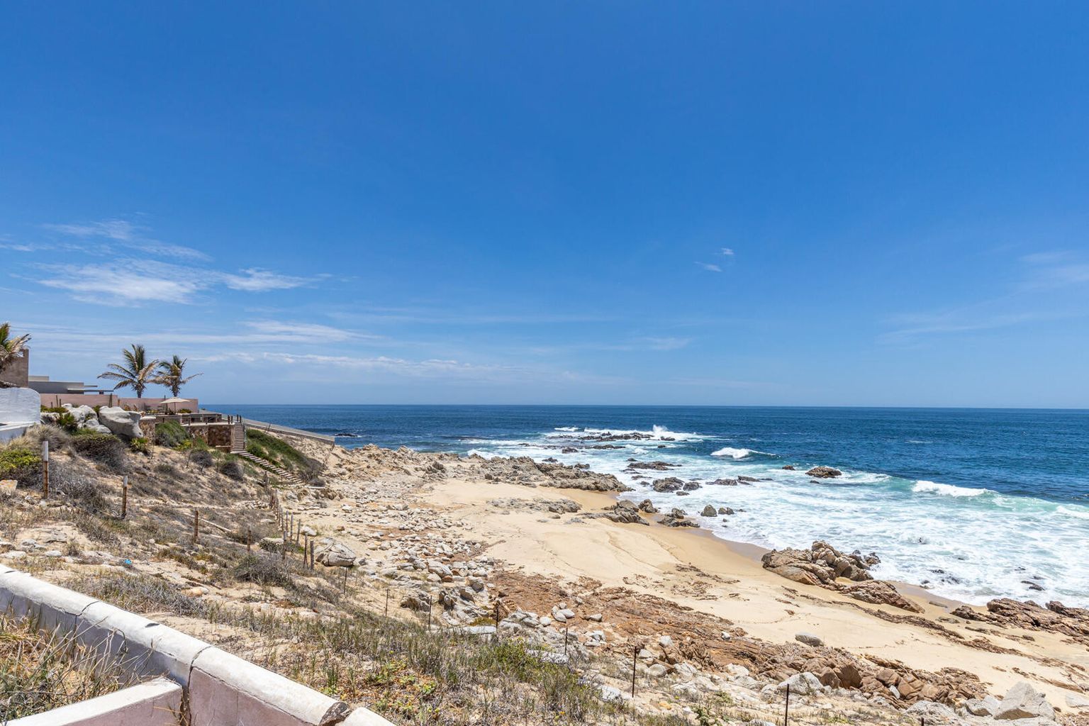 BEACHFRONT LOT FOR SALE IN ZACATITOS! Rare opportunity to own a one acre beachfront parcel in the quaint community of Zacatitos, just eight miles from downtown San Jose del Cabo. The existing structures need to be torn down to then create your own custom home estate on this gently sloped lot with 30 meters of frontage which provides for stunning ocean views from multiple home sites throughout the property.
