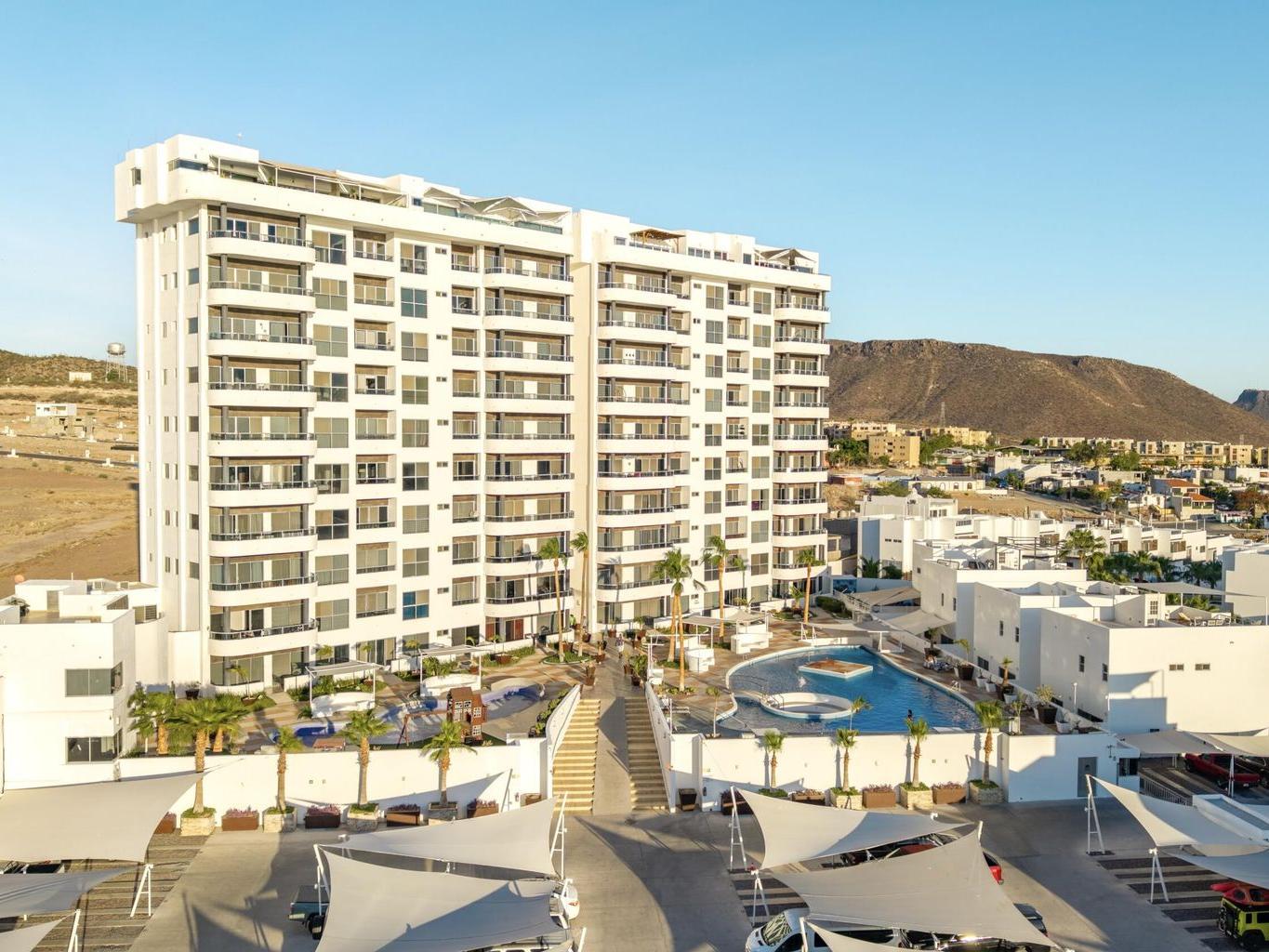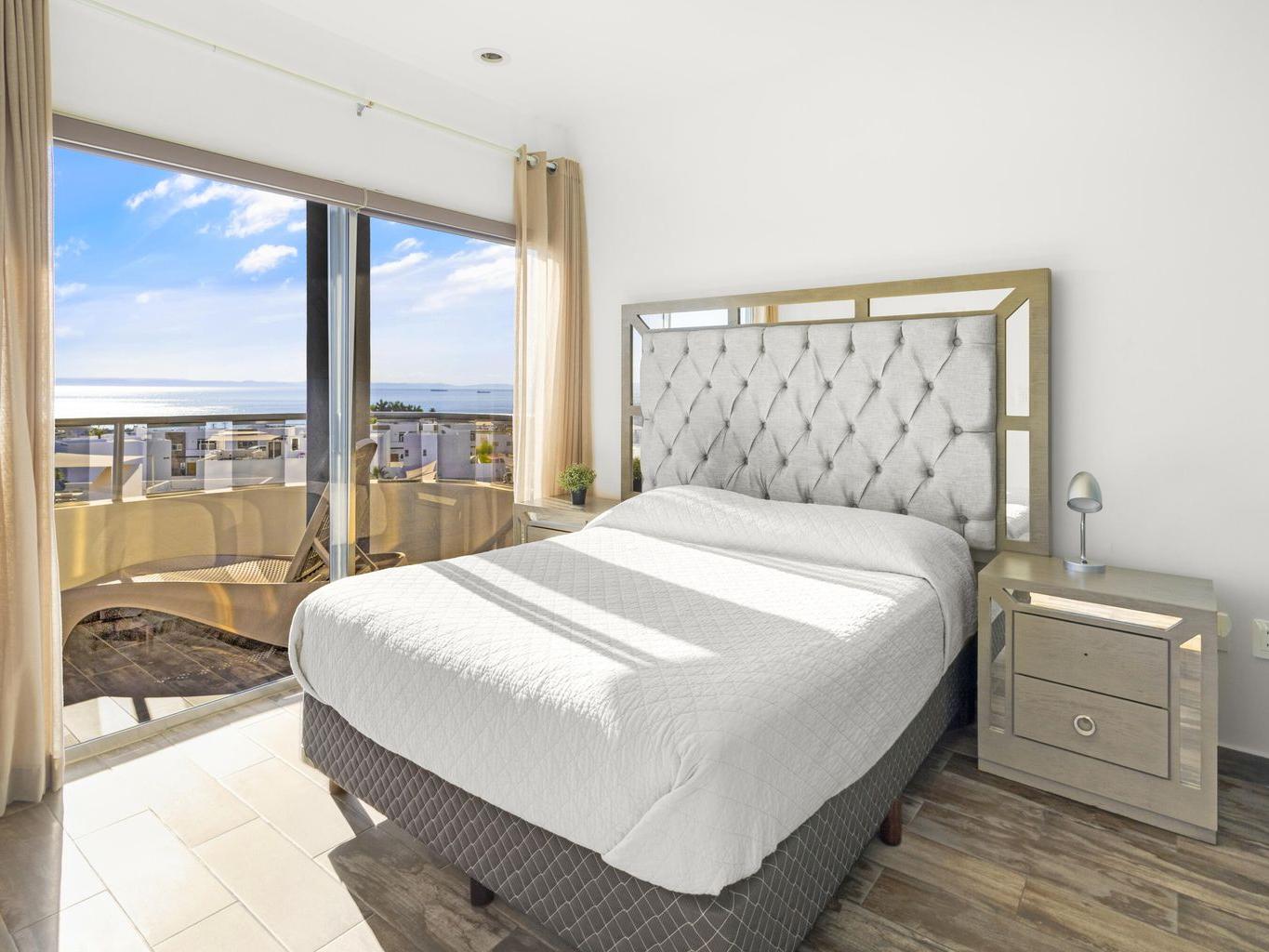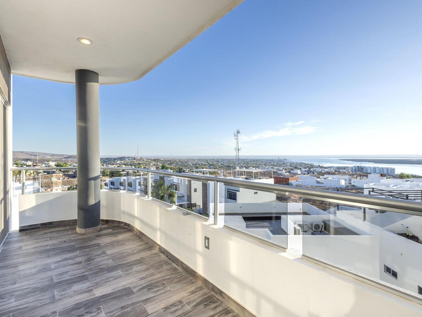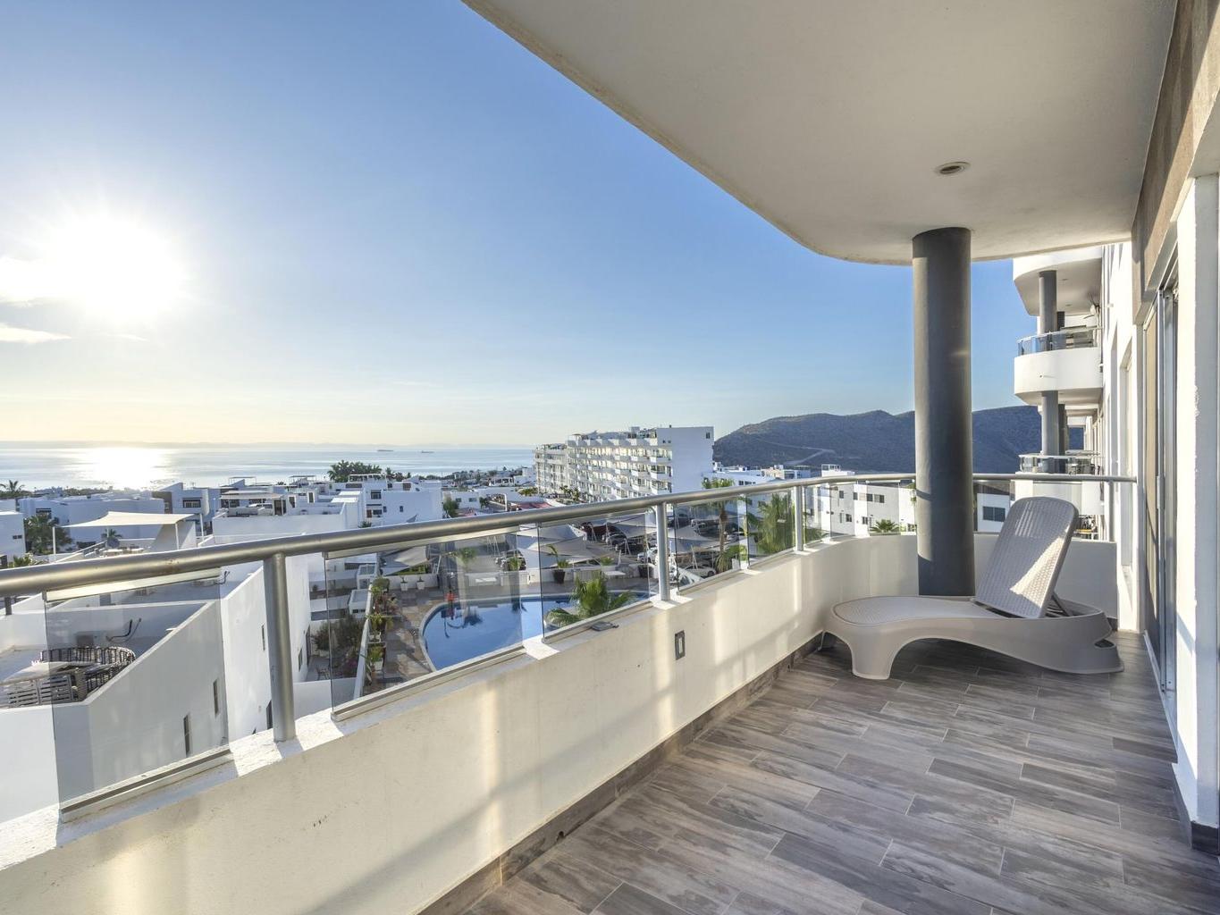 This beautiful fully furnished 2-bedroom, 2-bath condo is located on the fourth floor of the highly desirable Torres Cantera development in La Paz. The primary bedroom features a spectacular ocean view, while the secondary bedroom offers stunning mountain views. Positioned at the end of the hallway with no adjacent unit on one side, the condo offers maximum privacy, additional windows for natural light, a greater sense of space, and excellent cross ventilation. A private terrace provides the perfect spot for a BBQ while enjoying La Paz's iconic sunsets and sunrises. The unit includes a fully equipped kitchen and an in-unit laundry area. Torres Cantera offers premium amenities including adult and children's pools, a gym, cinema, multipurpose room, desert-style landscaping, children's playg
