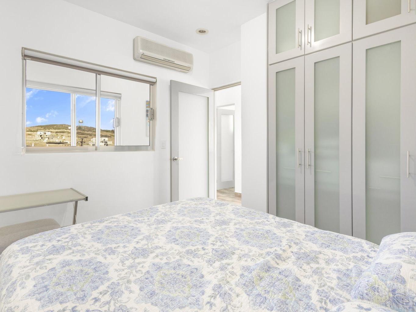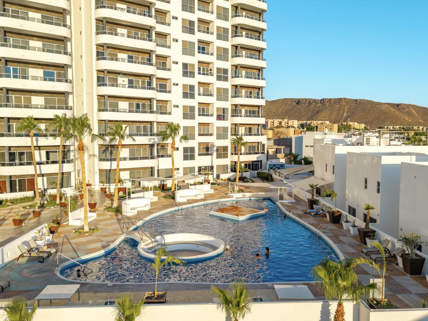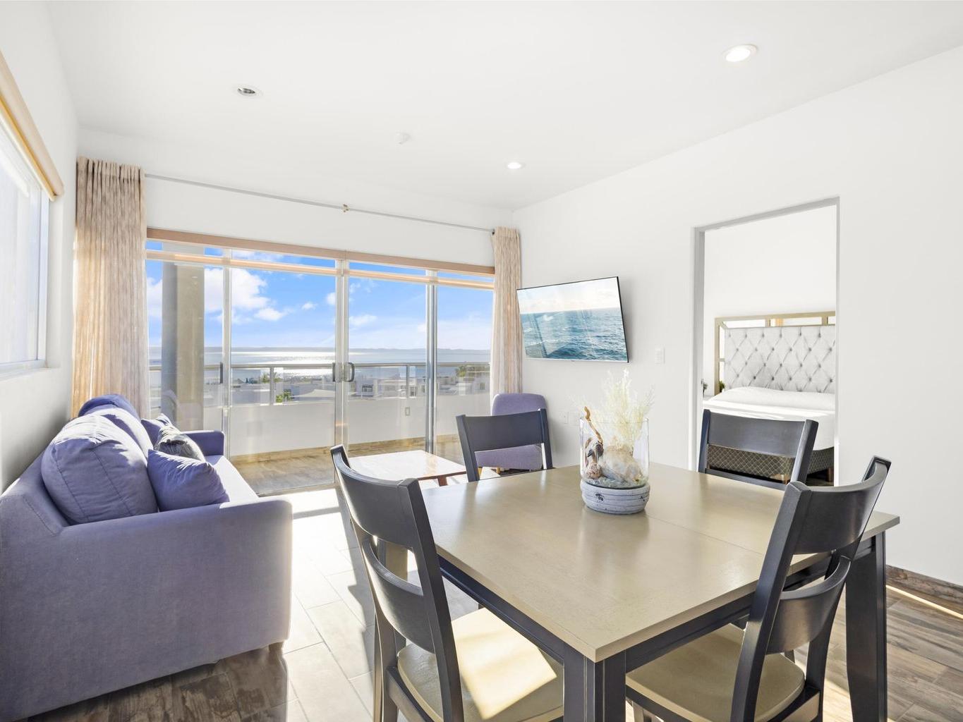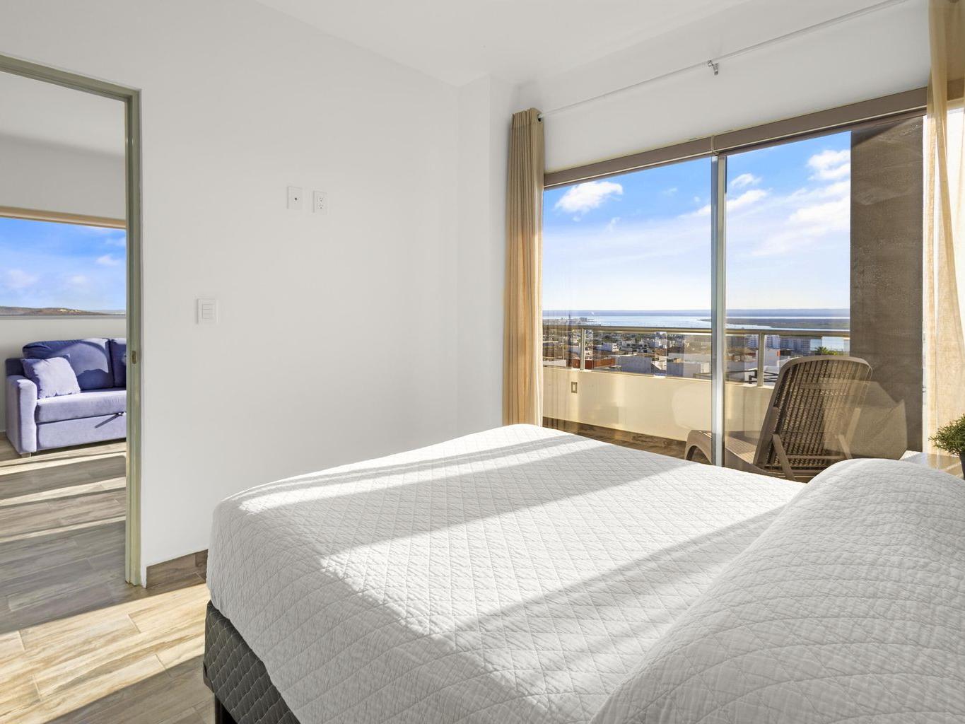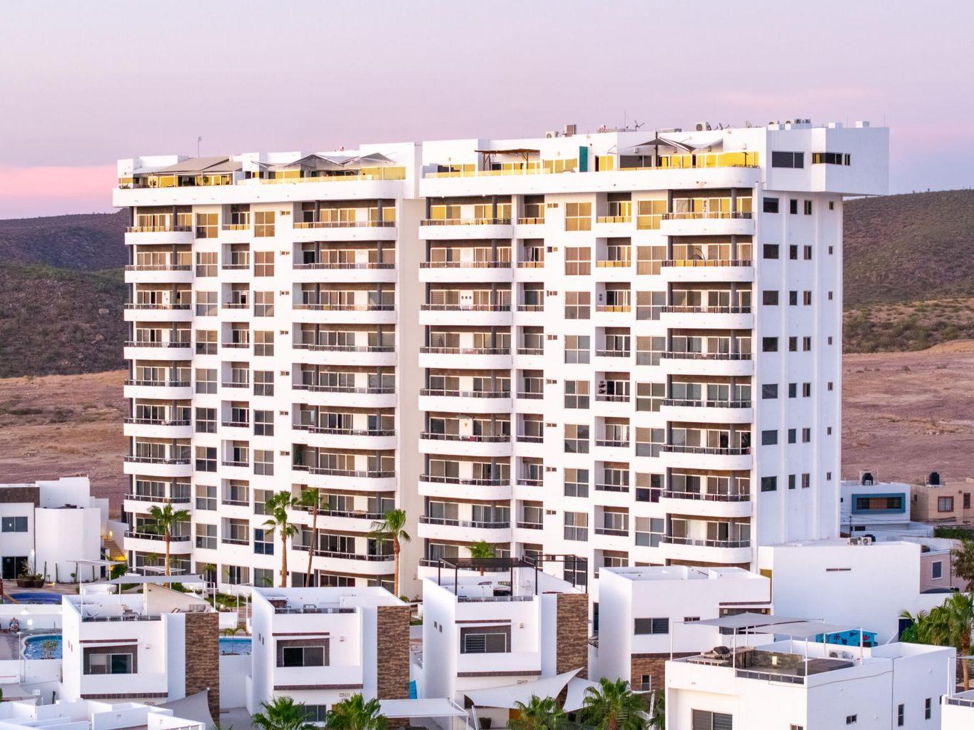 This beautiful fully furnished 2-bedroom, 2-bath condo is located on the fourth floor of the highly desirable Torres Cantera development in La Paz. The primary bedroom features a spectacular ocean view, while the secondary bedroom offers stunning mountain views. Positioned at the end of the hallway with no adjacent unit on one side, the condo offers maximum privacy, additional windows for natural light, a greater sense of space, and excellent cross ventilation. A private terrace provides the perfect spot for a BBQ while enjoying La Paz's iconic sunsets and sunrises. The unit includes a fully equipped kitchen and an in-unit laundry area. Torres Cantera offers premium amenities including adult and children's pools, a gym, cinema, multipurpose room, desert-style landscaping, children's playg