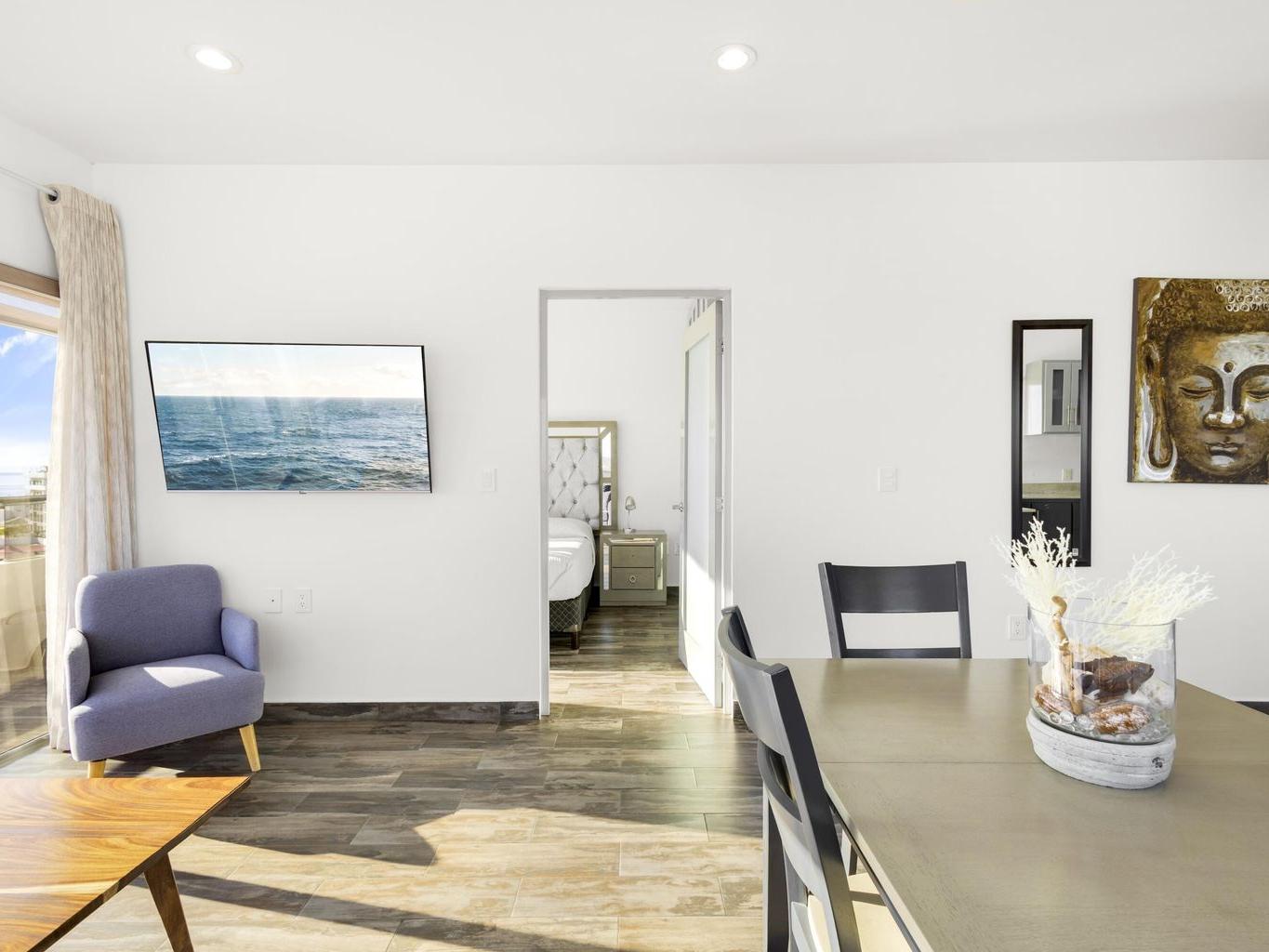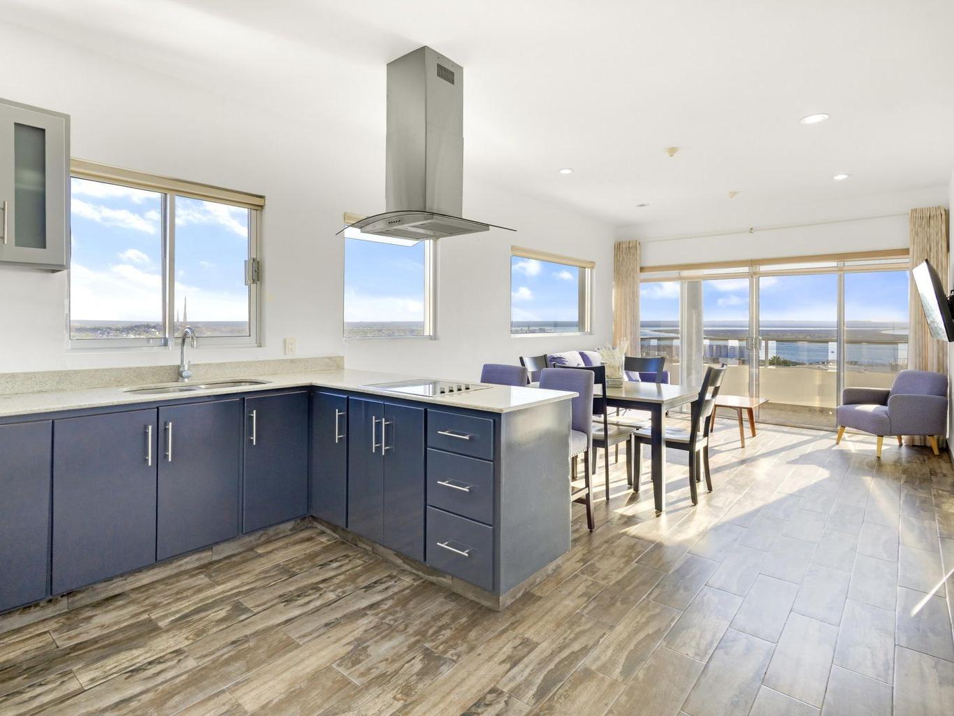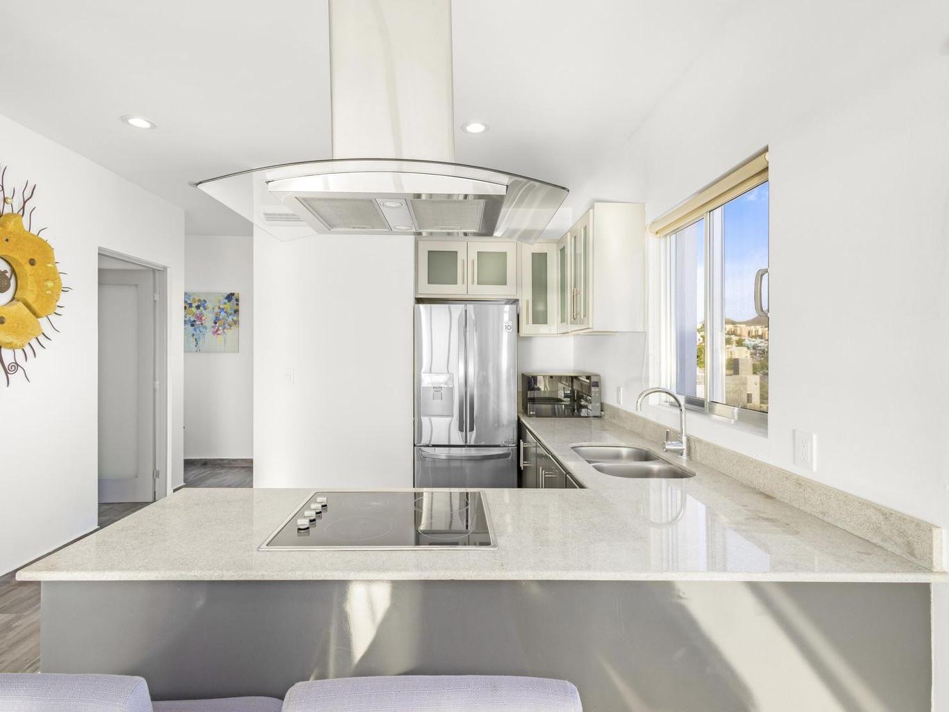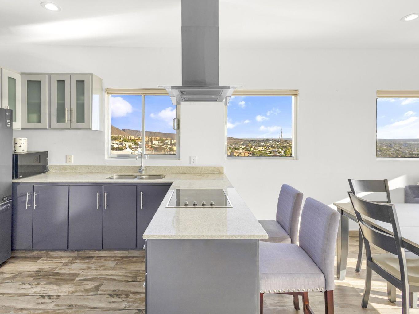 This beautiful fully furnished 2-bedroom, 2-bath condo is located on the fourth floor of the highly desirable Torres Cantera development in La Paz. The primary bedroom features a spectacular ocean view, while the secondary bedroom offers stunning mountain views. Positioned at the end of the hallway with no adjacent unit on one side, the condo offers maximum privacy, additional windows for natural light, a greater sense of space, and excellent cross ventilation. A private terrace provides the perfect spot for a BBQ while enjoying La Paz's iconic sunsets and sunrises. The unit includes a fully equipped kitchen and an in-unit laundry area. Torres Cantera offers premium amenities including adult and children's pools, a gym, cinema, multipurpose room, desert-style landscaping, children's playg