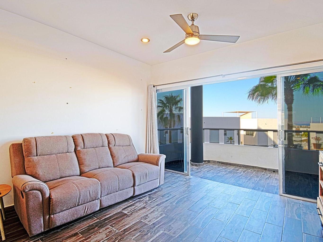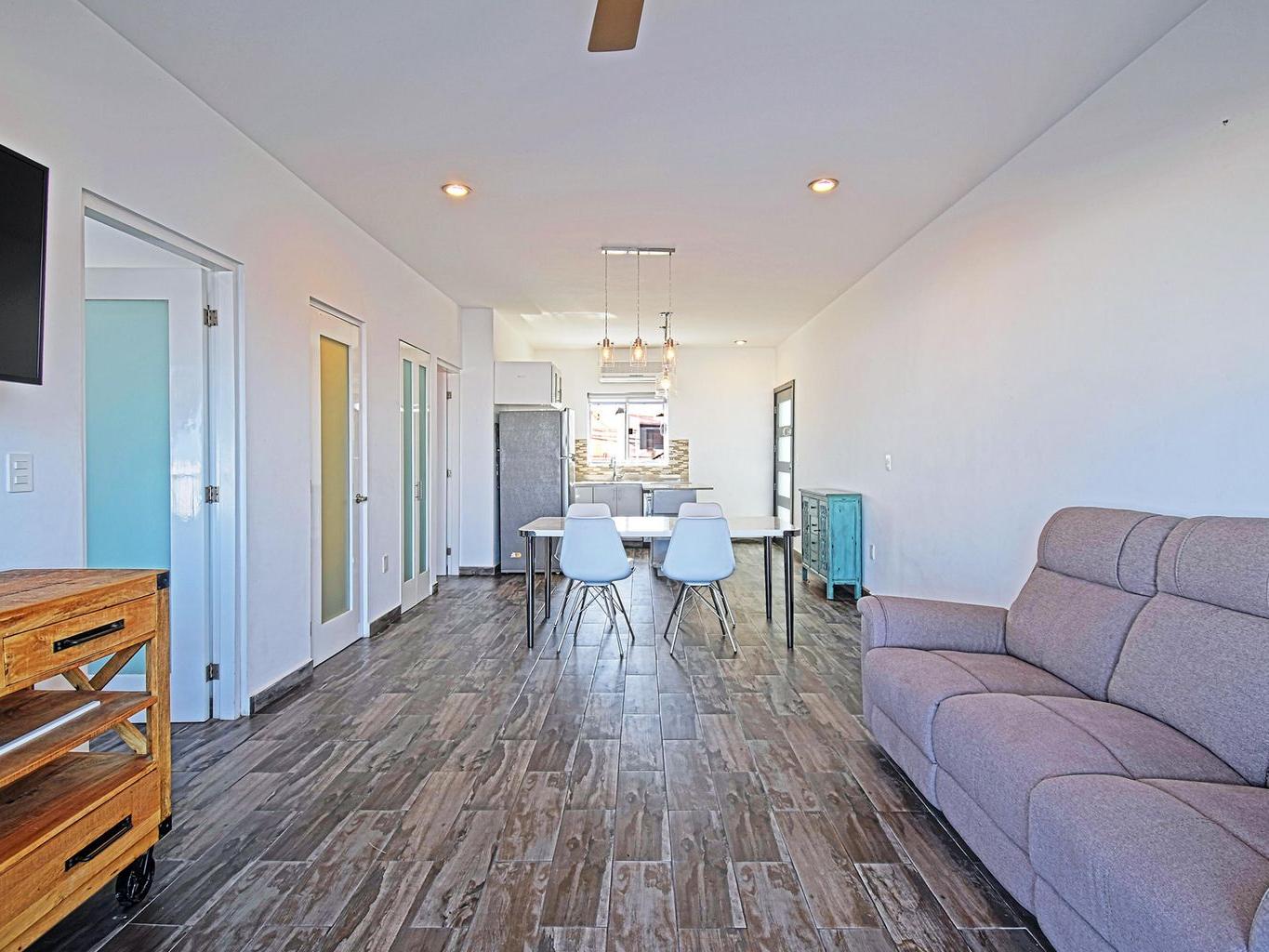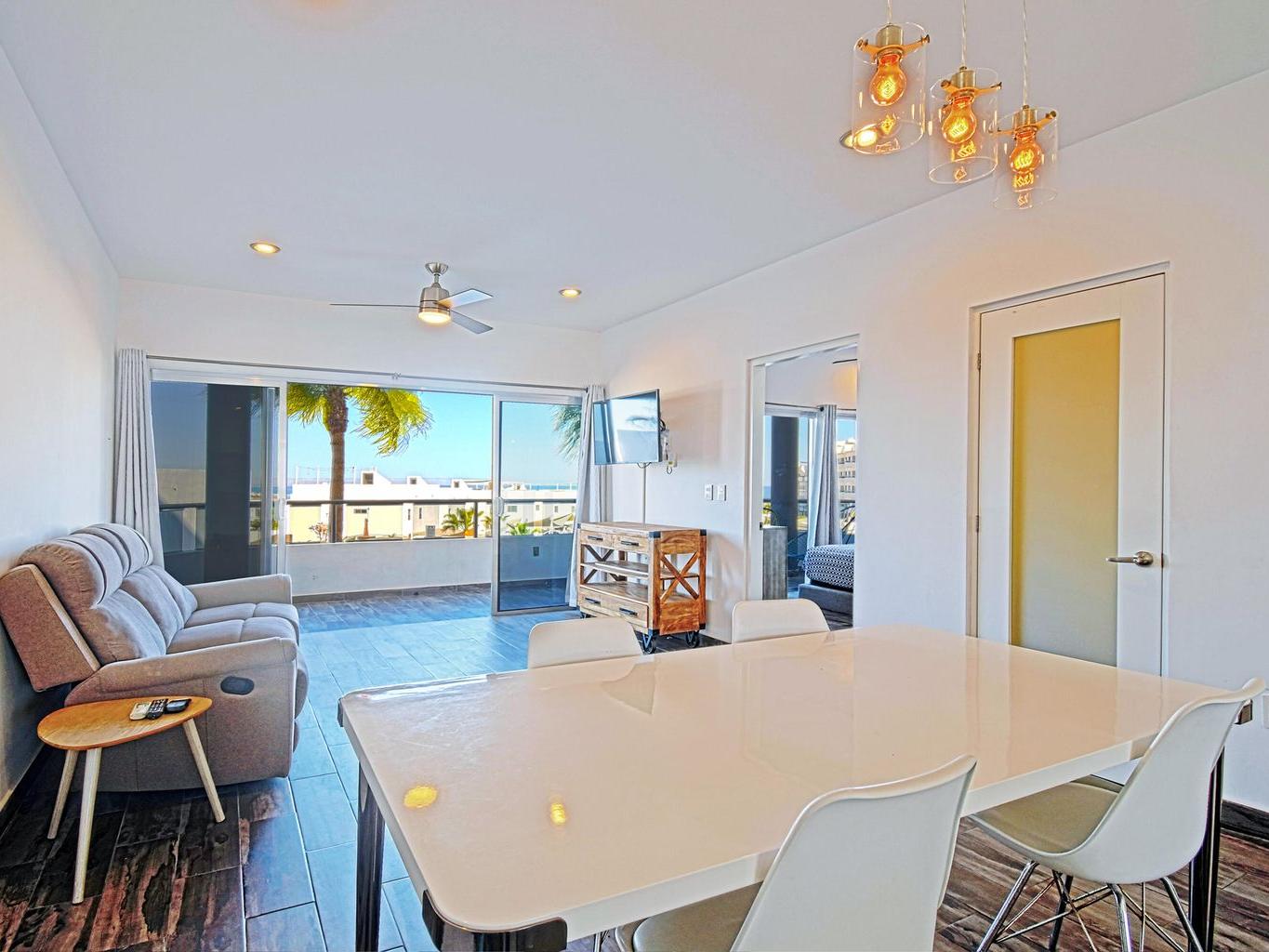 This second-floor condo is a bright, open layout with 2 bedrooms, 2.5 bathrooms, with large private terrace and a stunning view of the Sea of Cortes. Comes with one parking spot and a storage locker for your beach umbrella, surf board, fishing gear :)
