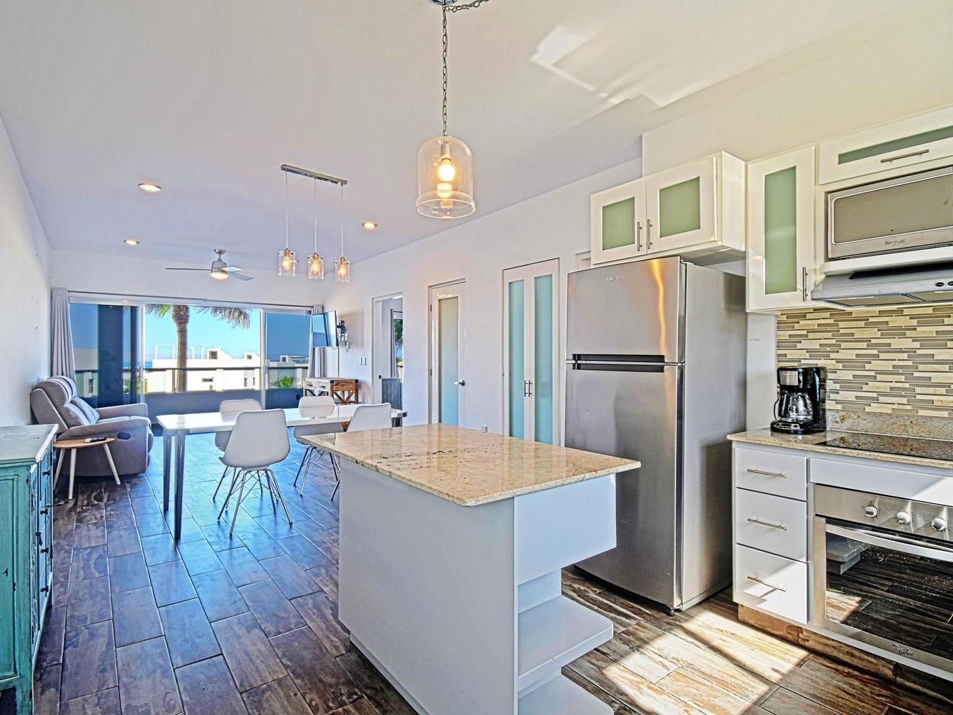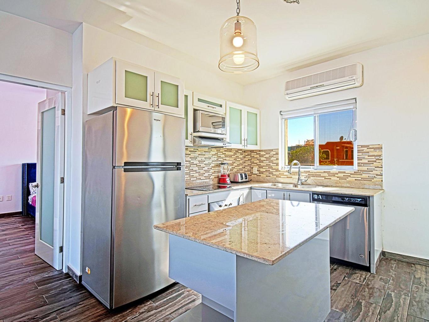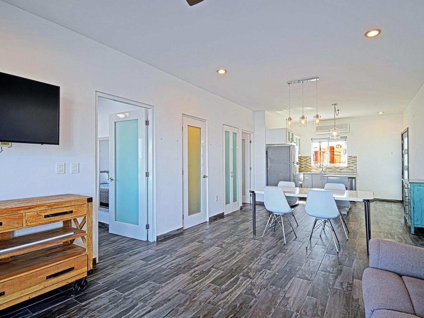This second-floor condo is a bright, open layout with 2 bedrooms, 2.5 bathrooms, with large private terrace and a stunning view of the Sea of Cortes. Comes with one parking spot and a storage locker for your beach umbrella, surf board, fishing gear :)