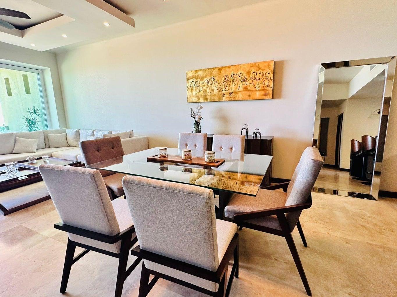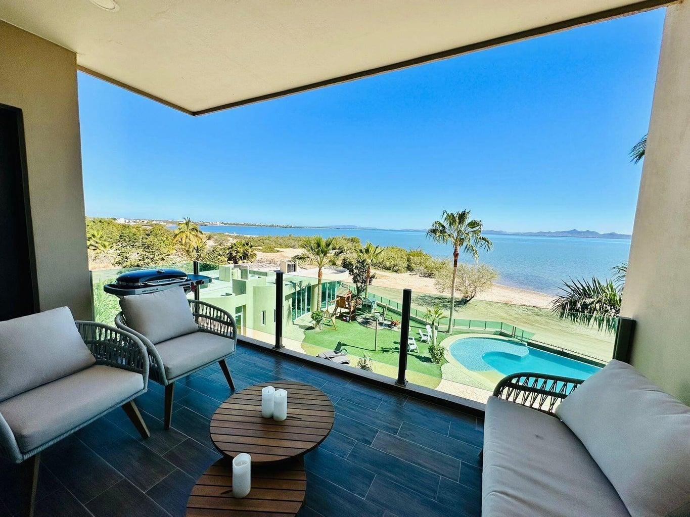 Bienvenidos! Welcome to your oceanfront oasis, where serenity meets elegance in this stunning beach apartment. This coastal retreat offers an unparalleled lifestyle, with panoramic views of La Paz Bay and direct access to the sand from your doors. Contemporary design and high-end finishes combine to create a luxurious and welcoming atmosphere. It's the perfect place to relax and enjoy the stunning ocean views, with an open concept layout that flows effortlessly into the dining room and gourmet kitchen. Enjoy the outdoor lifestyle where you can delight in stunning sunrises and sunsets or simply relax while listening to the sound of the sea.