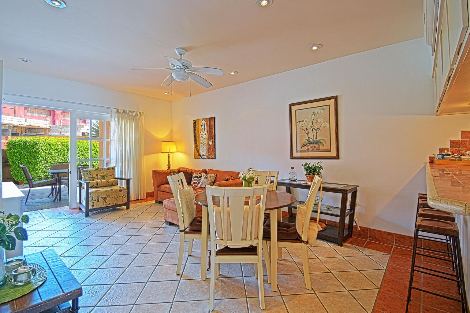 The private terrace/patio is a serene space to relax, just steps away from the community pool and BBQ area, creating an ideal spot for outdoor gatherings. It feels like a little house!