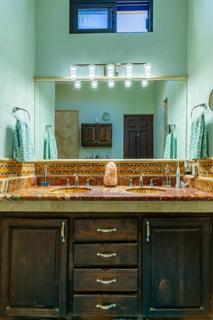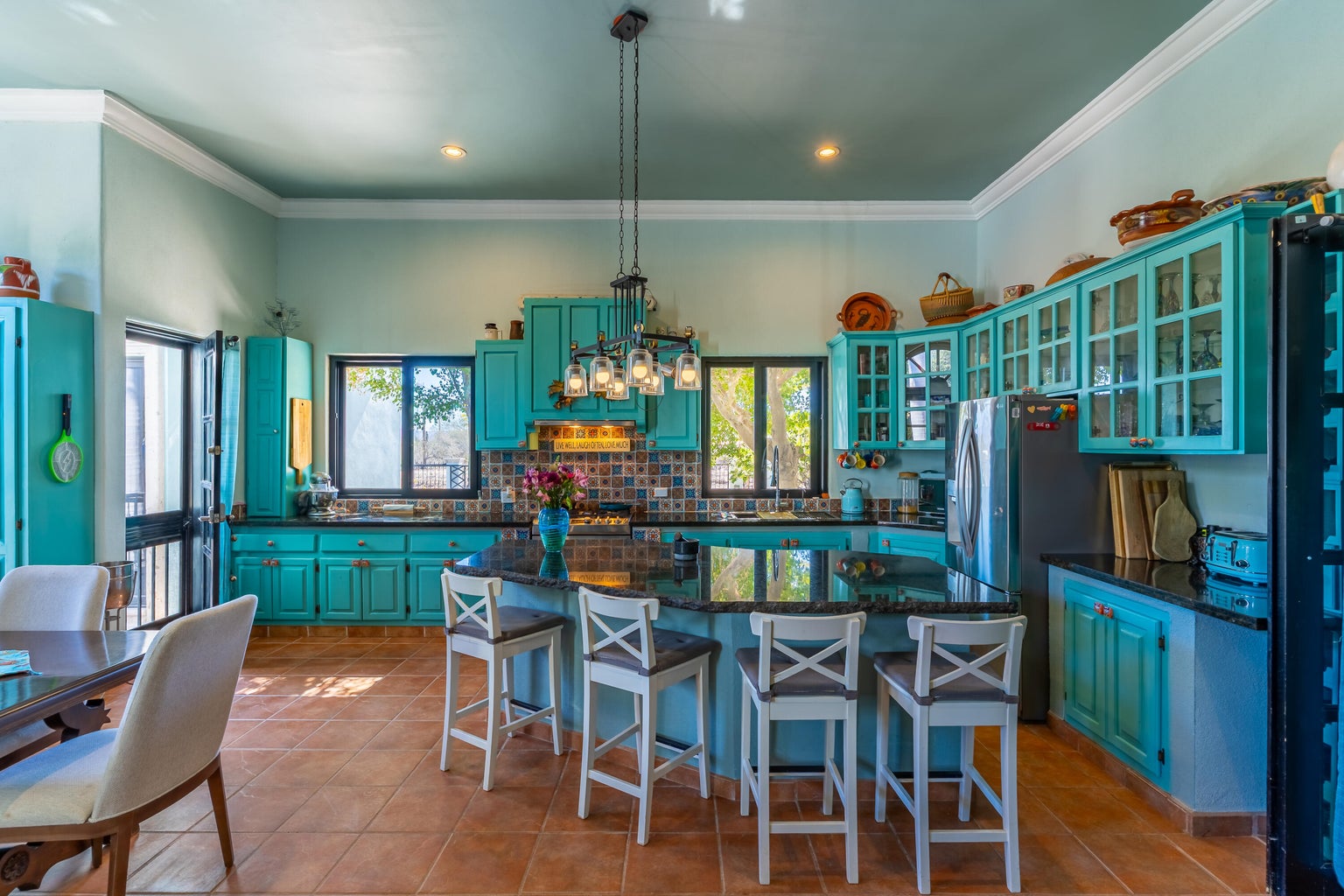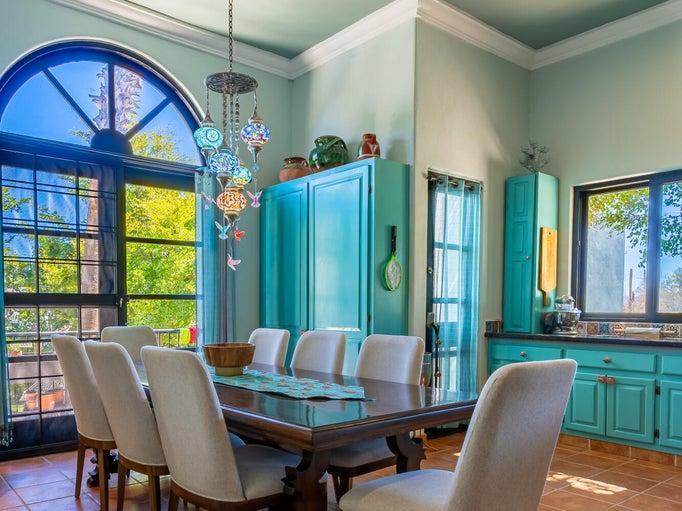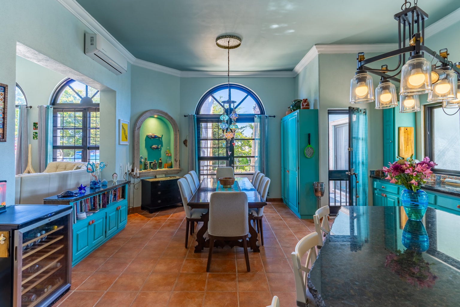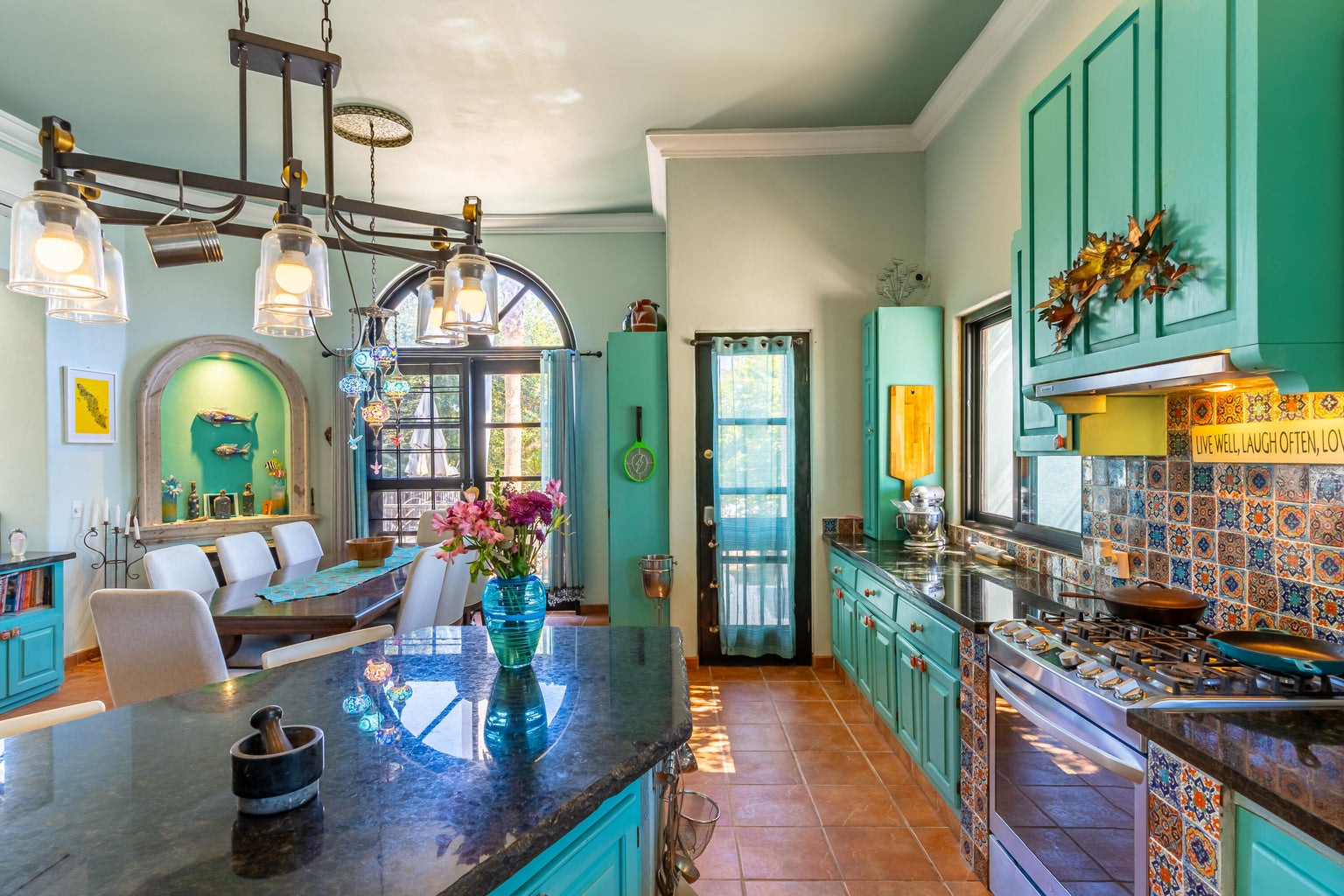 Step inside to discover authentic Mexican character, from colorful tiles and hand-painted murals to arched niches, canterra trim, and two charming cupolas. The main home has been thoughtfully updated