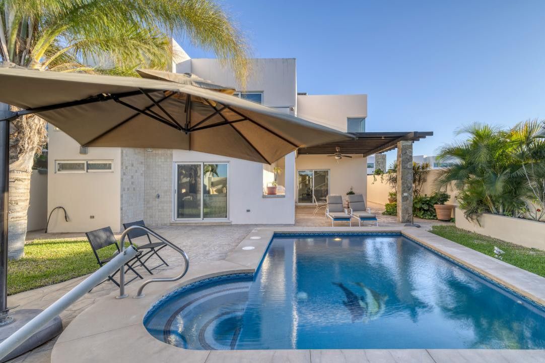 The house has All the bells and whistles. Swimming pool, Tv's, Dishwasher, Fridge, Washer and Dryer, Pantry, Outdoor BBQ and Fridge, Outdoor Bathroom, Water Softening system, completely landscaped, Large Cistern, Marble floors throughout the house, large two car garage, Granite countertops, 2 living rooms, dining room. Suffice it to say this house is large and beautiful.