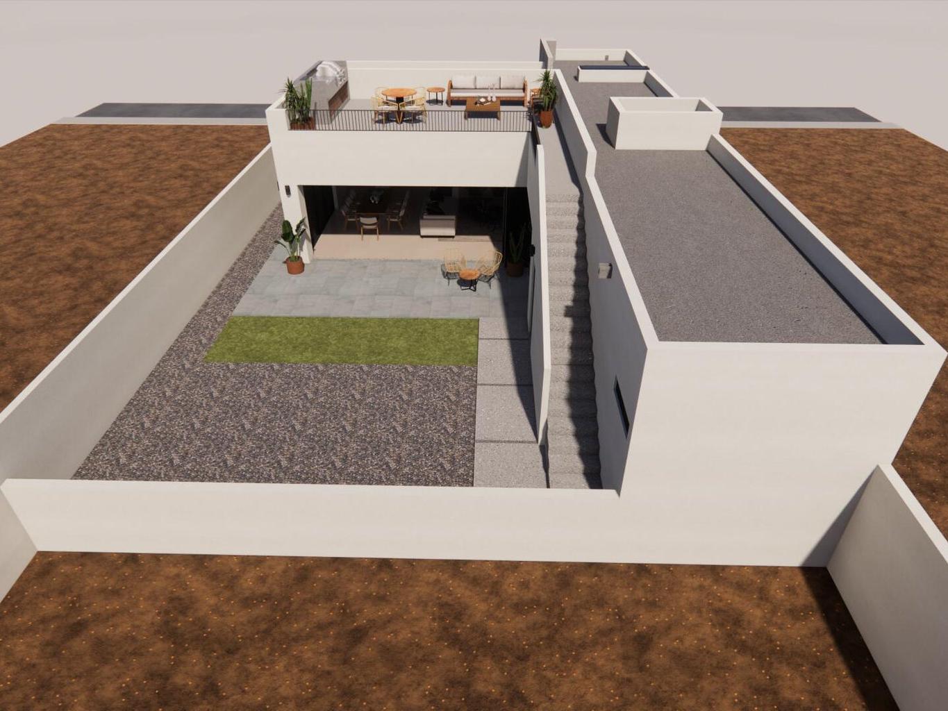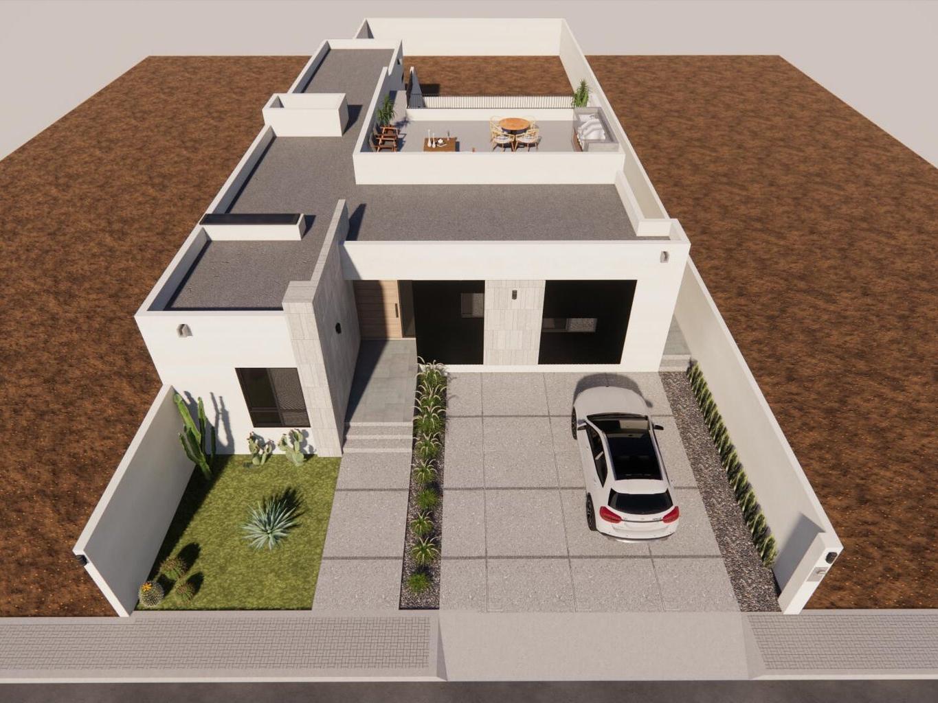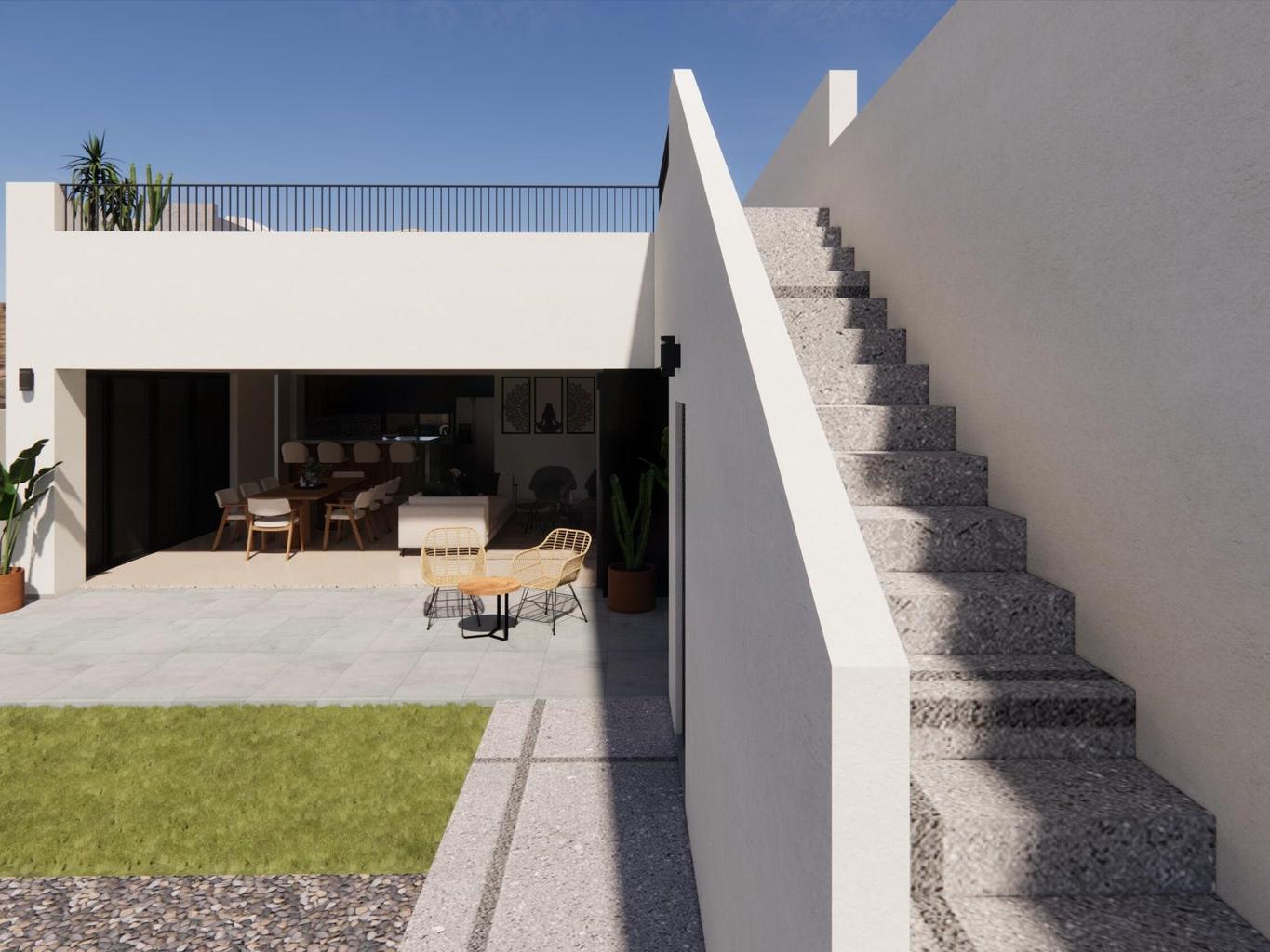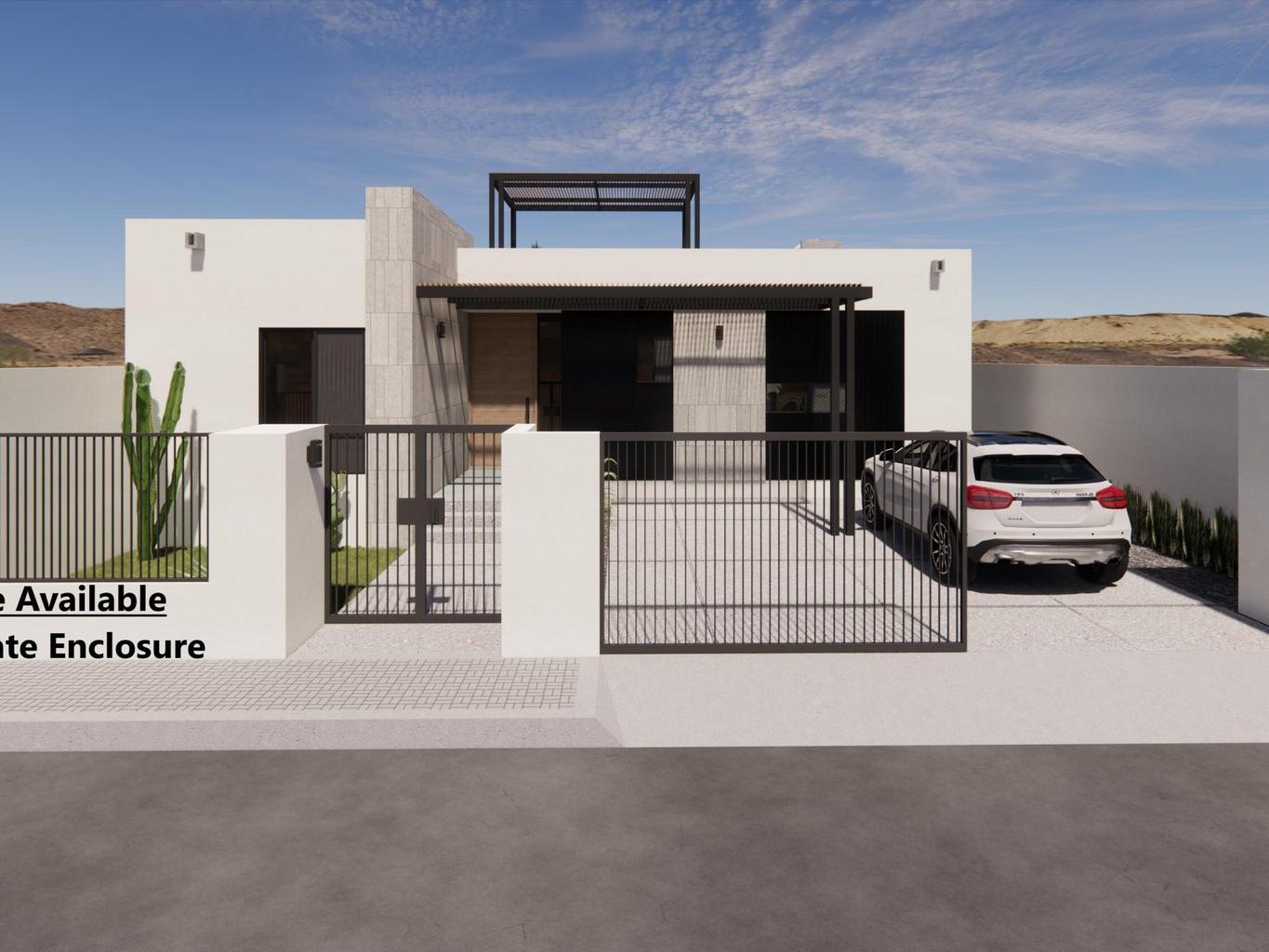 This single-story house features 3 spacious bedrooms, including a master bedroom with a walk-in closet and full bathroom, an open-concept living and dining area with pocket windows to create more depth and a rooftop terrace with ocean views to La Paz Bay.