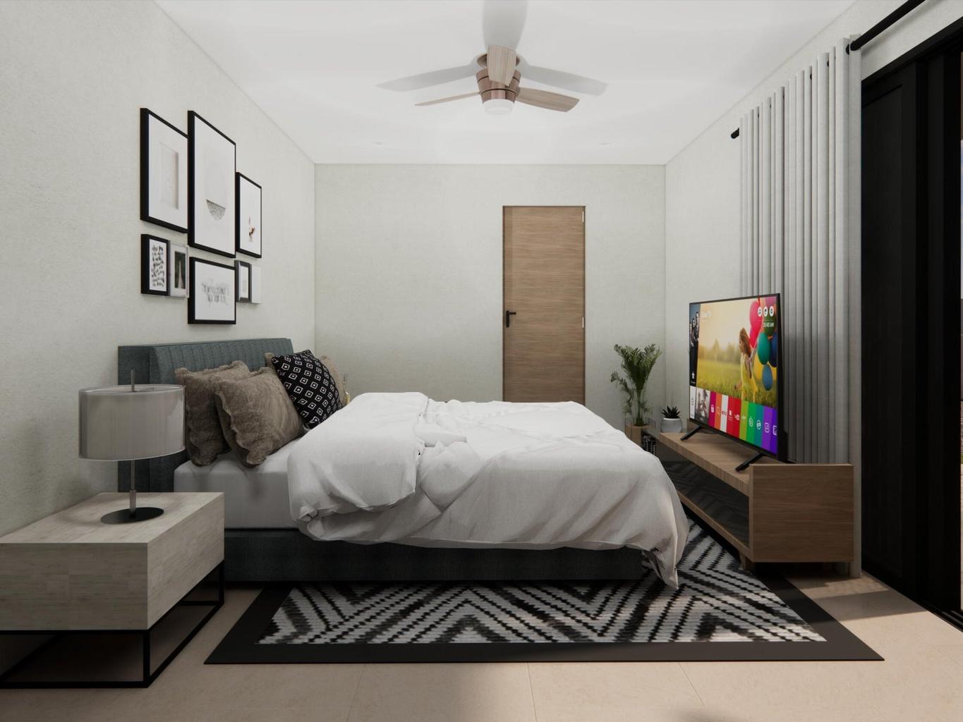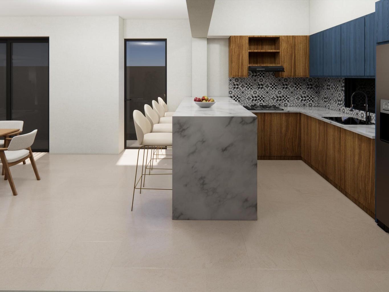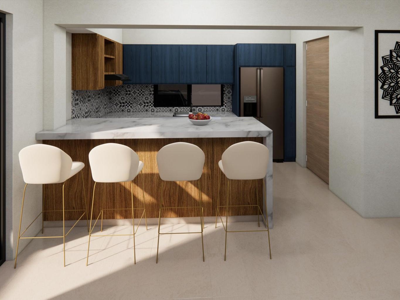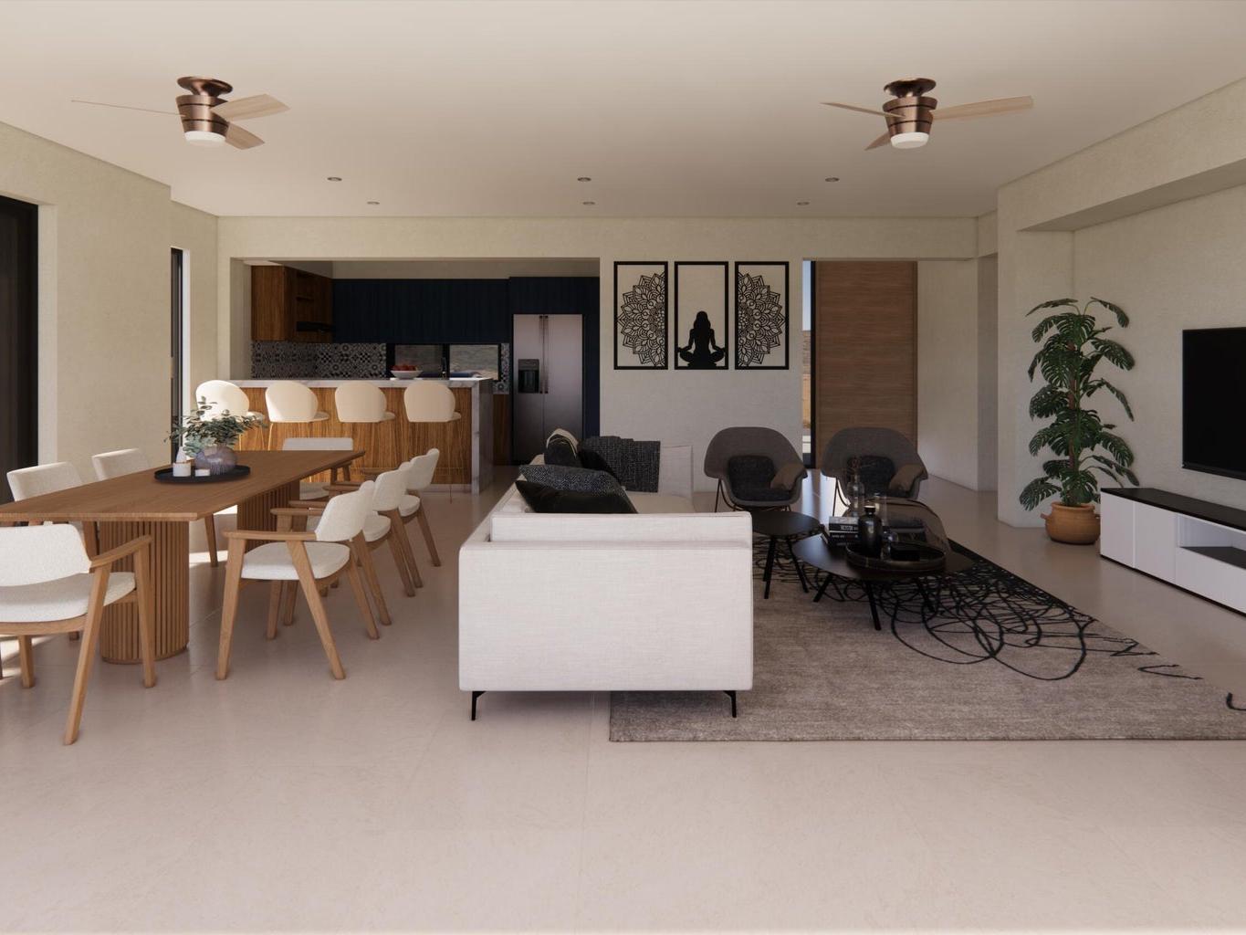 This single-story house features 3 spacious bedrooms, including a master bedroom with a walk-in closet and full bathroom, an open-concept living and dining area with pocket windows to create more depth and a rooftop terrace with ocean views to La Paz Bay.