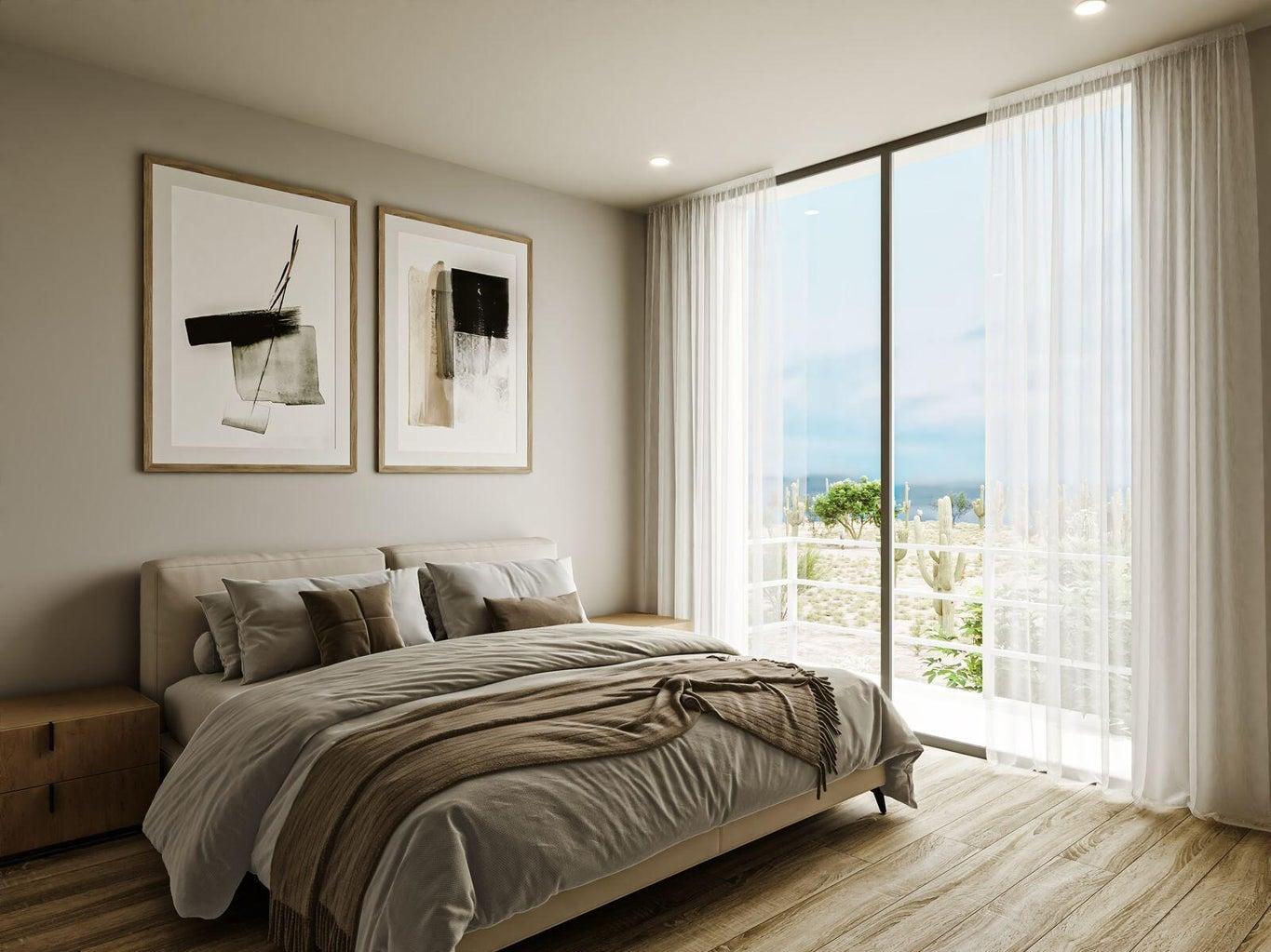 Each residence offers a soaring double-height great room with abundant light, a ground-floor bedroom with full bath for true single-level living, upstairs bedrooms (2) for privacy, and a rooftop with storage; select rooftops frame Sea of Cortez views.