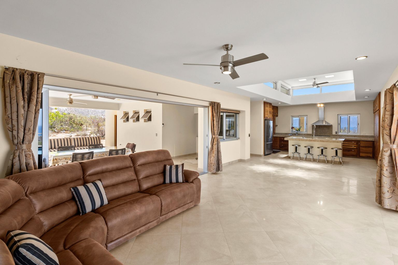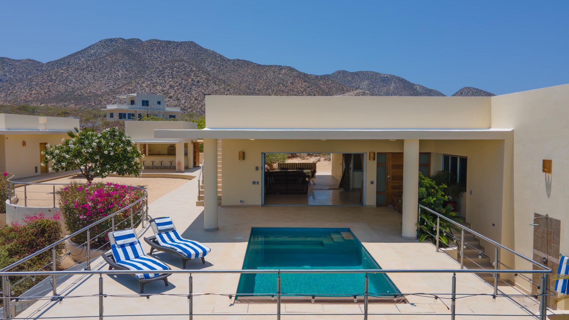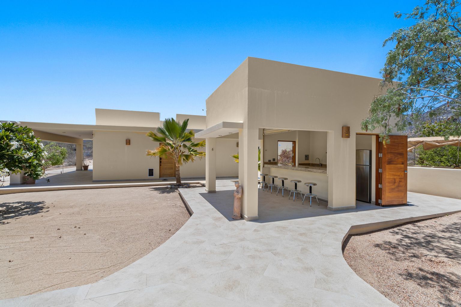 Nestled within the El Jalito enclave of El Sargento/La Ventana, Casa Linda offers an unparalleled connection to nature, with breathtaking ocean and mountain views that will captivate you from every angle. Seamlessly blending the indoors with the outdoors, this one-level home is perfect for entertaining family and friends. The main house, guest casita, and outdoor kitchen/living areas create an open, welcoming environment.