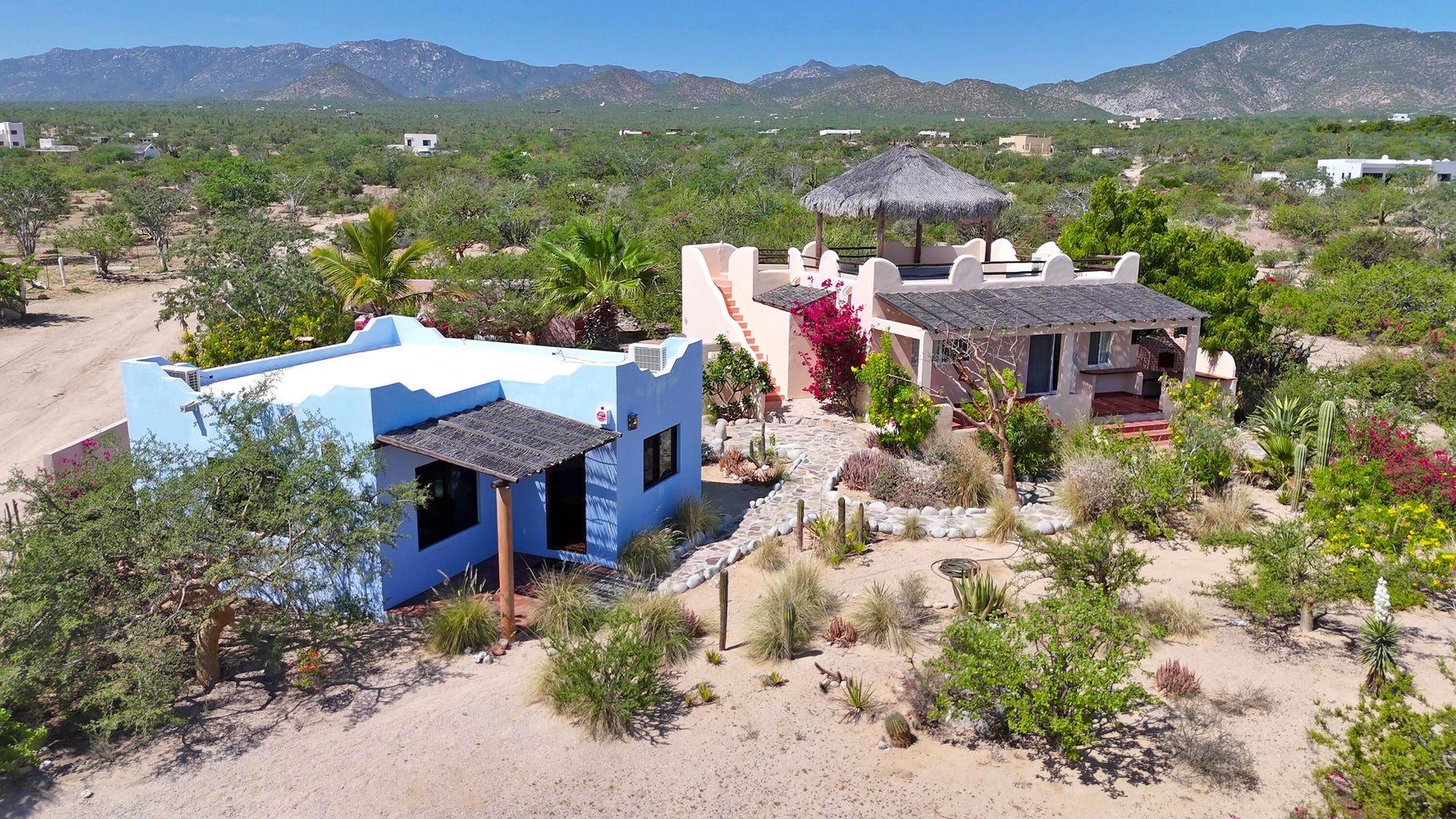 Discover your Baja paradise on a spacious one-third acre lot featuring two charming, one-bedroom casitas—Casa Coral & Casa Mar—perfect for guests or vacation rentals. Each house offers privacy and stunning views of La Ventana Bay, where turquoise waters meet vibrant skies. Located in El Sargento this property is ideal for wind sports enthusiasts and mountain bikers. For those seeking to preserve this scenic vista, the adjacent lot in front is also available, offering an incredible investment opportunity in one of Baja California Sur's most scenic coastal areas.