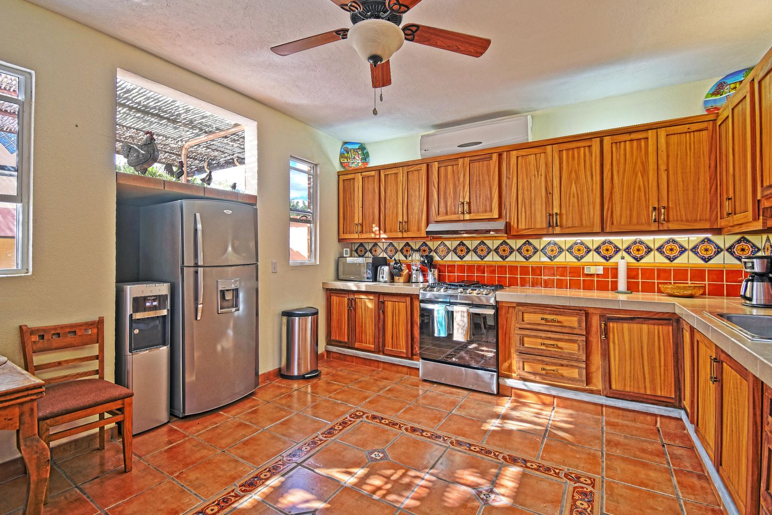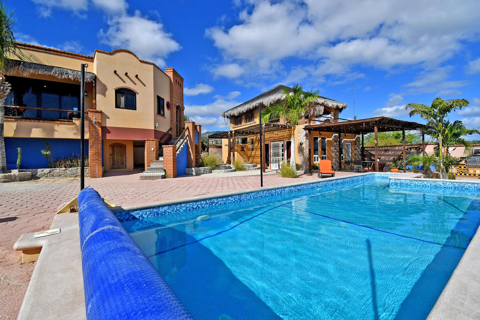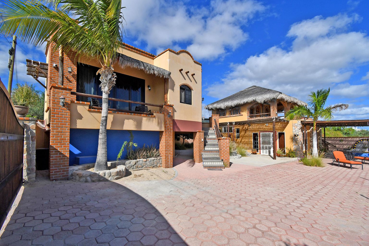 This very private and beautifully landscaped property is the Ultimate Baja Living! Property hosts two, freestanding homes, one being semi-traditional mexican style with a large remodeled kitchen, living area and den office with murphy bed for guests on main level and master bedroom with private terraza above. The other modern style home built in 2018 is one bedroom with granite counter tops, king bed, large bathroom and private terraza. Both homes have amazing ocean views. Incredible outdoor entertainment space includes a fountain for ambience and large SWIMMING POOL with flagstone patio, covered by pergola shade, grill area, outdoor table seats 8 and sun furniture. Excellent opportunity to own in a northern neighborhood two blocks from the sandy beach! Plenty of room to expand!