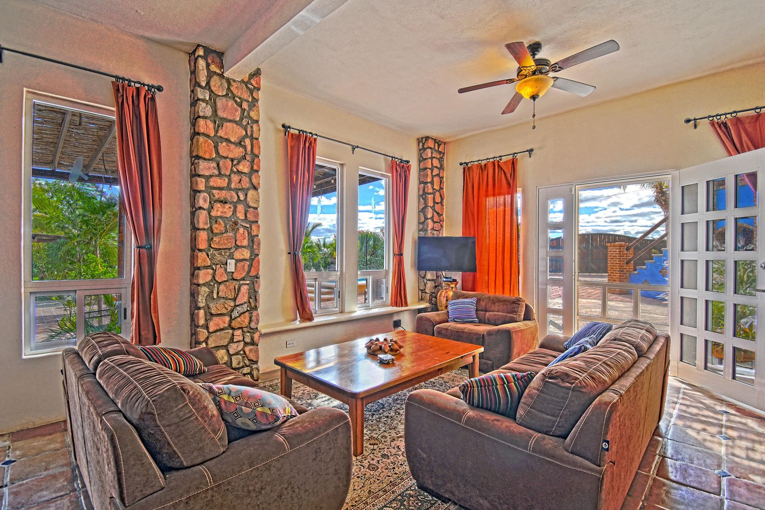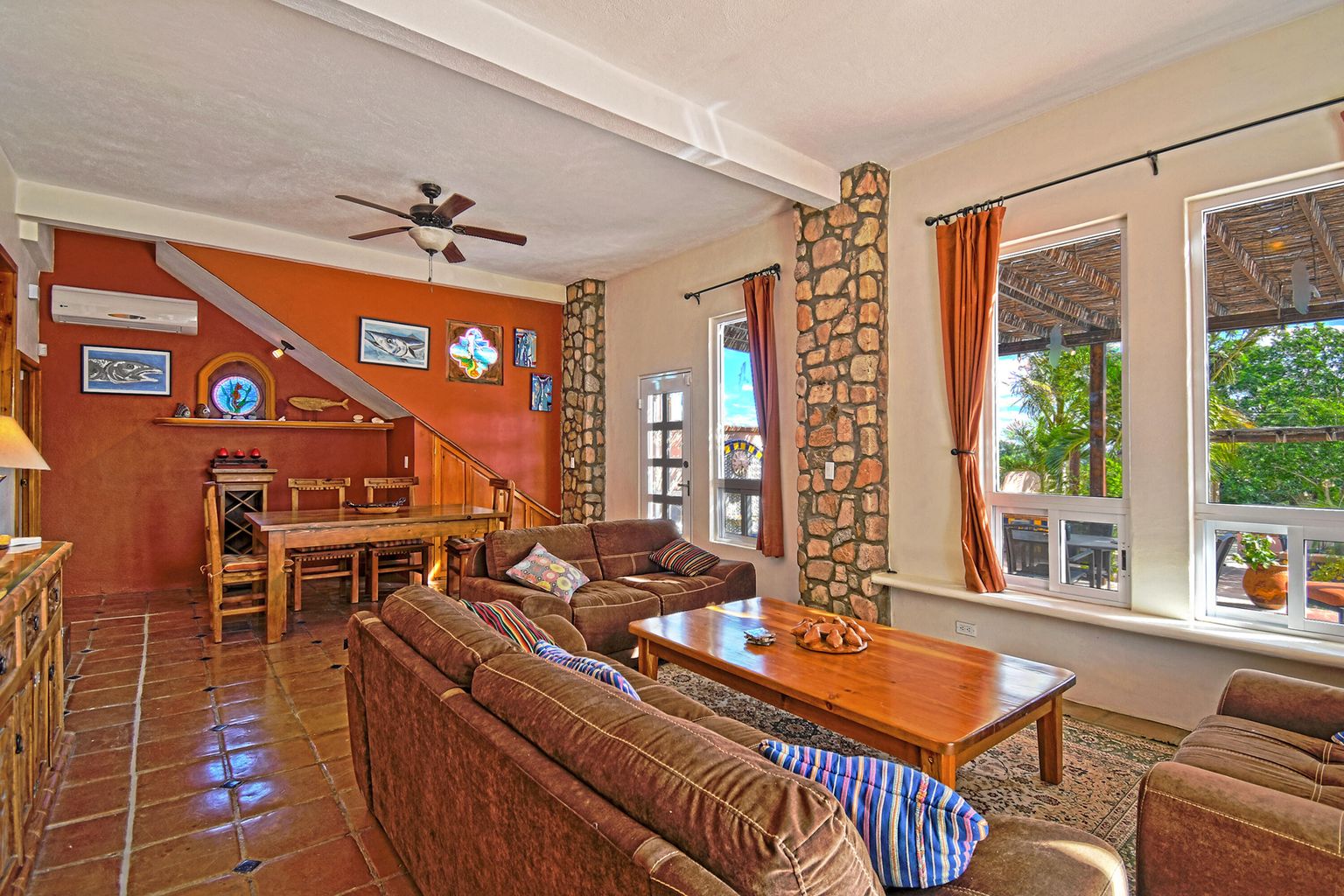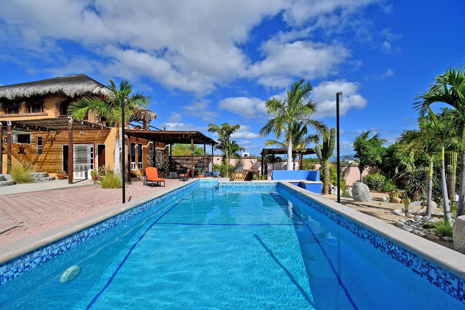 This very private and beautifully landscaped property is the Ultimate Baja Living! Property hosts two, freestanding homes, one being semi-traditional mexican style with a large remodeled kitchen, living area and den office with murphy bed for guests on main level and master bedroom with private terraza above. The other modern style home built in 2018 is one bedroom with granite counter tops, king bed, large bathroom and private terraza. Both homes have amazing ocean views. Incredible outdoor entertainment space includes a fountain for ambience and large SWIMMING POOL with flagstone patio, covered by pergola shade, grill area, outdoor table seats 8 and sun furniture. Excellent opportunity to own in a northern neighborhood two blocks from the sandy beach! Plenty of room to expand!