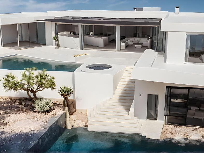 Near Rasta Beach, this double winged villa design is the pinnacle of modern luxury! Clean lines, soaring ceilings, and sliding glass doors frame a breathtaking ocean panorama. Living space flows seamlessly, with porcelain tile floors cool beneath your feet.