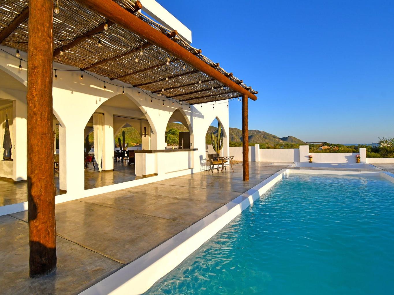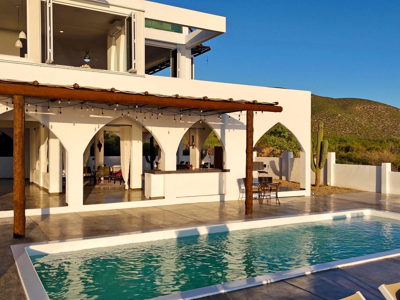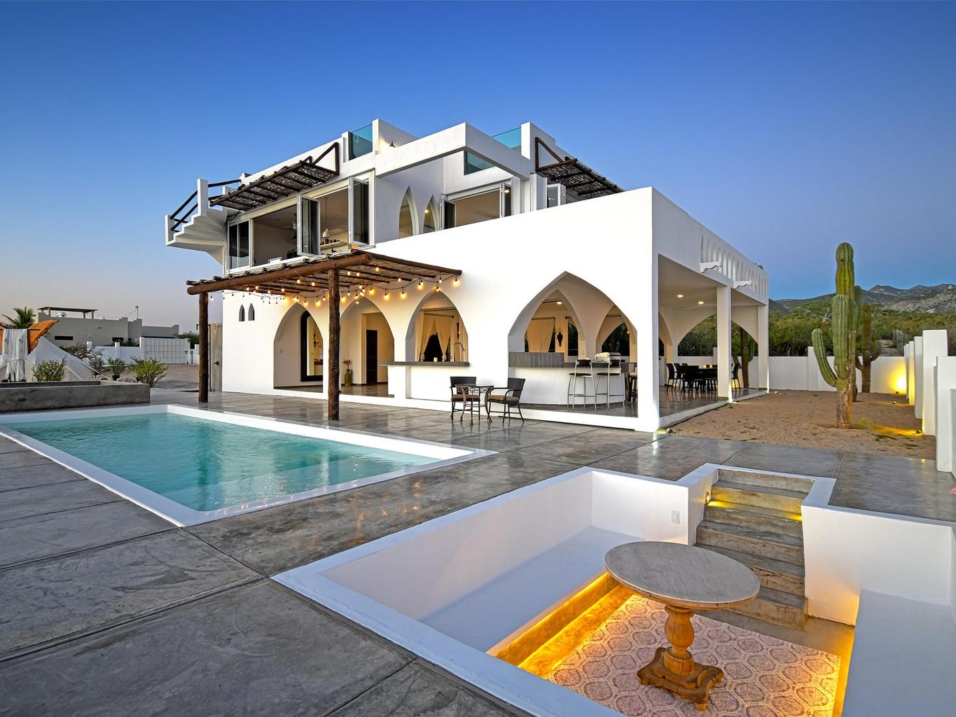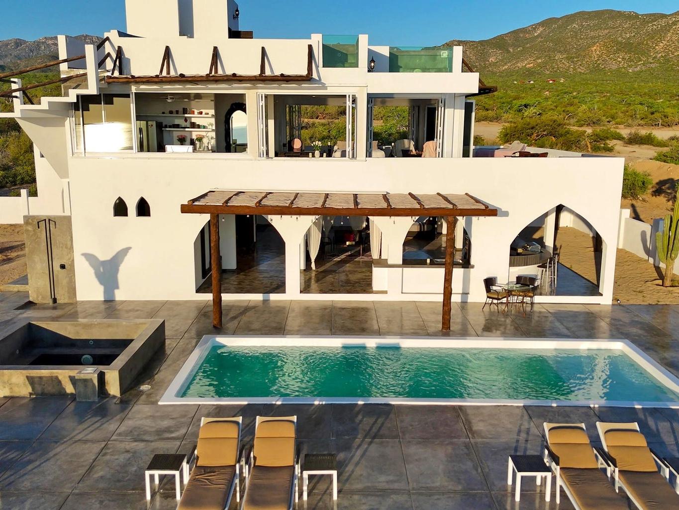 A one-of-a-kind gorgeous retreat nestled in the Baja desert, with a breathtaking backdrop of mountains, overlooking the Sea of Cortez offering an unparalleled lifestyle for adventure seekers, wellness enthusiasts, and those who crave serenity in paradise. Rooftop glass infinity pool & cold plunge pool. Private penthouse soaking tub surrounded by arches plus heated lap pool with massive jacuzzi on infinity-style deck.