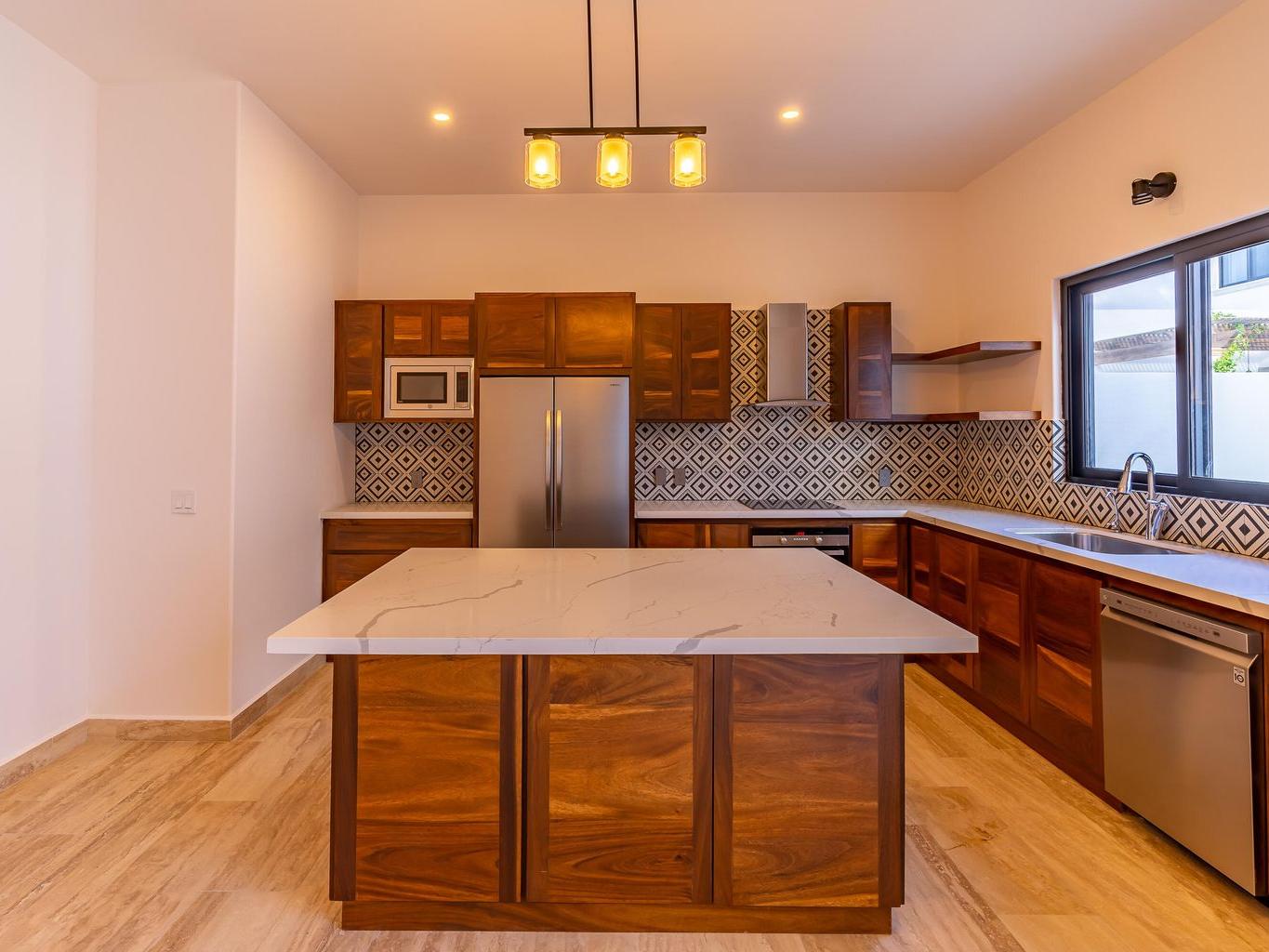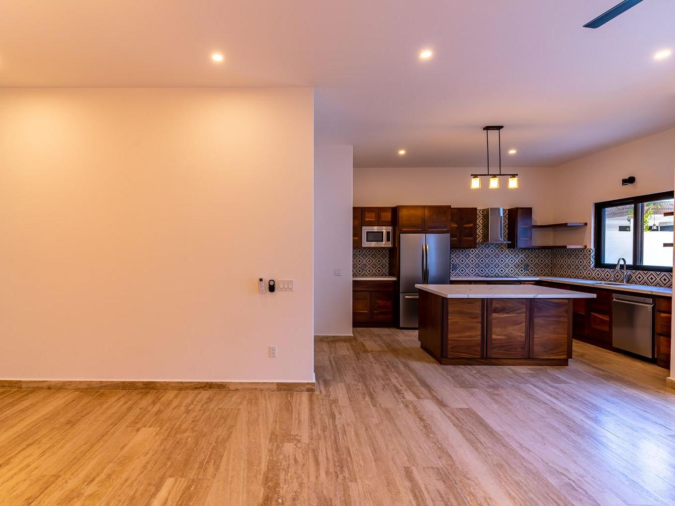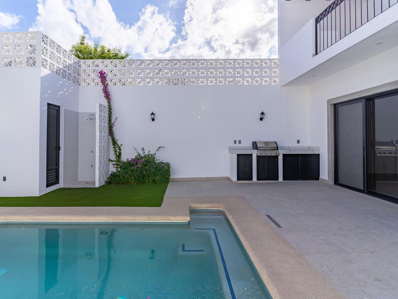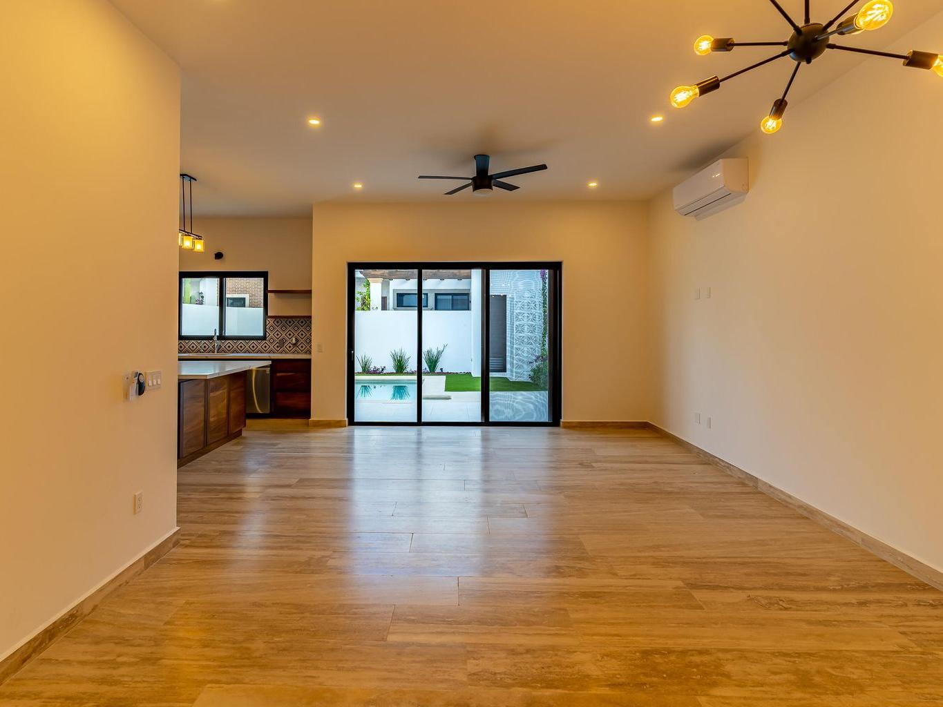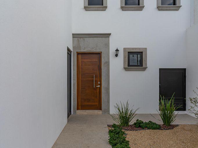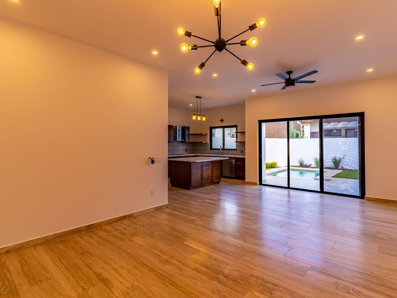 Elegant, newly built two-story home just steps from the La Paz Waterfront boardwalk. Set in the vibrant Esterito area, this residence features three bedroom suites each with its own bathroom and built-in parota closets plus an additional half bathroom. The home showcases modern colonial finishes seamlessly blending with La Paz's unique architecture and entire marble floors thorough the whole the layout features an L-shaped kitchen with an island, pantry, and laundry room, as well as a living and dining area that opens to a patio, pool, outdoor shower, and barbecue area. The first floor hosts a bedroom suite, while the second floor offers a master suite with a walk-in closet, a third bedroom suite, a family area, and an outdoor terrace with a fire pit lounge and leading to roof pergola.