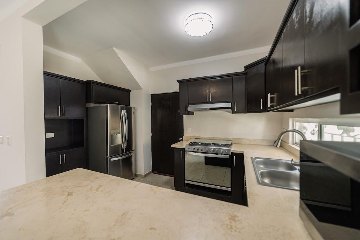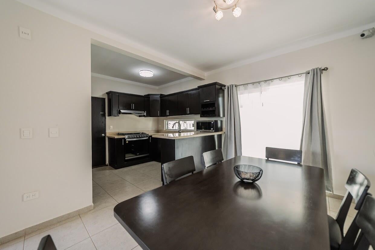 This beautiful two-story house, furnished has three bedrooms (Master bedroom with walk-in closet and full bathroom) two bathrooms and a half bath, kitchen with marble bar fully equipped with stove, hood, refrigerator and microwave oven, 5mini splits, washing and drying center, 2800 liter tanker and hydro, In addition to ironwork on gates, access door and windows