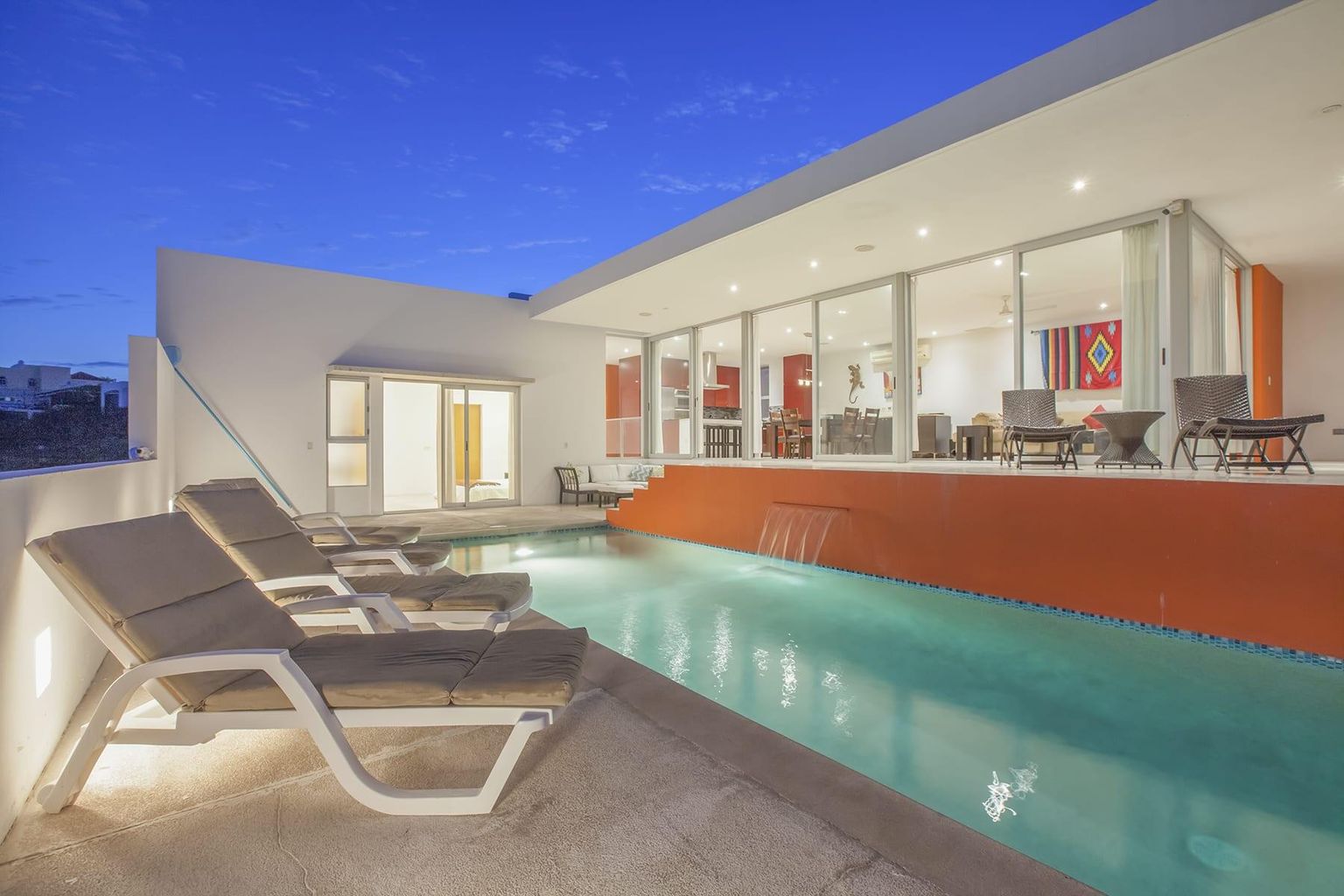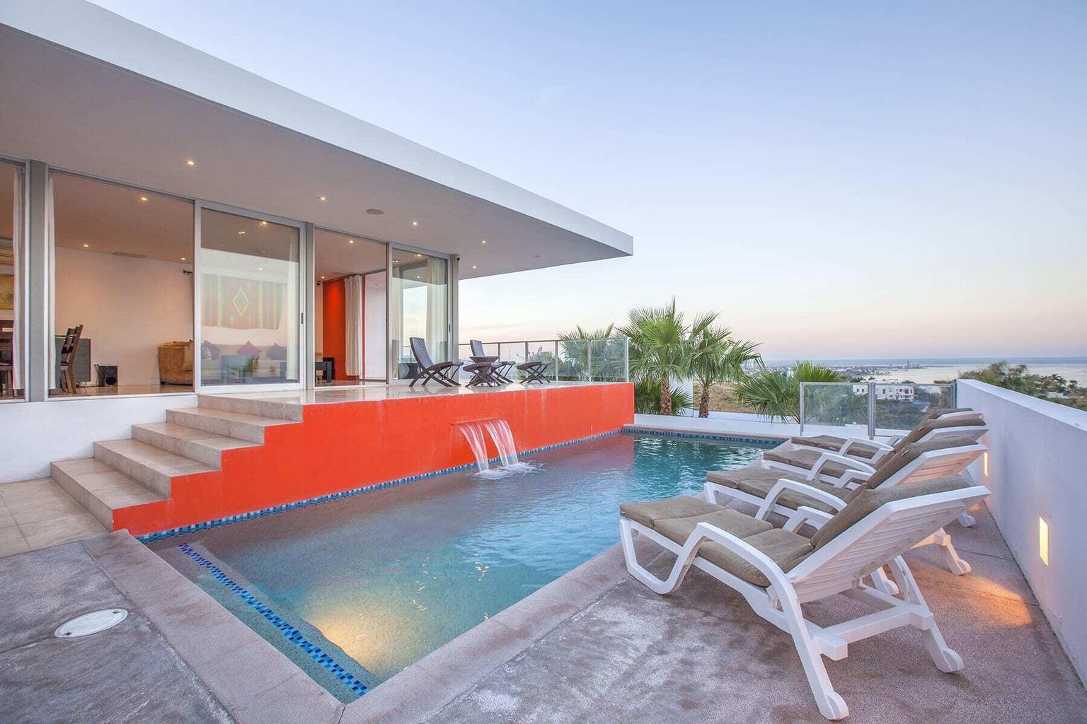 Nestled in the exclusive Lomas de Palmira gated community, this stunning home combines contemporary architecture with breathtaking La Paz Bay views. Its modern design boasts clean lines, luxurious finishes, and a spacious layout perfect for relaxing or entertaining. Highlights include open-concept living areas that blend indoor and outdoor spaces, a fully equipped chef's kitchen, and a private pool with a serene deck. The property enjoys easy access to the La Paz beach road and has a proven track record as a successful Airbnb rental. Positioned to capture stunning sunsets, this home offers security, peace, and proximity to local amenities. Ideal as a second home or investment, it promises an unparalleled lifestyle of comfort and elegance by the sea.
