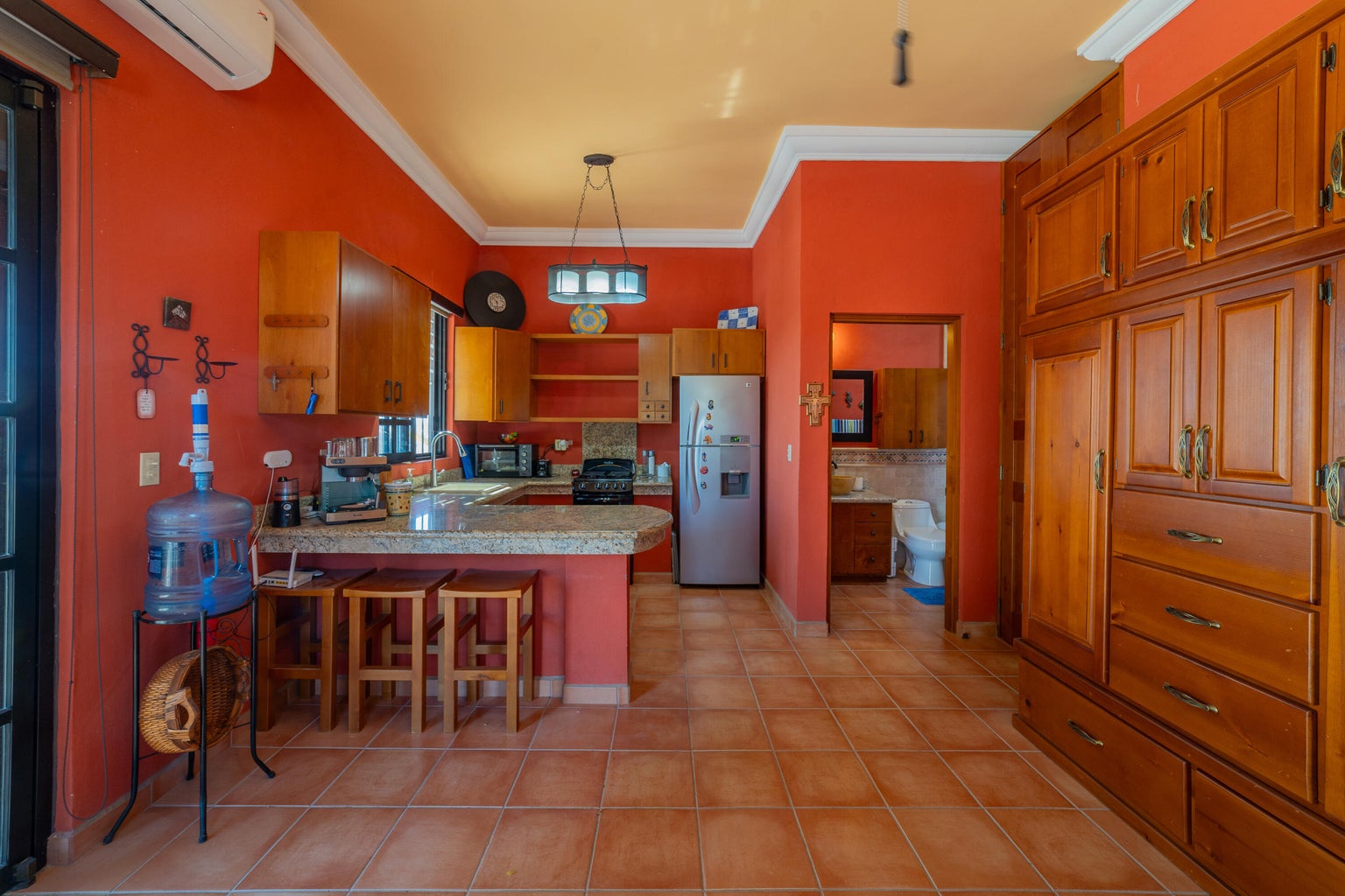 Step outside to a spacious porch and deck, perfect for morning coffee or sunset drinks. Head up to the rooftop terrace and soak in sweeping views of the Bay of La Paz—a peaceful spot to watch the stars or enjoy the ocean breeze. Set on a quiet lot, this casita is ideal for a seasonal resident, or as a high-potential Airbnb property. Whether you're looking for a full-time Baja lifestyle or a tranquil vacation escape, Casita del Dielo offers style and soul.