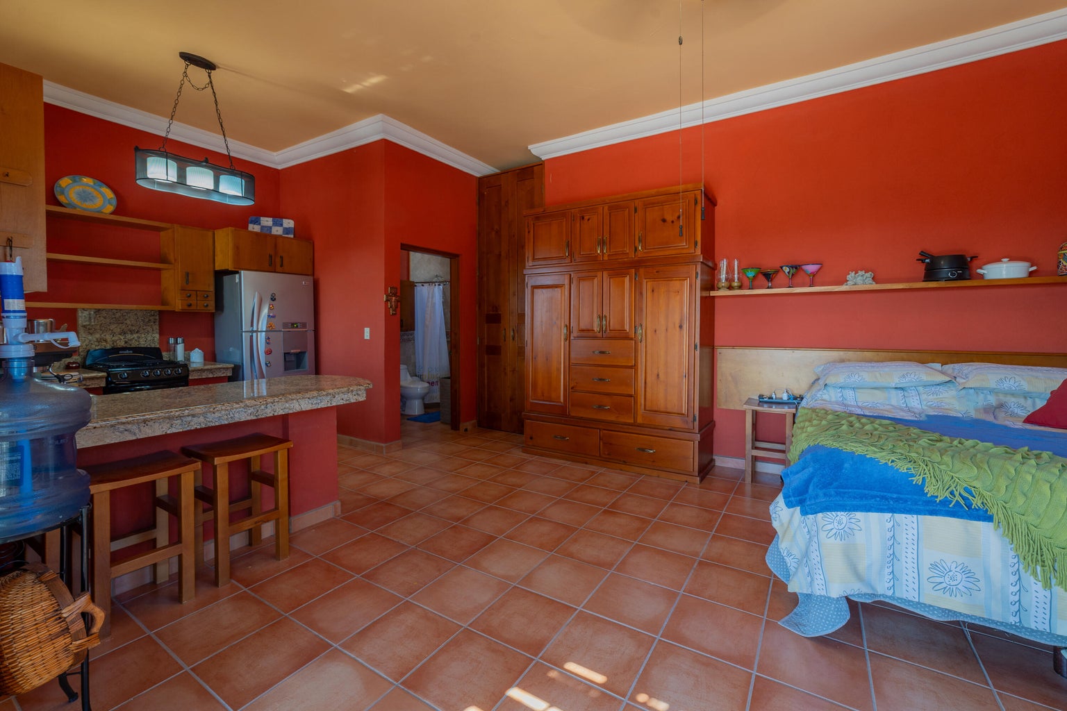 Perched in the peaceful beauty of El Centenario, Casita del Cielo is a thoughtfully designed studio casita that blends modern comfort with traditional Mexican charm. This cozy retreat features a full bathroom, a smartly designed open living space, and beautiful finishes that reflect the colors and textures of the Baja landscape.