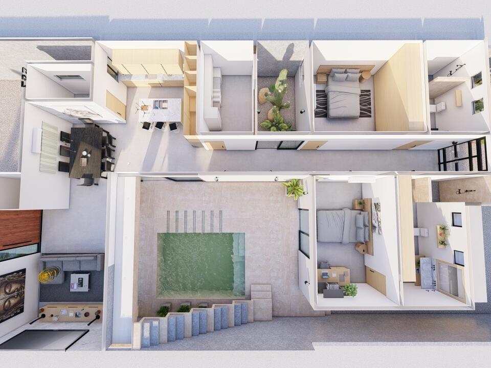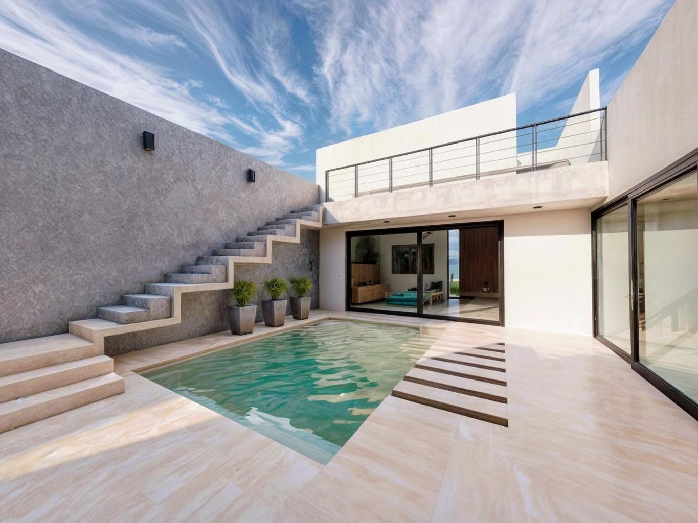 Progress is moving along smoothly, and the home is scheduled for completion by this coming August. Featuring a beautiful modern beach design with high ceilings, this property offers 2 spacious bedrooms and 2.5 bathrooms.