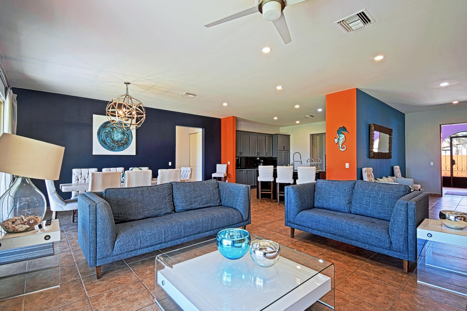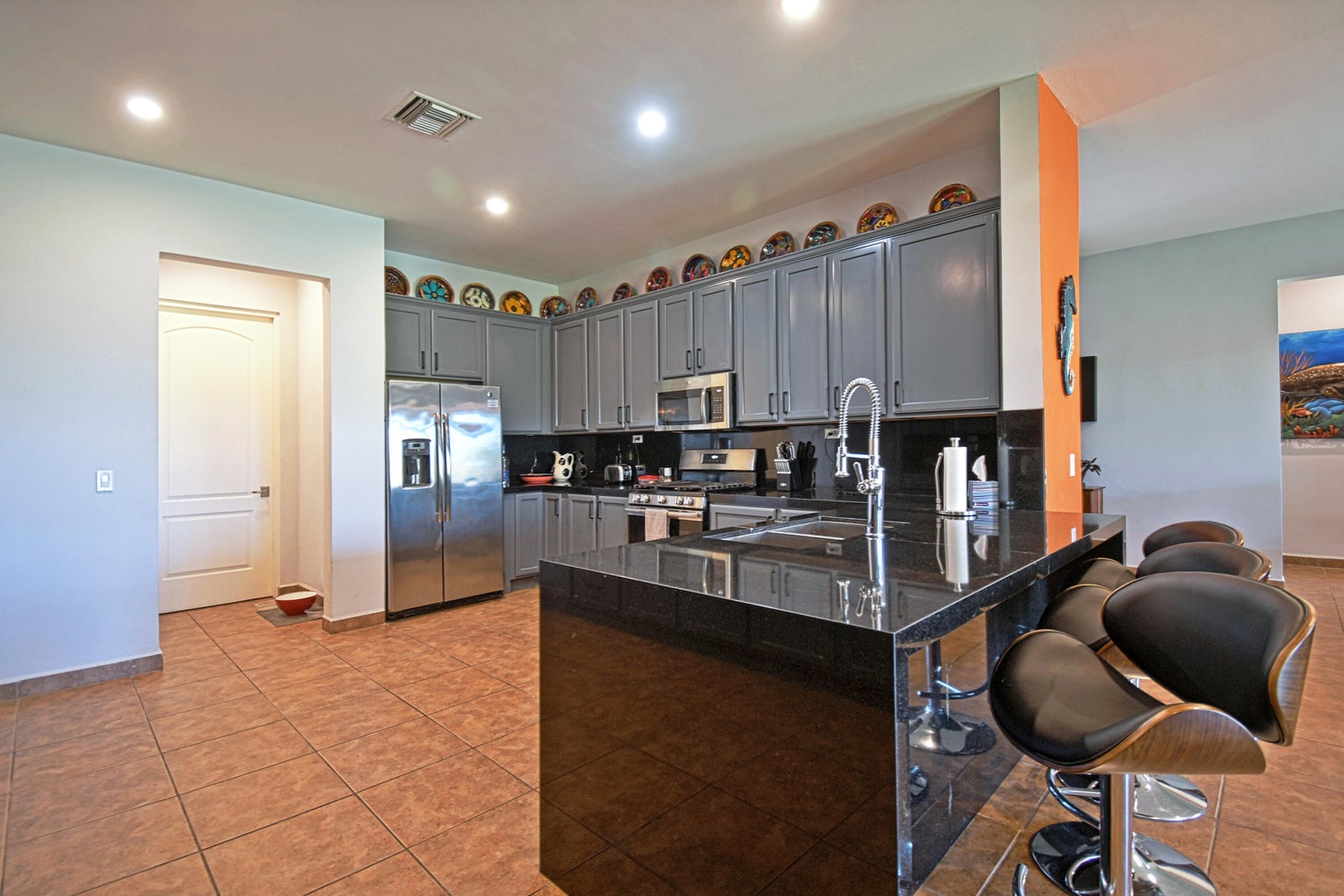 This gorgeous home offers a great one story floor plan with central A/C, 4bed/4bath including a guest casita and 2 master bedrooms with a complete bathroom, bathtub and walk-in closet each. Ideal for family sharing investment. Watch the best views and sunsets in La Paz from your private exclusive spot in Paraiso del Mar. An amazing development located at El Mogote, just across the Malecon. Amenities include 2 community swimming pools, jacuzzis, 2 restaurants, golf course, tennis courts, pickleball, volleyball, and a dog park. There are also 3 different bike stations for the use of owners. You will find endless family activities like kayak, paddle board, playing on the beach, swimming in the Sea of Cortez, home of the whale shark just a few steps from your home.
