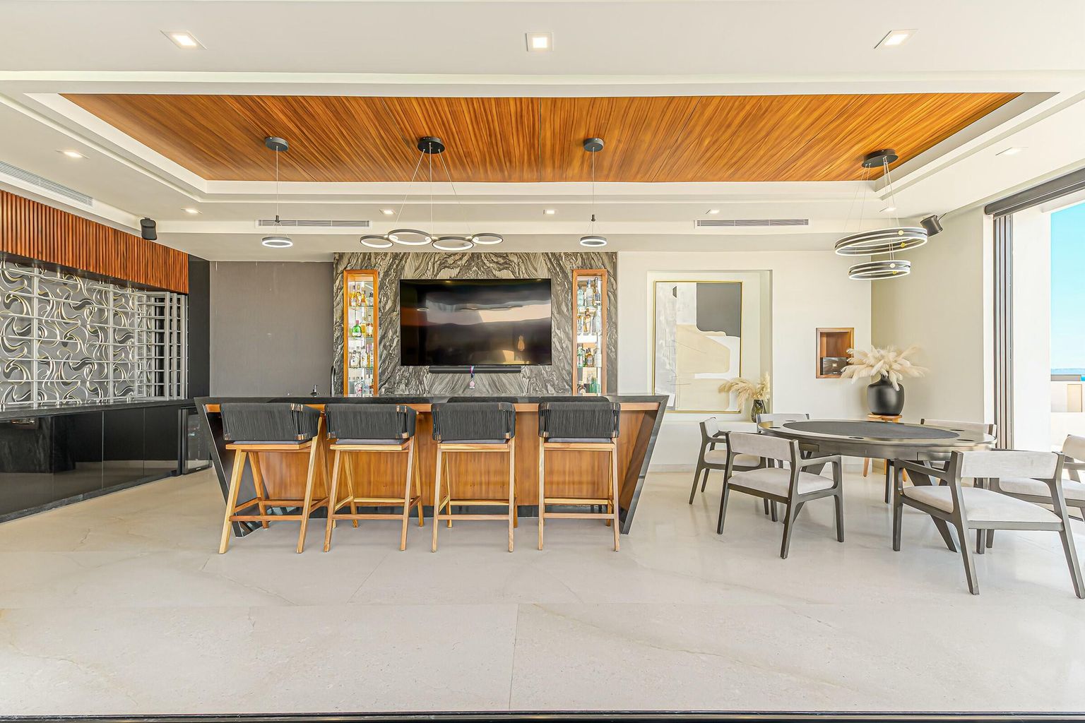 This 13,000 square feet home offers high end materials and finishes as well as panoramic views and the feeling of safety and luxury living. This spacious home with five bedrooms, 9 bathrooms, fitness room, movie theater, elevator, two storage rooms, six car garage, amazing wine cellar, beautiful exhibit like dressing room, full bar and meeting room, and more..... has everything needed to spend your days at full comfort. Added to that you will enjoy it's beautiful terraces and the amazing pool accompanied by beautiful sunsets This home was designed to make your life easier and practical with high end appliances, laundry chute system and a smart home system that controls home access.