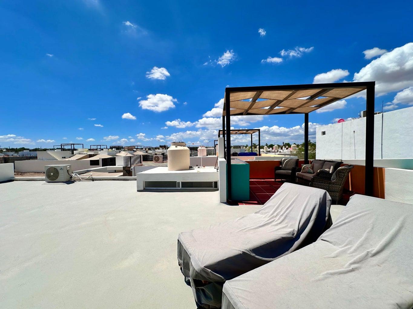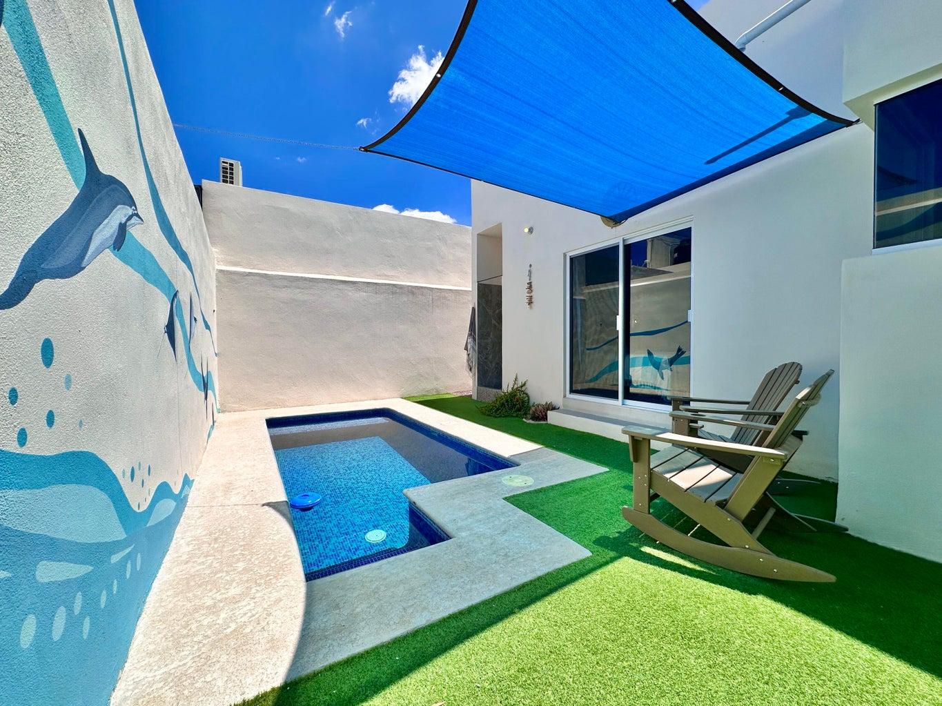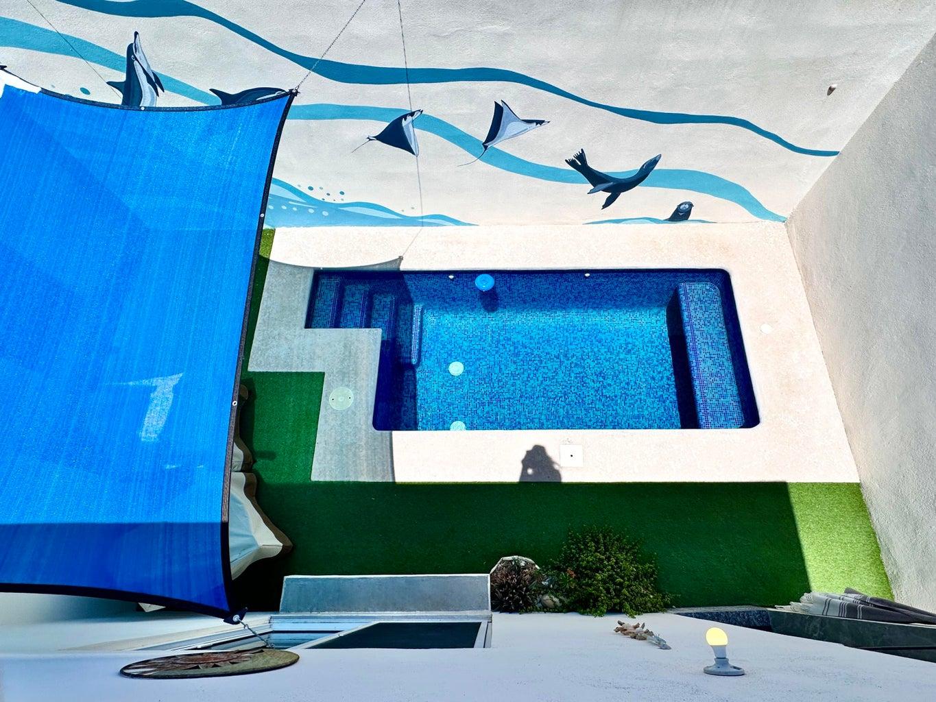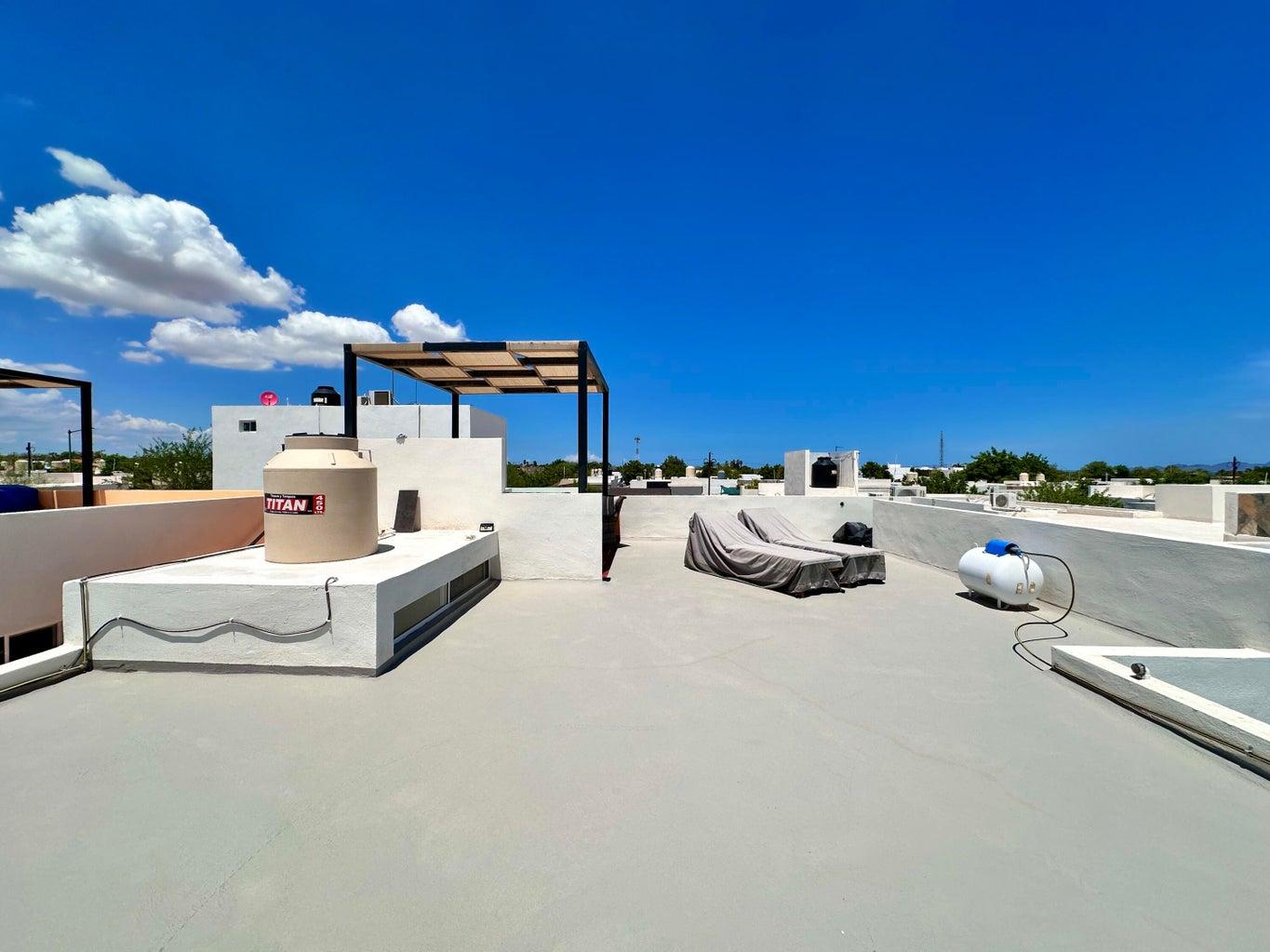 Welcome to Roxy's Retreat, a bright and turnkey 2BR/2BA home in Phase 1 of Villas del Oasis. Designed with clean finishes, laundry, and abundant storage, this property is move-in ready and full of thoughtful touches. The rooftop terrace offers sunrise views over the bay and sparkling city lights at night, while the backyard plunge pool is perfect for cooling off on warm days. Unique custom walling creates exceptional privacy, turning the outdoor space into a serene retreat. With no HOA fees—yet paved streets and solar streetlights provided by the developer—this home blends comfort, convenience, and value. An affordable, competitive price makes Roxy's Retreat ideal for full-time living or a vacation getaway. Don't wait—book your viewing today!