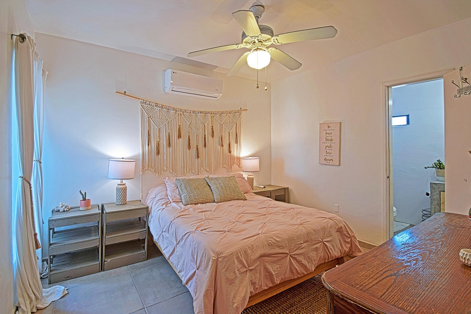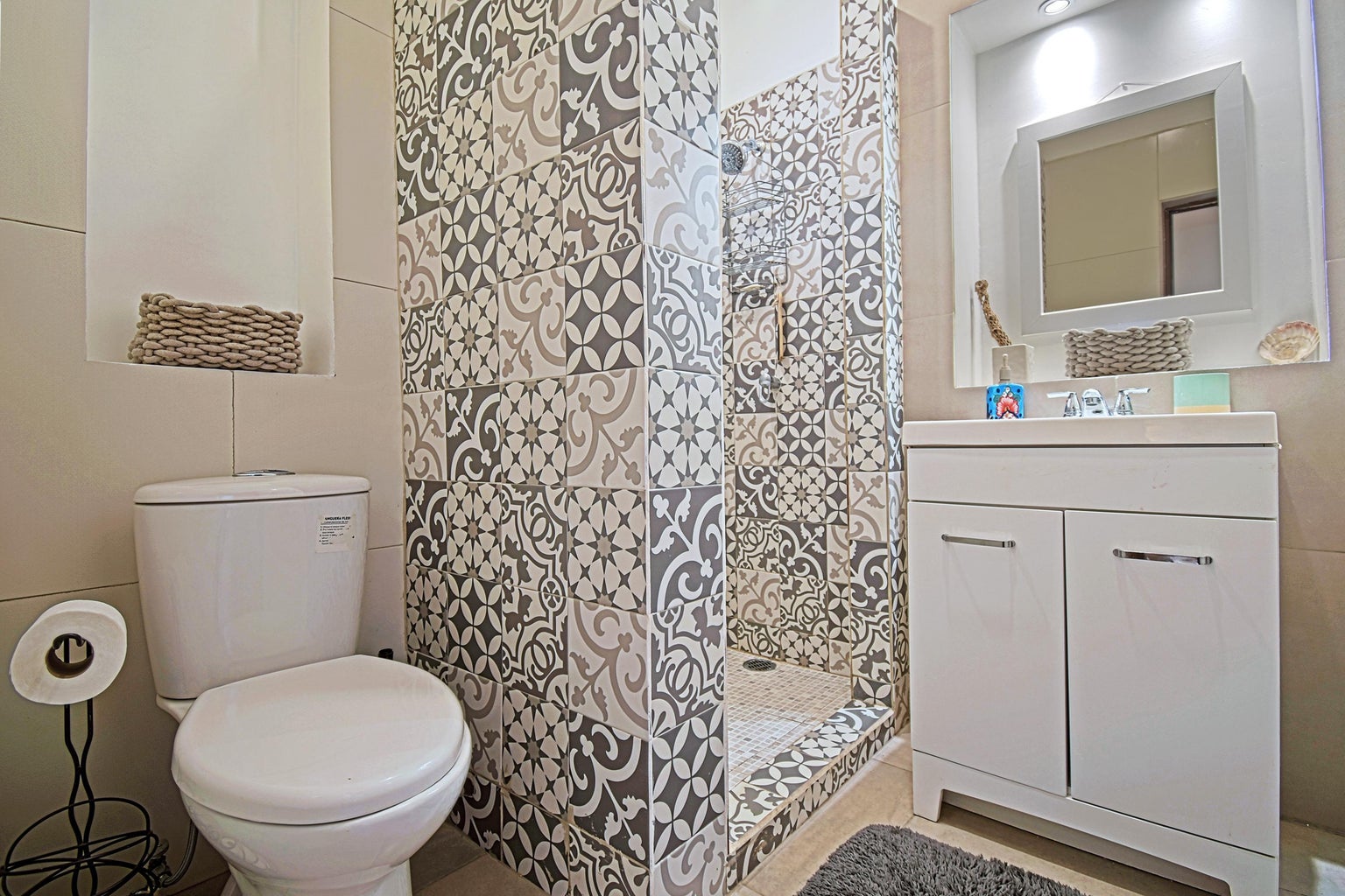 Upstairs, you'll find a double bedroom and an additional full bathrom. Brand-new boho-chic kitchen, perfect for entertaining. on the backyard you can enjoy an inviting private pool with a relaxation/ sitting area.