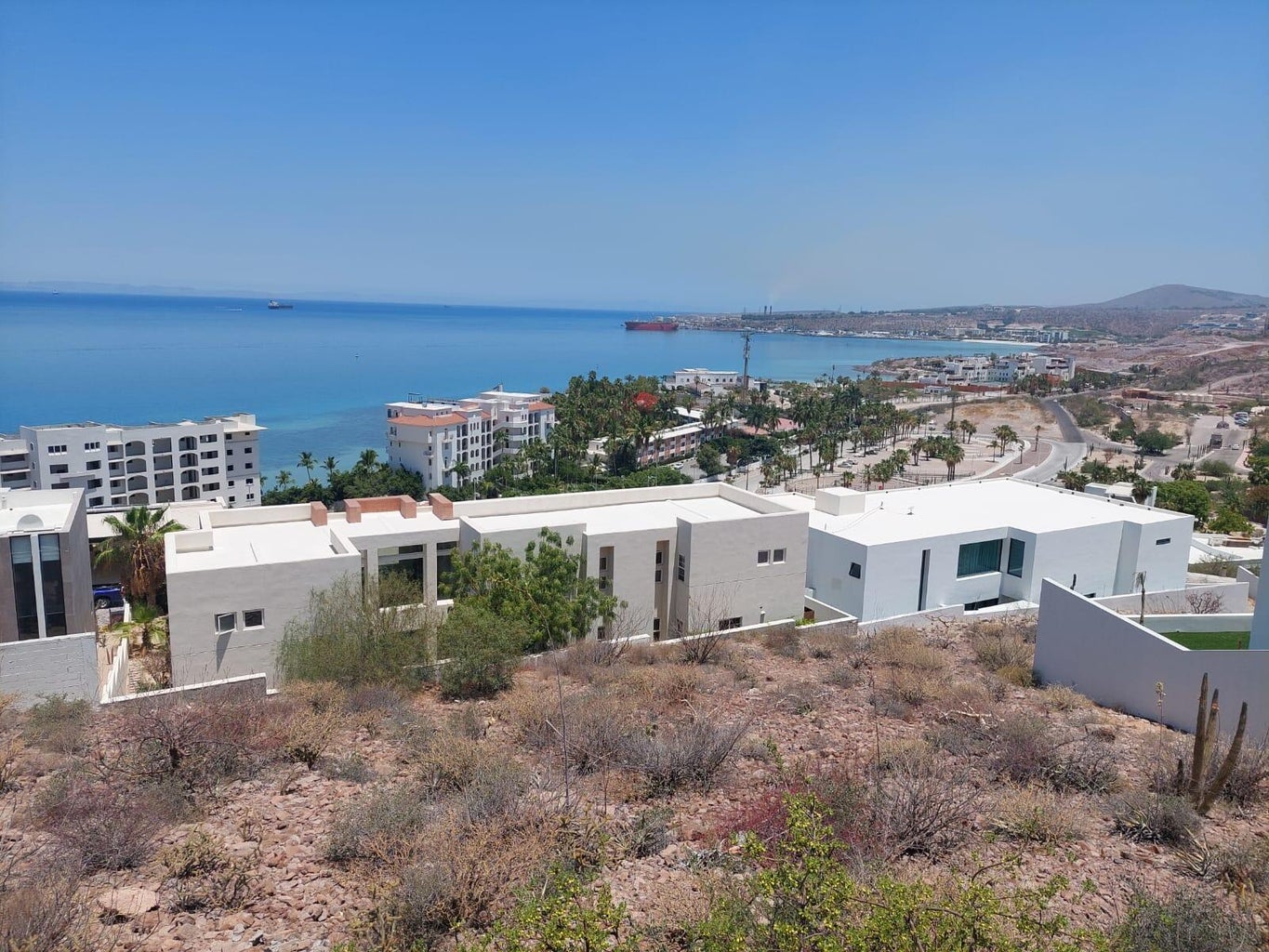 Hermoso terreno de 1,084 m2 con 39 metros de frente al océano con una excelente ubicación en el Pedregal de la Paz a mediana altura te permite tener una vista espectacular alcanzando a ver las luces del Chámetla, Centenario y el Mogote de la Paz, su forma cuadrada te permite hacer la casa de tus sueños e incluirle las amenidades que te puedas imaginar como cine, terrazas, alberca infinita, pitfire, zona de BBQ y bar exterior, además de hermosos jardines, la altura y ubicación permite disfrutar hermosas vistas al océano y por las tardes de puestas del sol desde cualquier punto de la casa, llámese cocina, sala, recamaras o desde cualquier baño, cuenta con amenidades premium: 6 Canchas de tenis , 4 de Pickle-ball , 1 Cancha de futbol, Parque infantil.