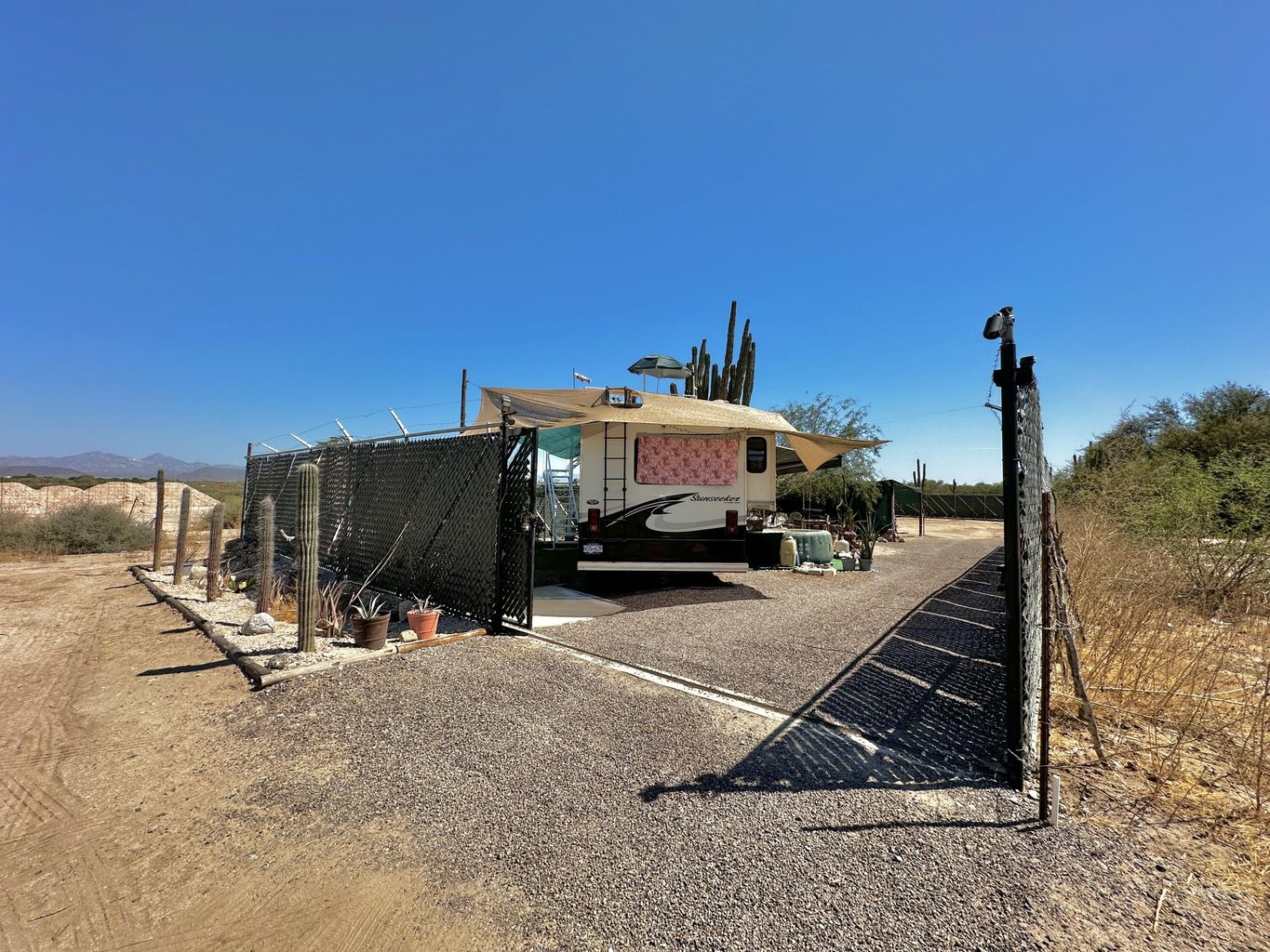 Fantastic FENCED & GATED 600m2+ piece of land, flat & perfectly ready to build on. Negotiable additions include a storage shed, steel sky box, parking structure, water cistern, solar panels, generator... and a mint condition RV! Located wonderfully close to shopping & town, but just out far enough that it's peaceful country with gorgeous night skies! Arrange a viewing today!