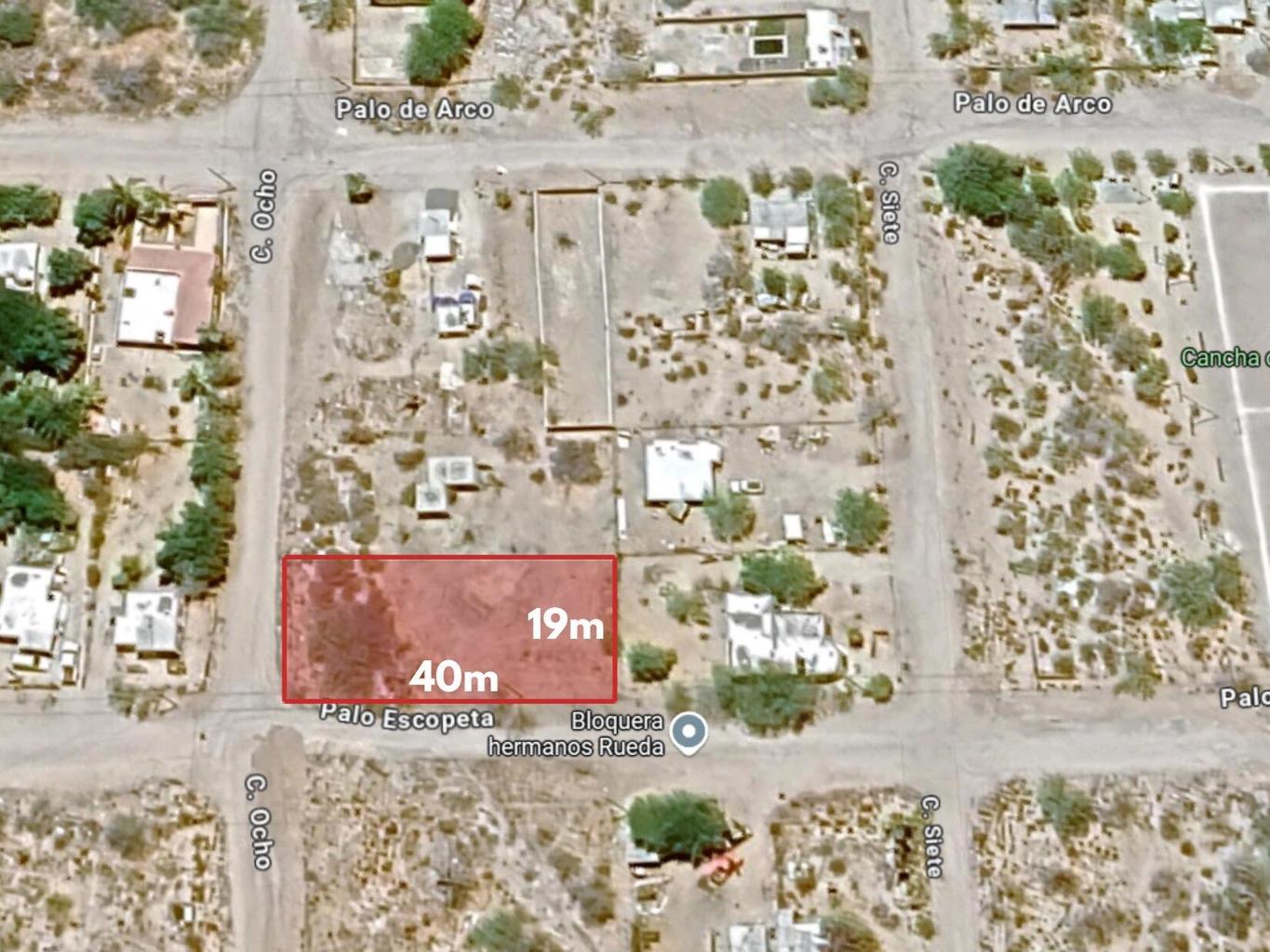 With an area of 768.36 m², this lot is located in El Centenario on the corner of Calle Octava and Palo Escopeta. It has an almost rectangular shape, with approximately 40 meters in front by 19 meters deep. It currently has no services, there is feasibility of connection to electricity and possibly water and sanitation.