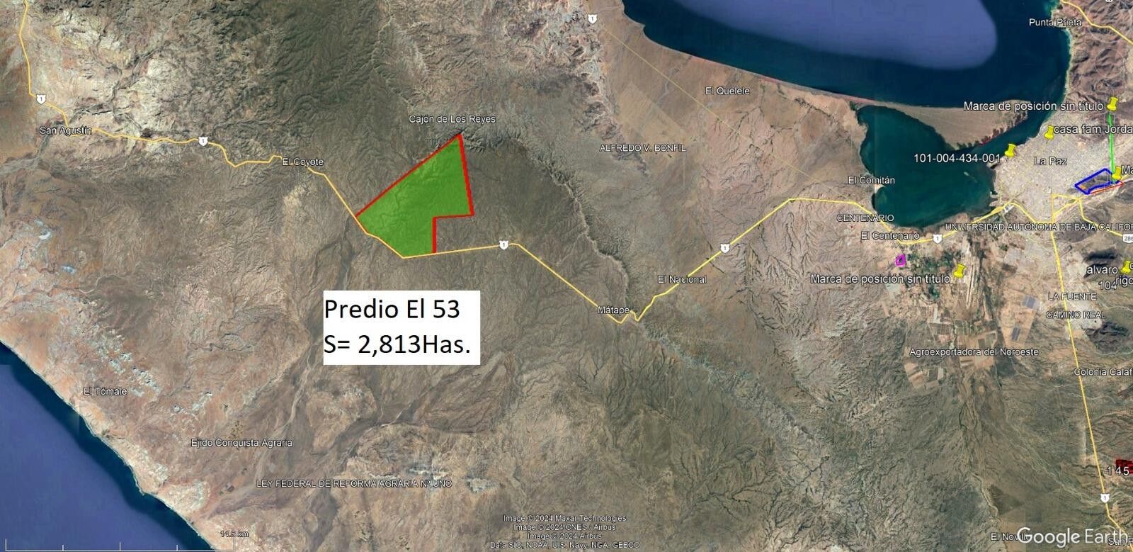 40 minutes from the city of La Paz, 30 minutes from La Paz International Airport and only 25 km away from the spectacular beaches of the Pacific and the proximity to emerging tourist developments in the region and the growth of the area make this land an investment with great potential for revaluation.