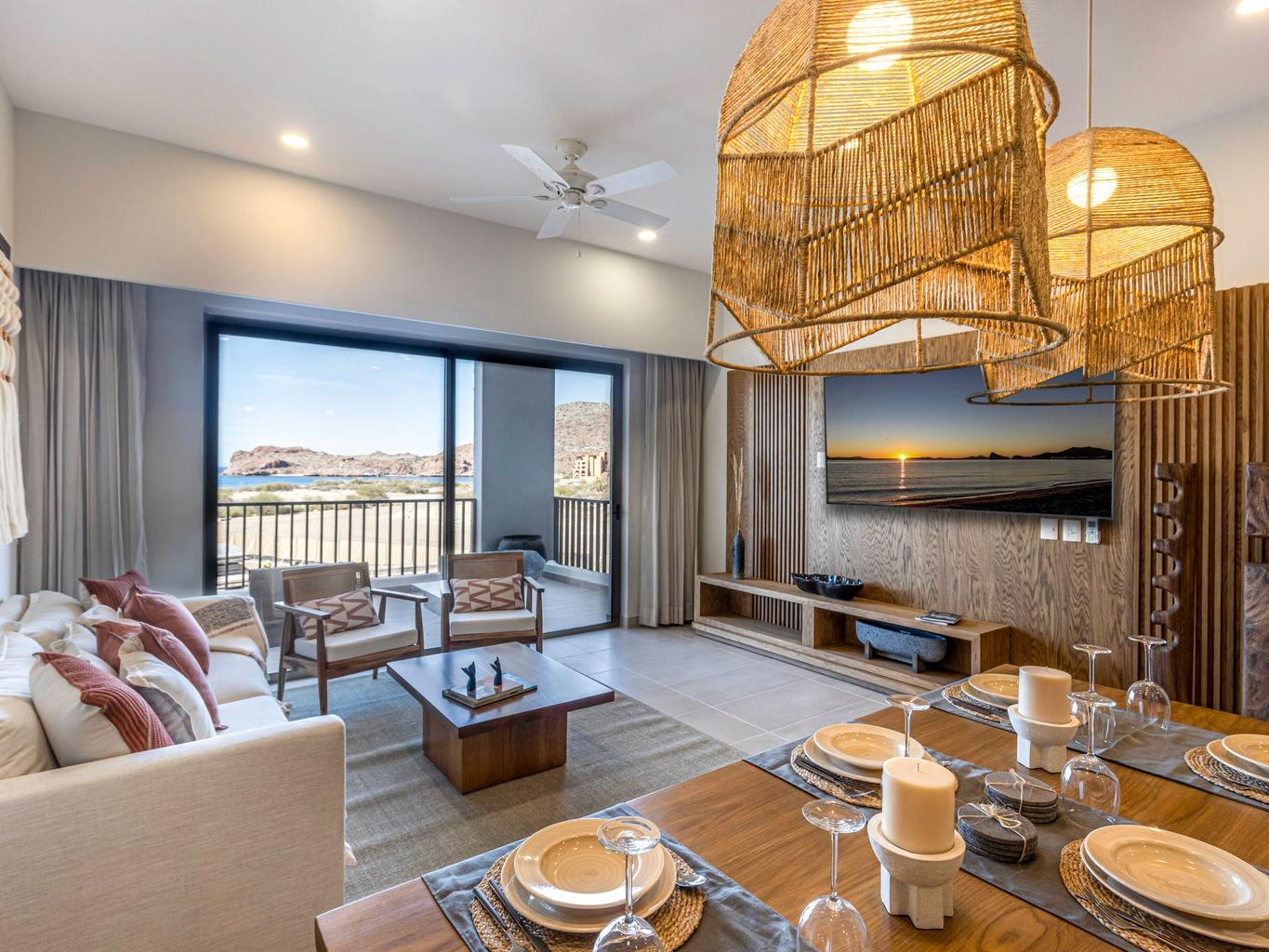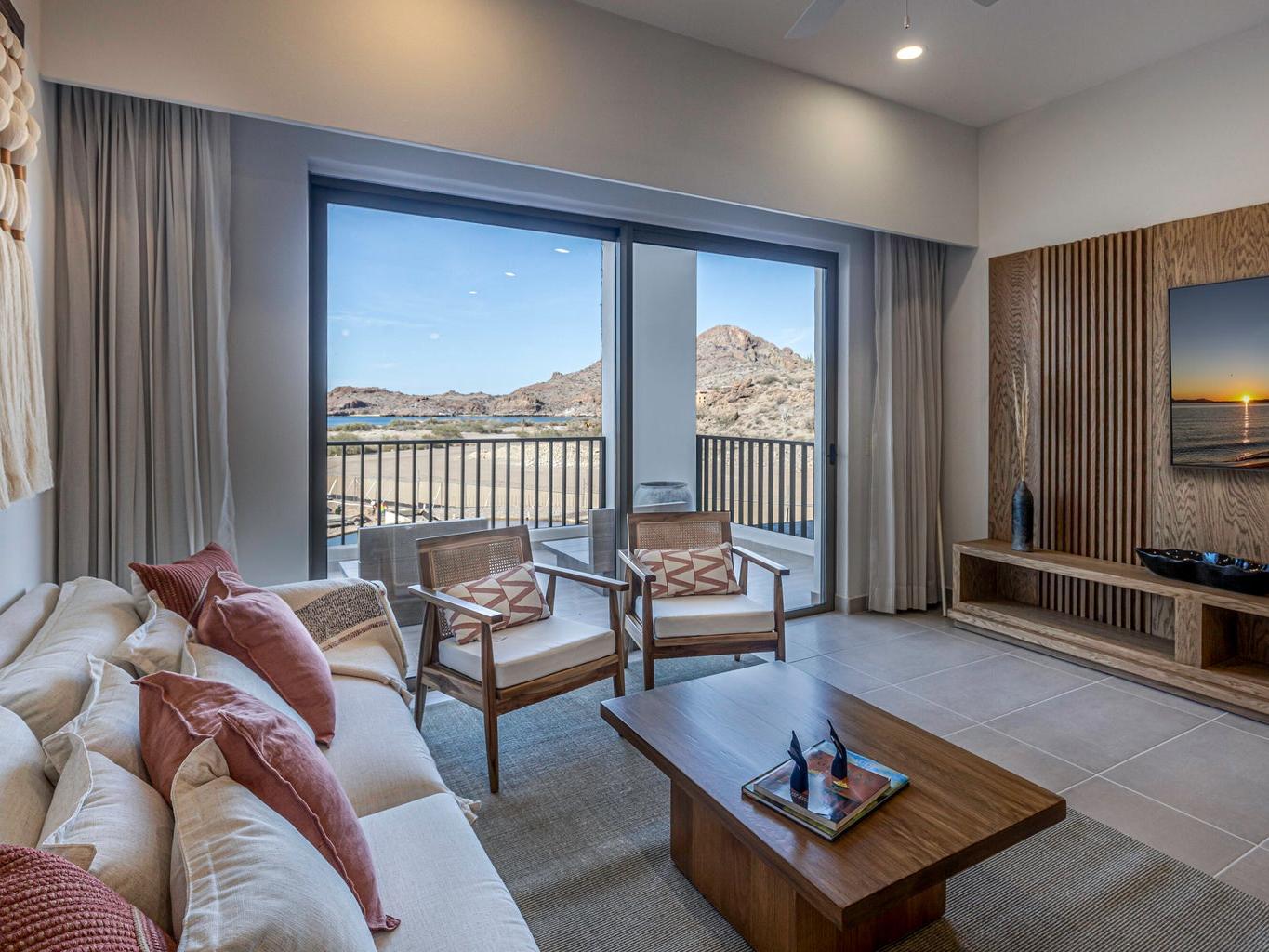 Upon entering your 1916 sq. ft two bedroom Mantarraya condominium directly from the elevator you are immediately struck by the incredible vistas of Danzante Bay and the Islands of Loreto. The large granite island and fully equipped kitchen leads you to the spacious living and dining area. Relax after a morning of golf or snorkeling on the covered patio and experience year-round enjoyment of this magnificent property. The master bedroom boasts an expansive picture window, beautifully designed bathroom with tub, large marble shower and counters with double sinks. The guest bedroom has built-in closets, full bathroom with marble shower and a sliding glass door opening onto a balcony with magnificent Sierra la Giganta Mountain Views.