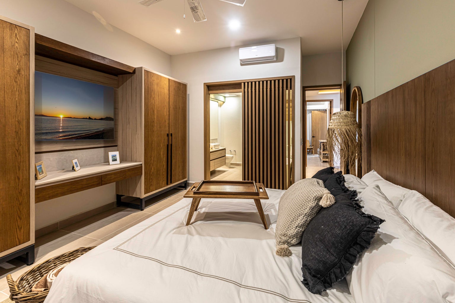 As you step into this beautiful 2,502 sq. ft. 3 bedroom condo, accessed by elevator, with incredible sweeping views of Danzante Bay and the surrounding islands. Its spacious floor plan offers an ideal concept for those seeking a balance between design and functionality. It boasts a master bedroom with large picture window, elegant bathroom with marble shower and tub. The 2 guest bedrooms have magnificent Sierra La Giganta views. One has a full bathroom and marble showers. The second full bathroom and shower are shared with living area making it perfect for additional family and guests. The fully equipped kitchen and granite island are designed to entertain a large family.