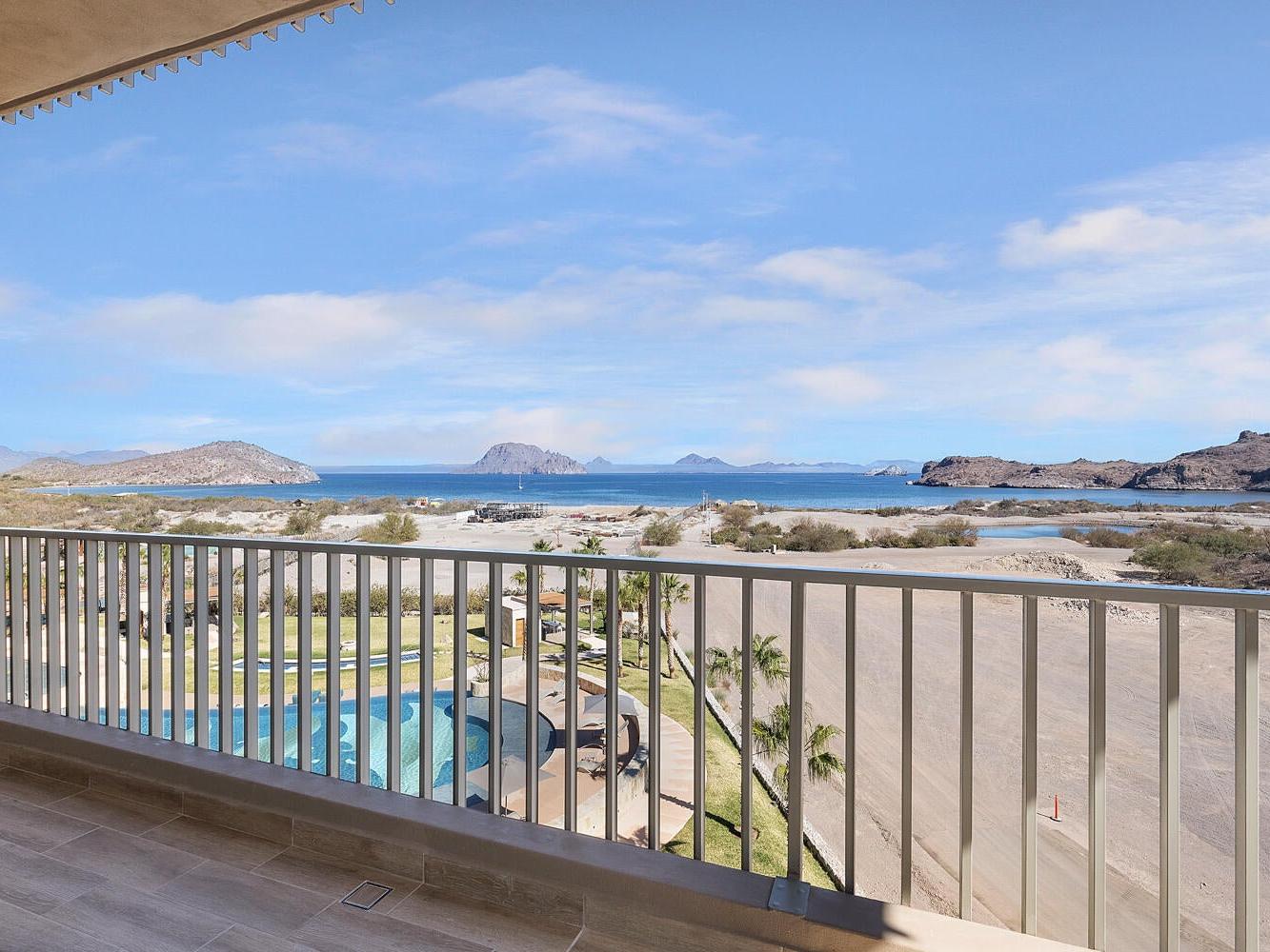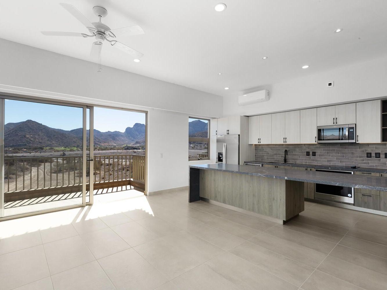 This stunning corner 3-bedroom condo on the 4th floor of Mantarraya Residences is a true gem. Accessible directly from the elevator, it features three spacious en-suite bedrooms, each offering comfort and privacy. The open-plan living area creates a seamless flow, perfect for entertaining or simply relaxing. The kitchen boasts elegant granite countertops, ideal for cooking and gatherings. Large windows throughout provide abundant natural light and showcase breathtaking views of the Sea of Cortez, majestic mountains, and the lush golf course, making this condo the perfect blend of luxury, comfort, and stunning scenery.