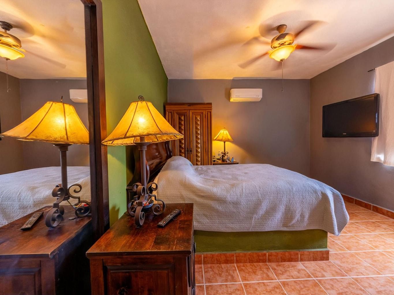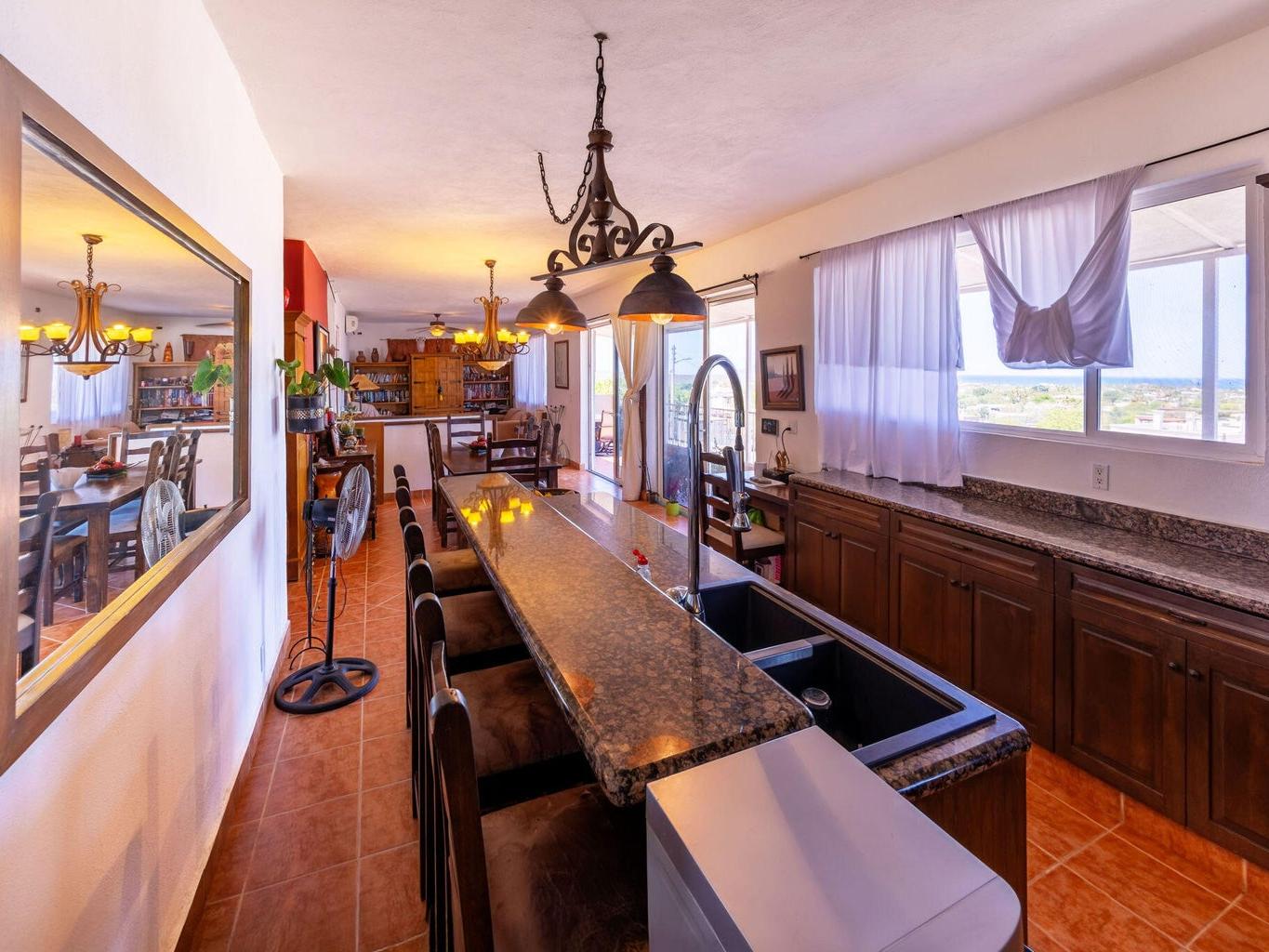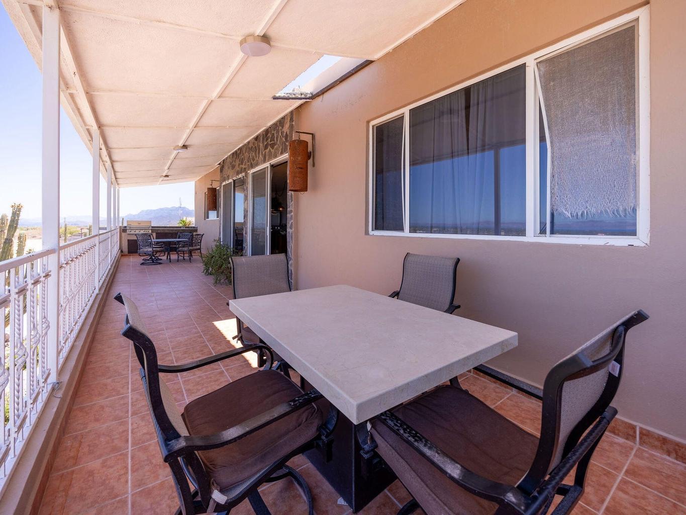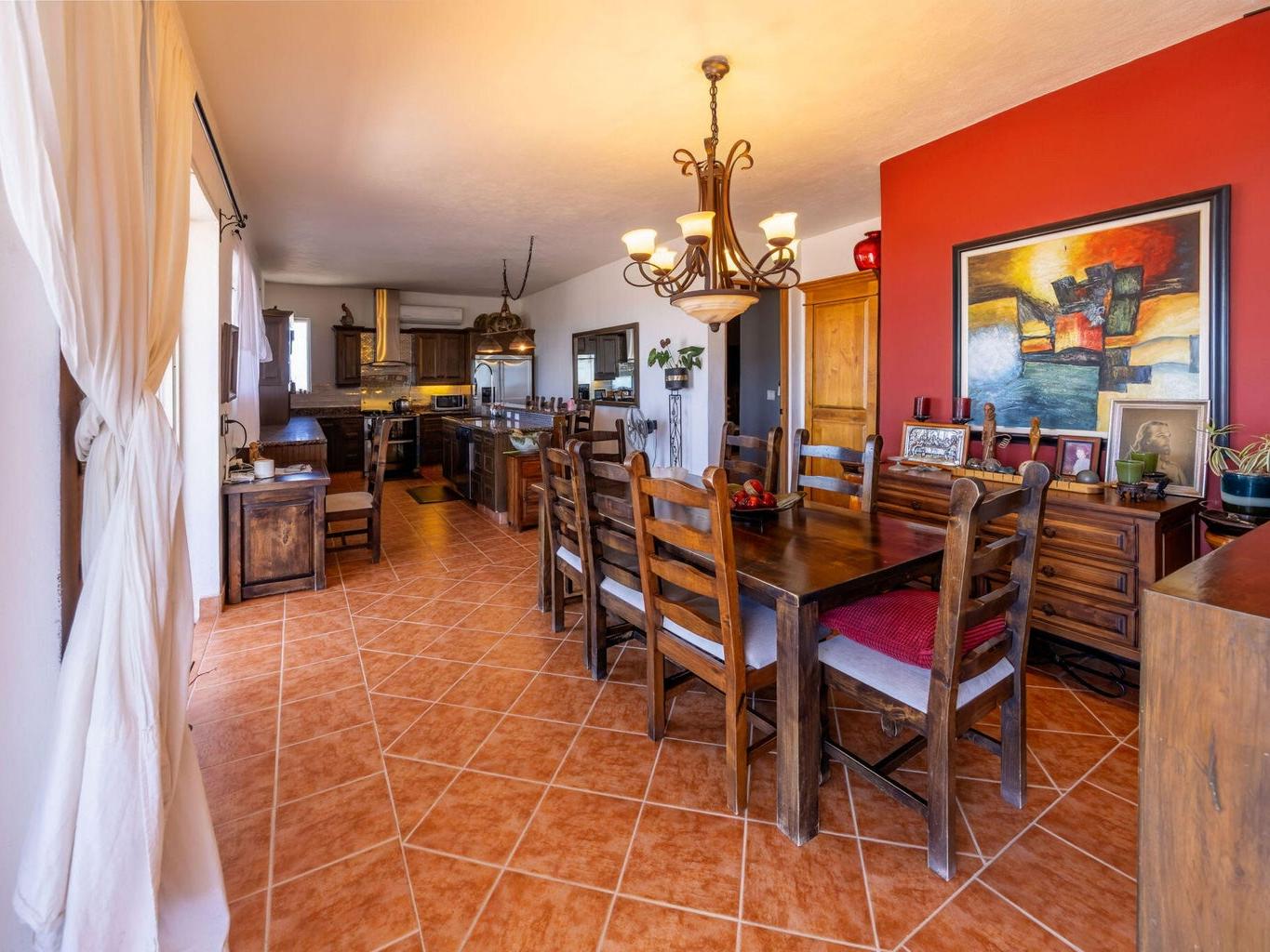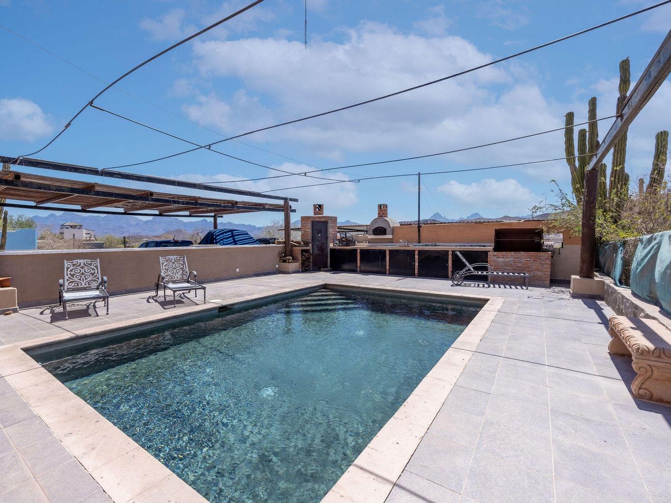 The house is 4 bedroom . 3 bathrooms. Living room dinning and kitchen. Large covered deck on the front. Bbq center with sink. The house is 15 meters by 8 meters wide. It has a swimming pool. Large outdoor mesquite oven and a mesquite pizza oven as well as a rotisserie for pigs. There is a large fire pit . It has a concrete driveway and large covered parking spaces. It has 4 single garages and 1 large garage. We have fiber optic cable for internet . We have gas range and gas hot water tank.
