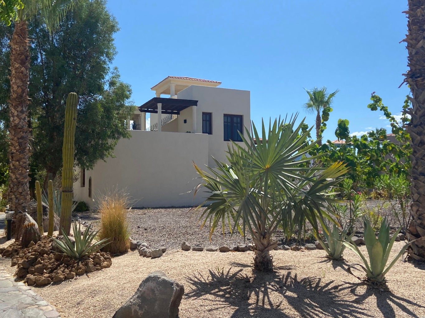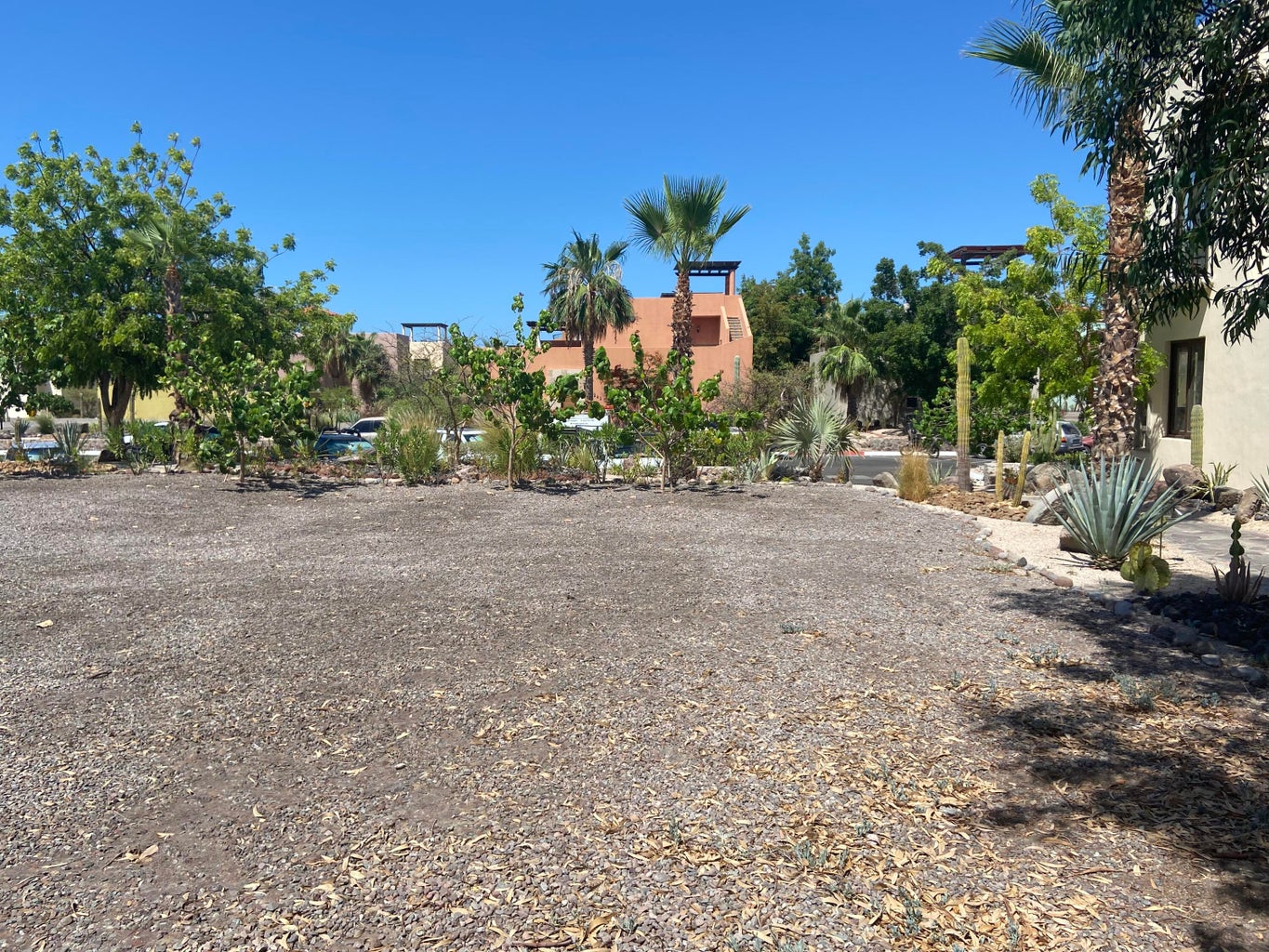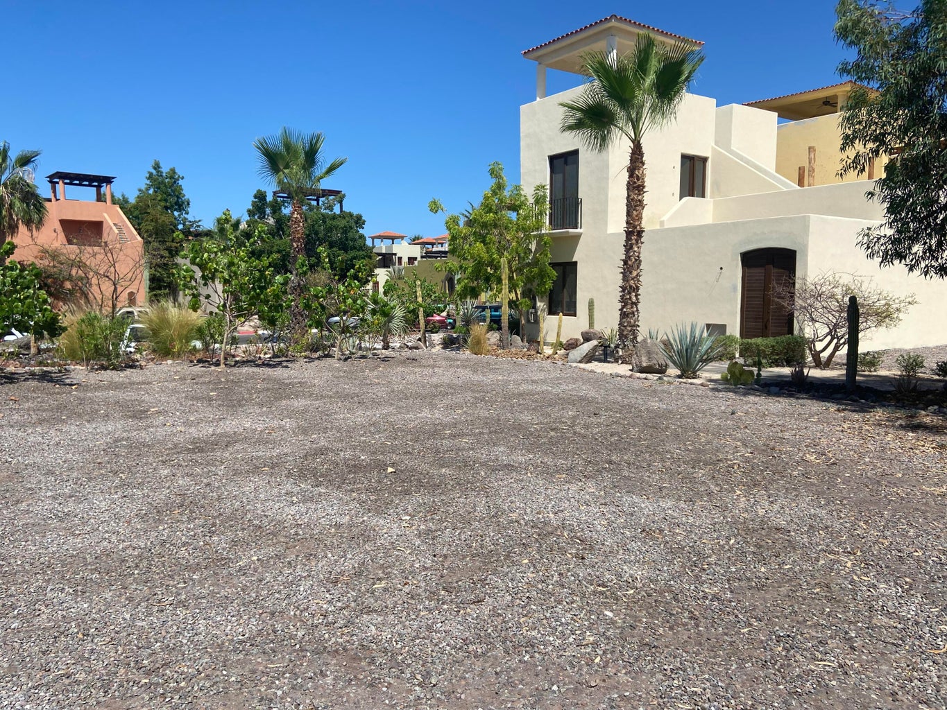 This beautiful corner lot is located on the central Paseo in the Agua Viva Neighborhood. Between the lot and the Paseo is a flower lined flagstone pathway. This lot offers a convenient location as it is close to parking, community restaurants, markets and the AV Pool. From a third floor viewing tower you will enjoy Sea of Cortez Views and ocean breezes. The photos of the sea views are from a neighboring property.