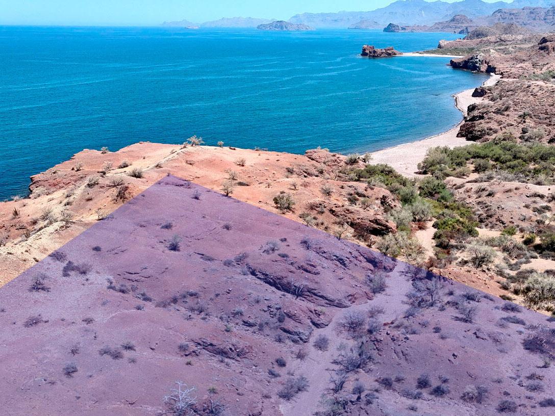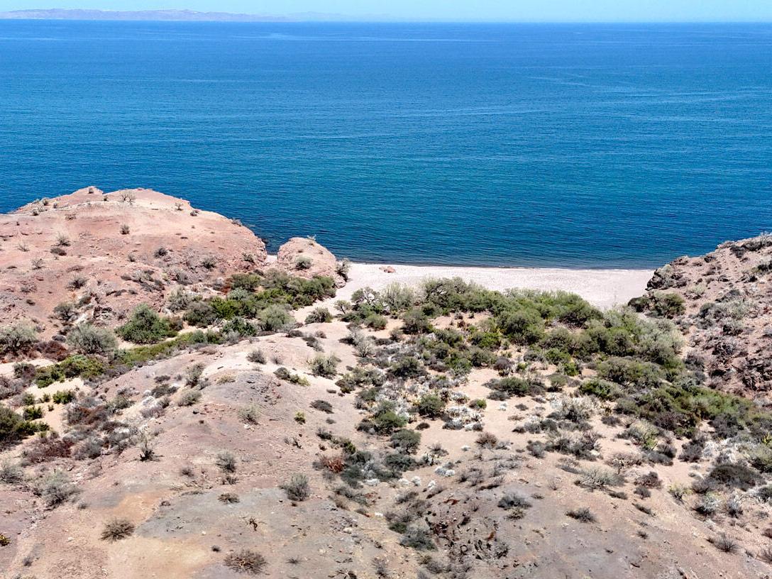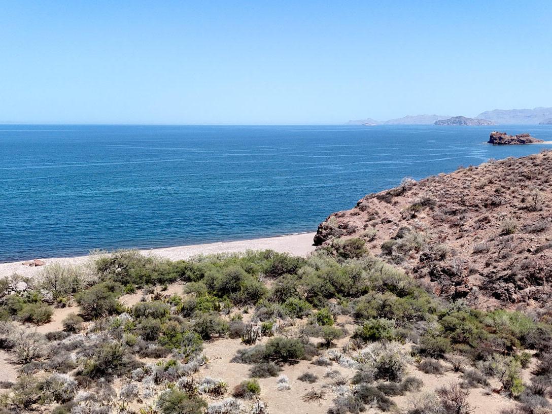 Enjoy 105 meters of prime beachfront frontage with unobstructed, spectacular views of the azure Sea of Cortez and the rugged Sierra de la Giganta. The property's elevated hills provide an impressive vantage point that enhances the sweeping ocean vistas and offers a unique perspective of the surrounding landscape.