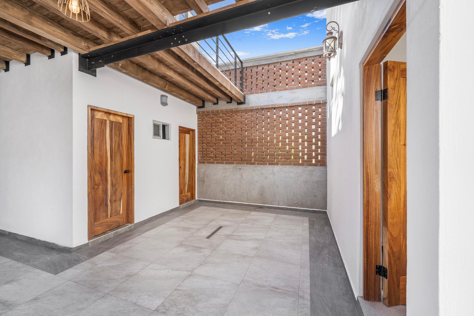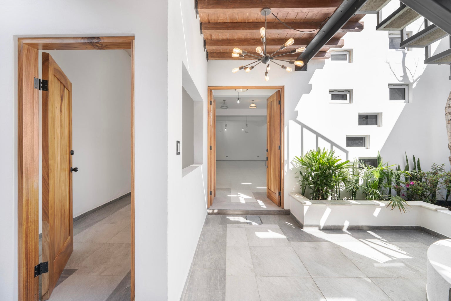 High potential commercial property, an excellent investment opportunity in a strategic location with a great flow of pedestrians in the heart of Todo Santos with the Architectural style that characterizes it with its red brick combined with excellent finishes, such as wooden floors in most of the rooms. The property has a shared common area with the smaller premises. Excellent investment for an entrepreneur where, in addition to starting his own business, he can rent other premises.