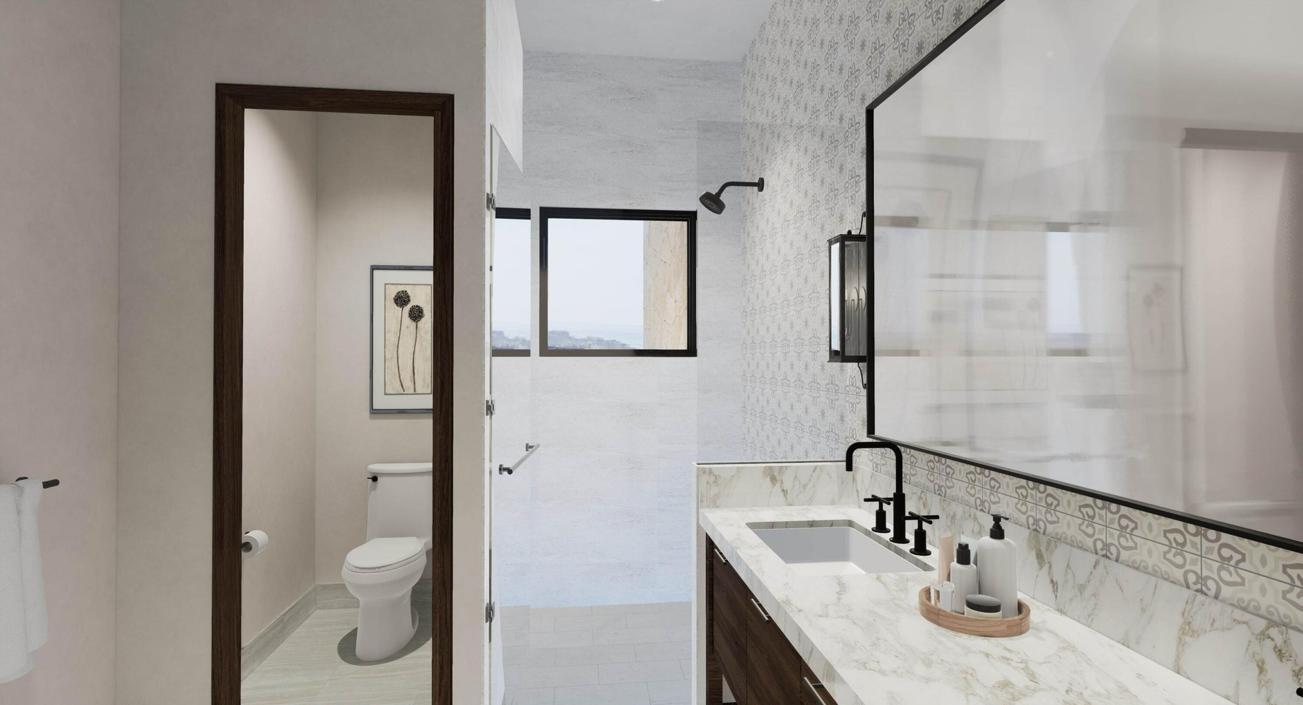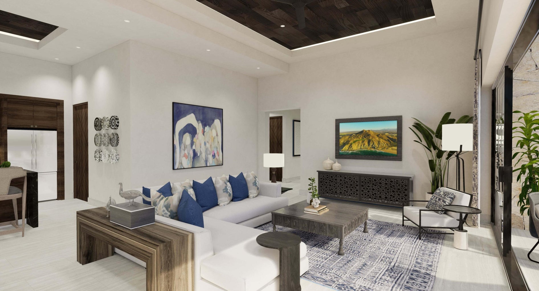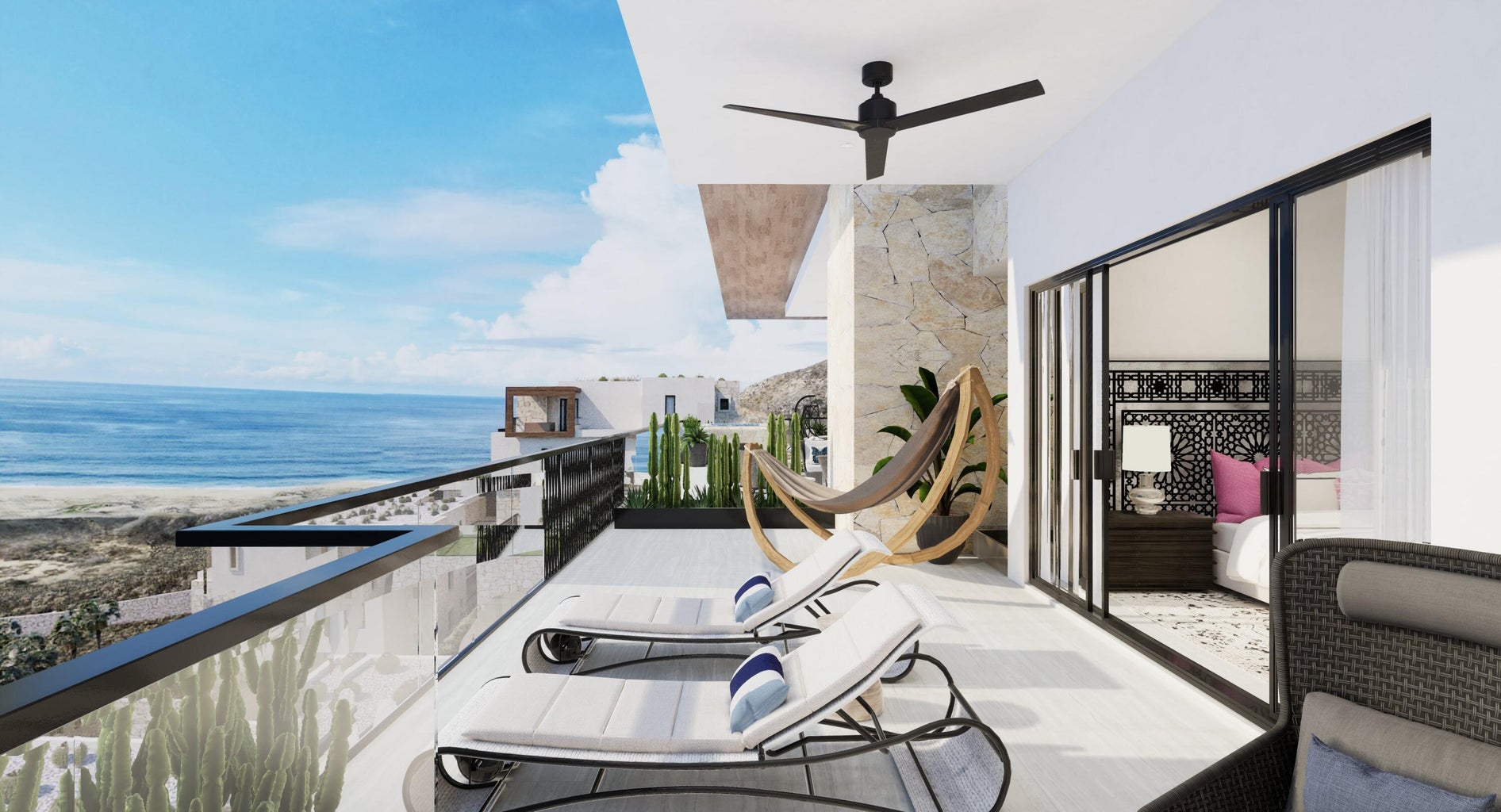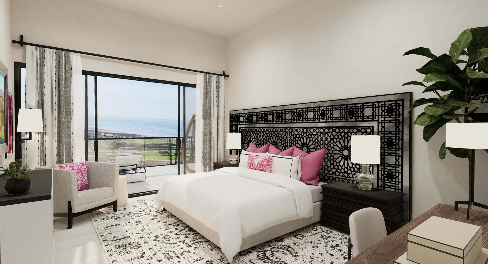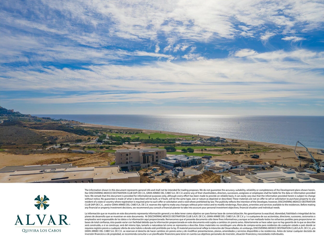 This 3 bed luxury residence condo is at the very top of Alvar looking down over the St Regis and Quivira Beach Club. It is on the 4th floor above the parking structure and has a side yard of real grass accessible from the main frontal terrace and also the patio terrace of the guest room on the end of the floor plan. The unit has many finishes to choose from via the design center and comes equipped with GE Cafe appliances which can be upgraded to Viking as well. There are several interesting upgrades possible both inside and out. The unit also has assigned its own large storage locker in the parking structure and a parking spot in front of the building under a shade structure for a personal golf cart. Alvar will have two clubhouse facilities with pools and owners can access beach clu