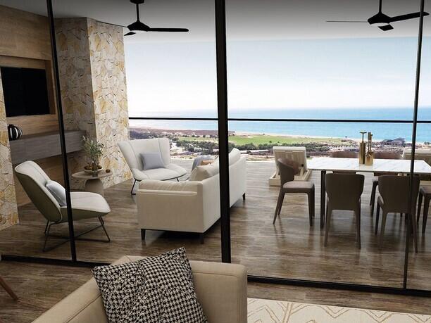Enjoy a majestic view from the 6th floor of this 4 bedroom luxury penthouse in the Alvar community in Quivira Los Cabos.